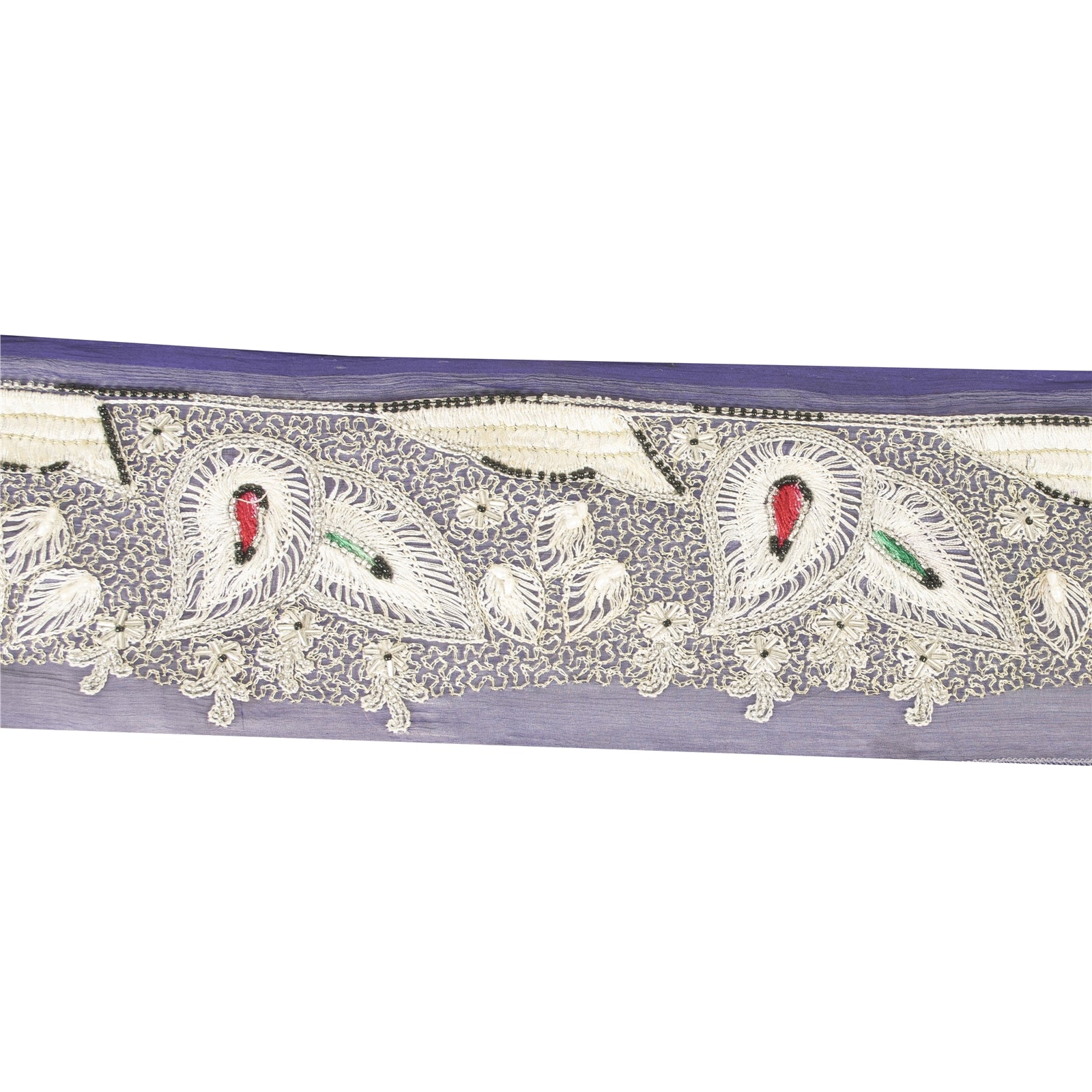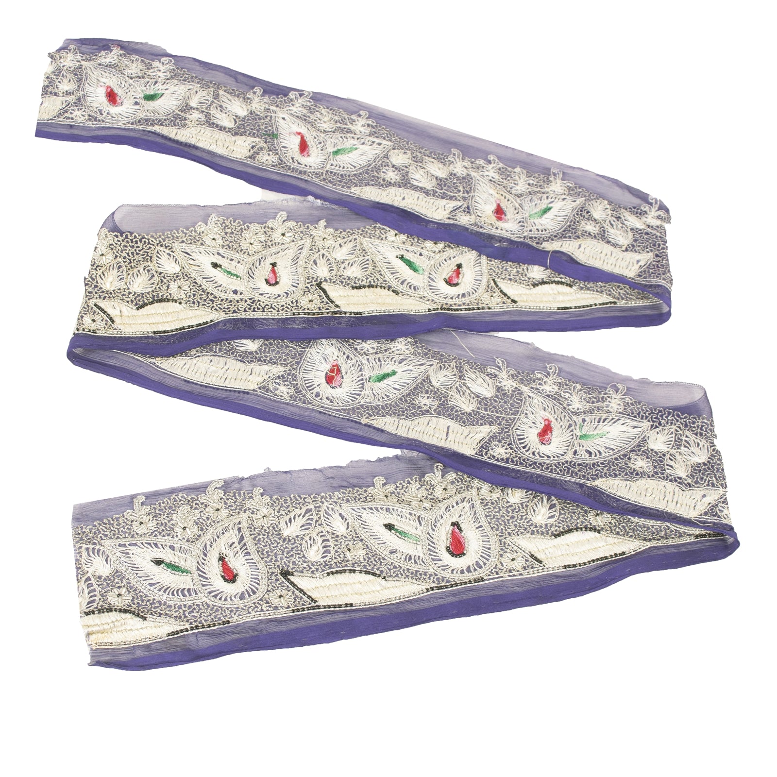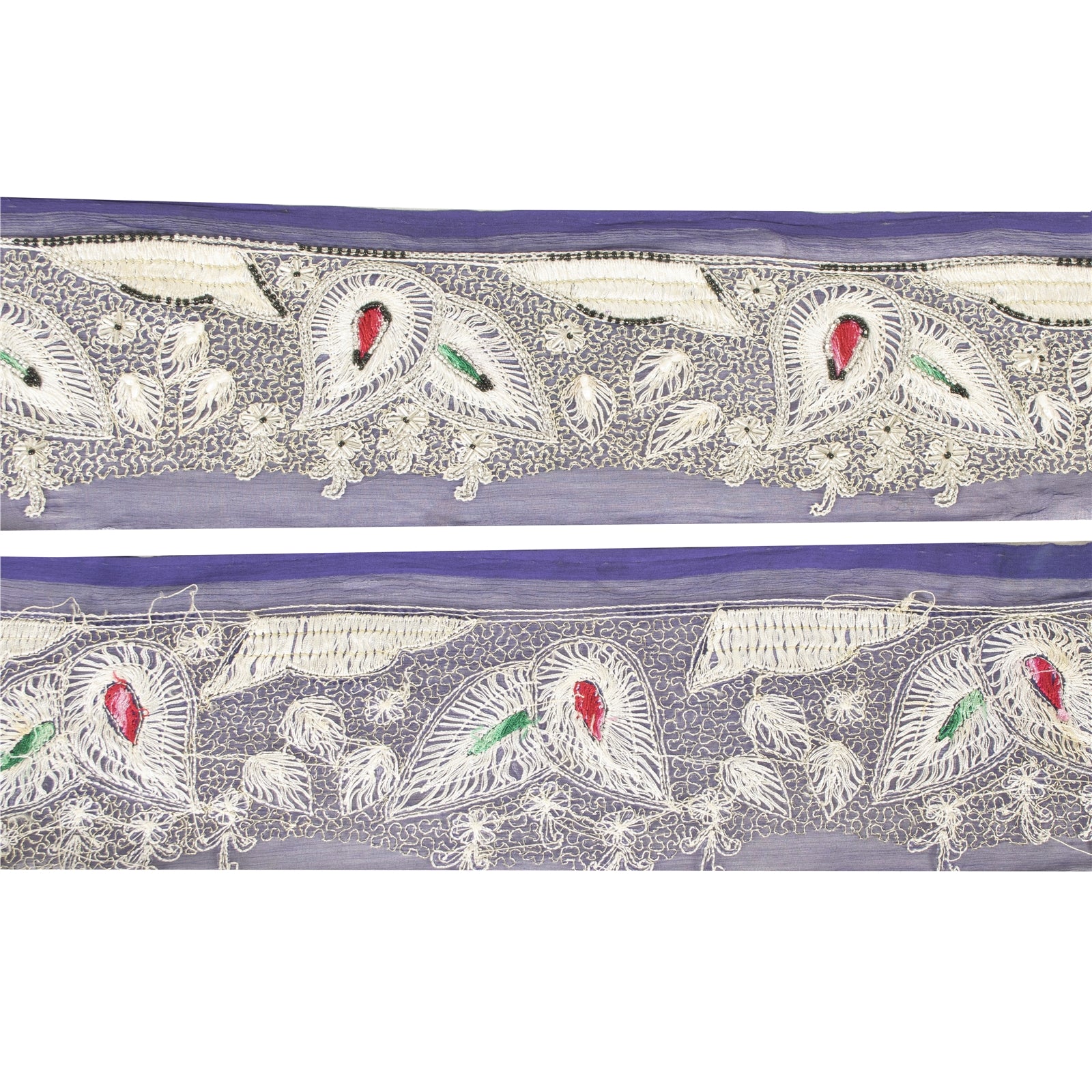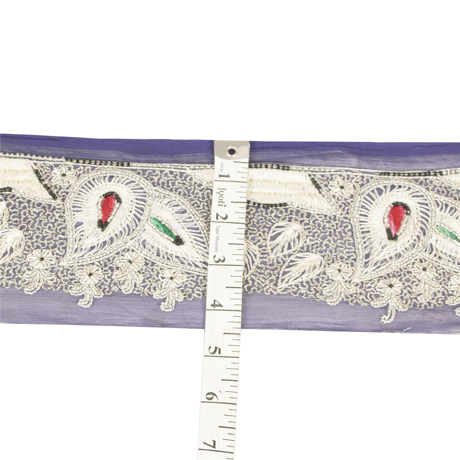 Sanskriti Vintage Sari Border Hand Beaded Zari 1 YD Trim 3 W Blue Silk Lace