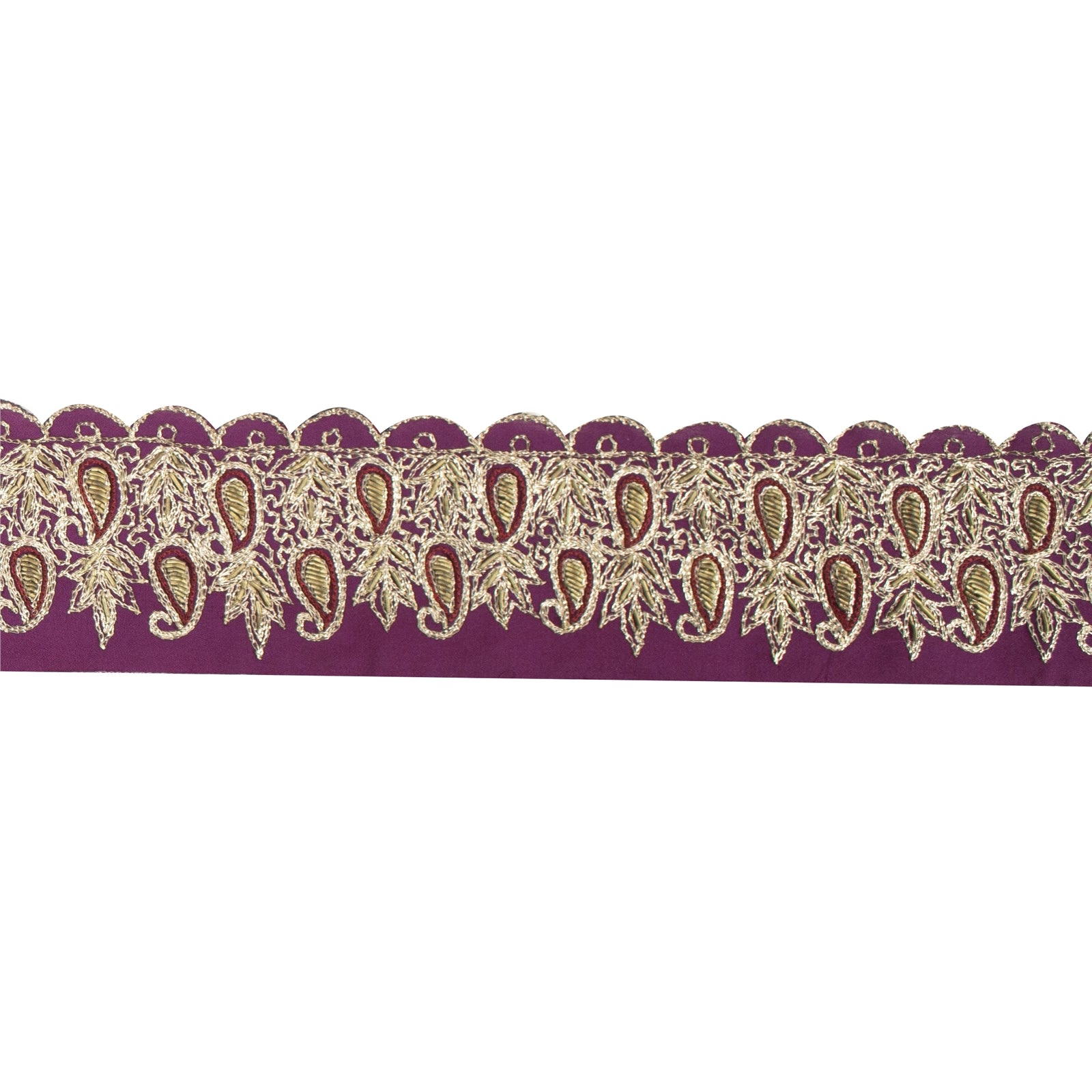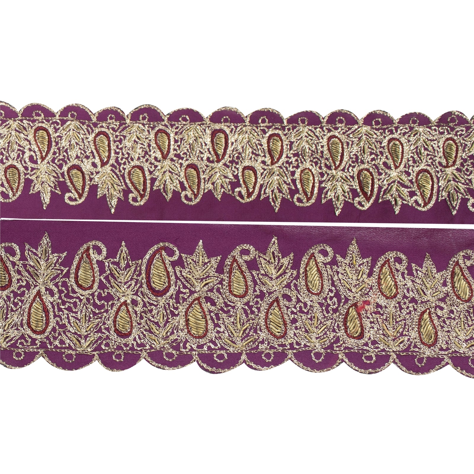 Sanskriti Vintage Sari Border Indian Hand Beaded 1YD Trims 2.6W Zari Purple Lace