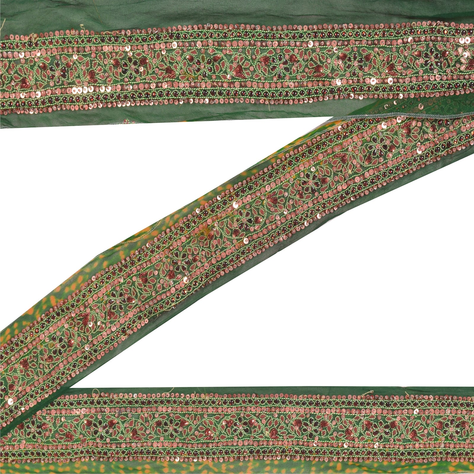 Sanskriti Vintage Sari/Saree Border Hand Beaded Gota 1 YD Trim Green & Saffron