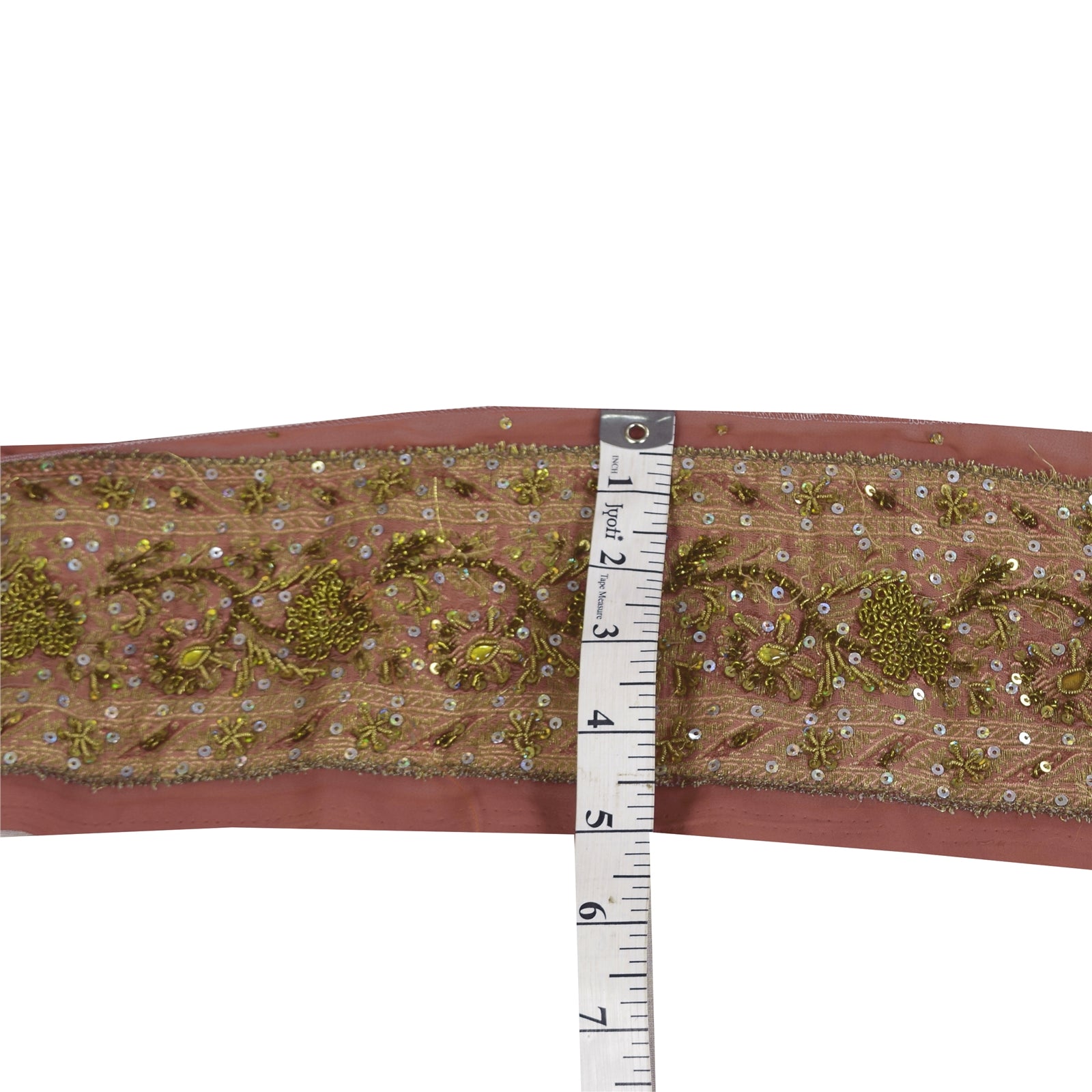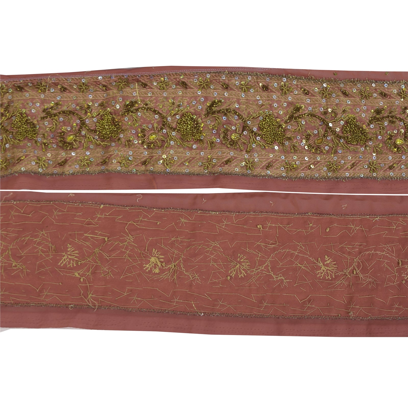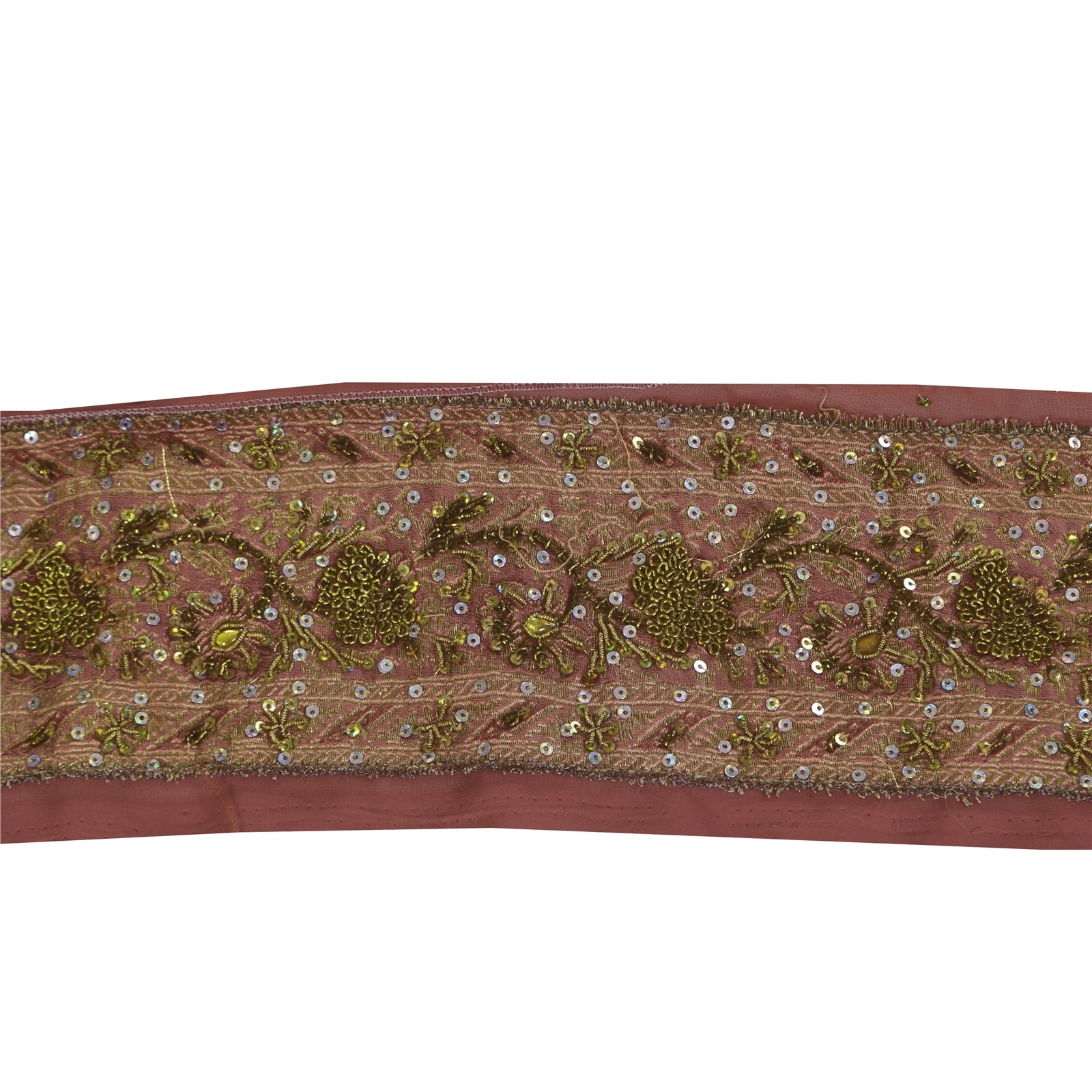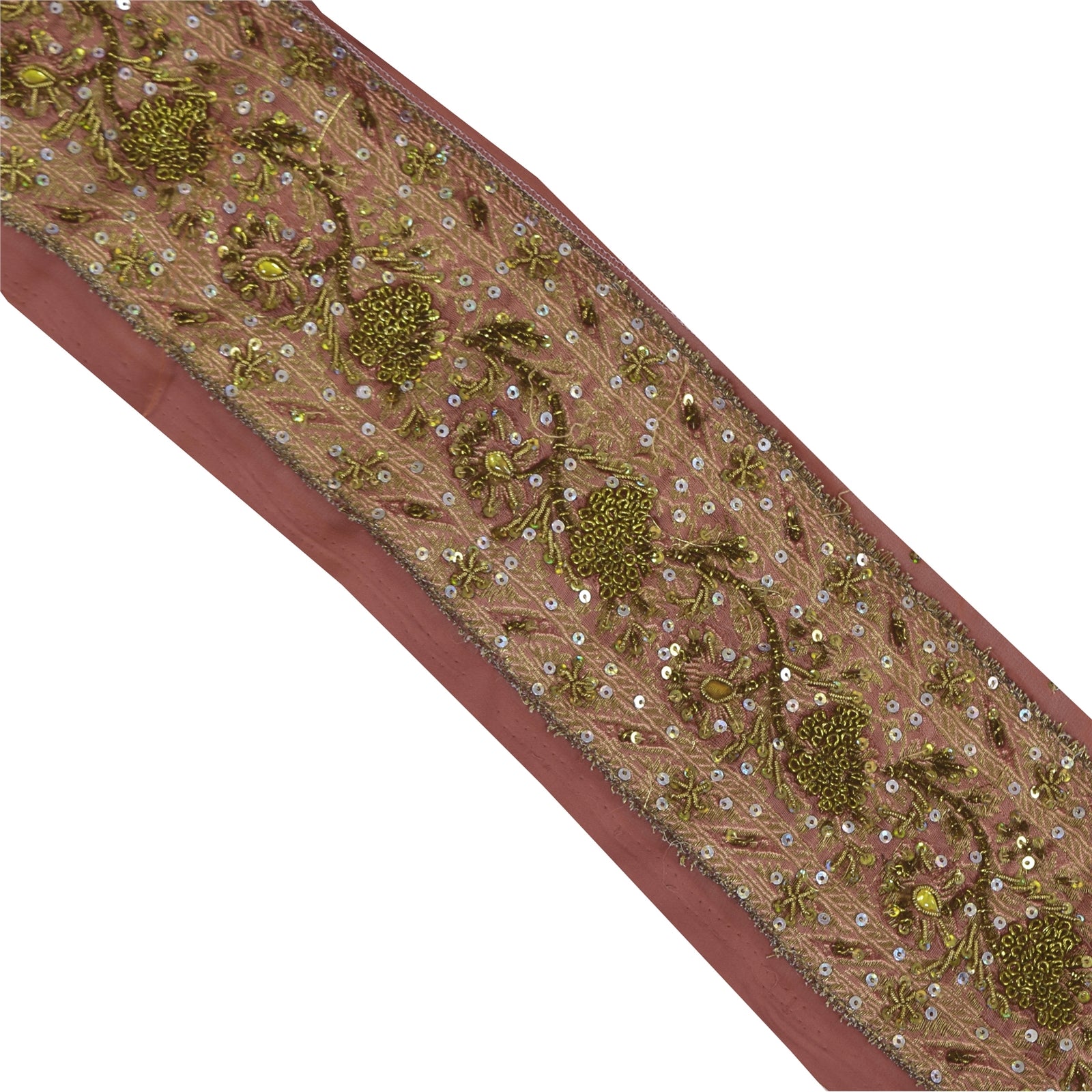 Sanskriti Vintage Sari/Saree Border Hand Beaded Zardozi 1 YD Trim Pink 3.5W