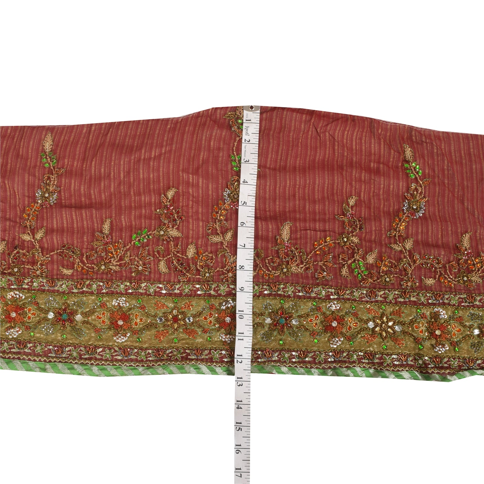 Sanskriti Vintage Sari/Saree Border Hand Beaded Zari 1 YD Trim Maroon 11.5W Lace