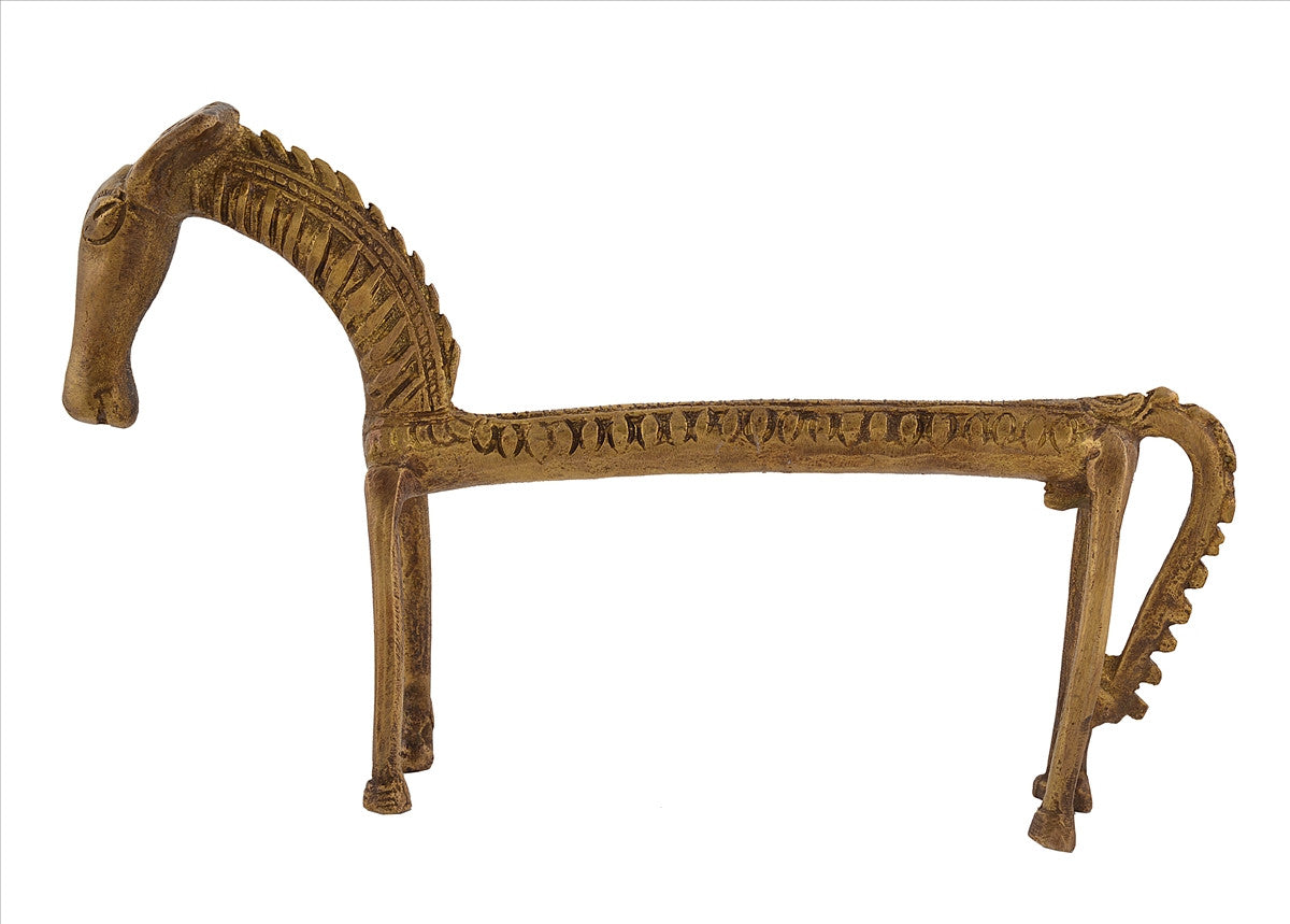 Sanskriti Vintage Antique Look Tribal Horse Solid Brass Home Decor Showpiece Miniature