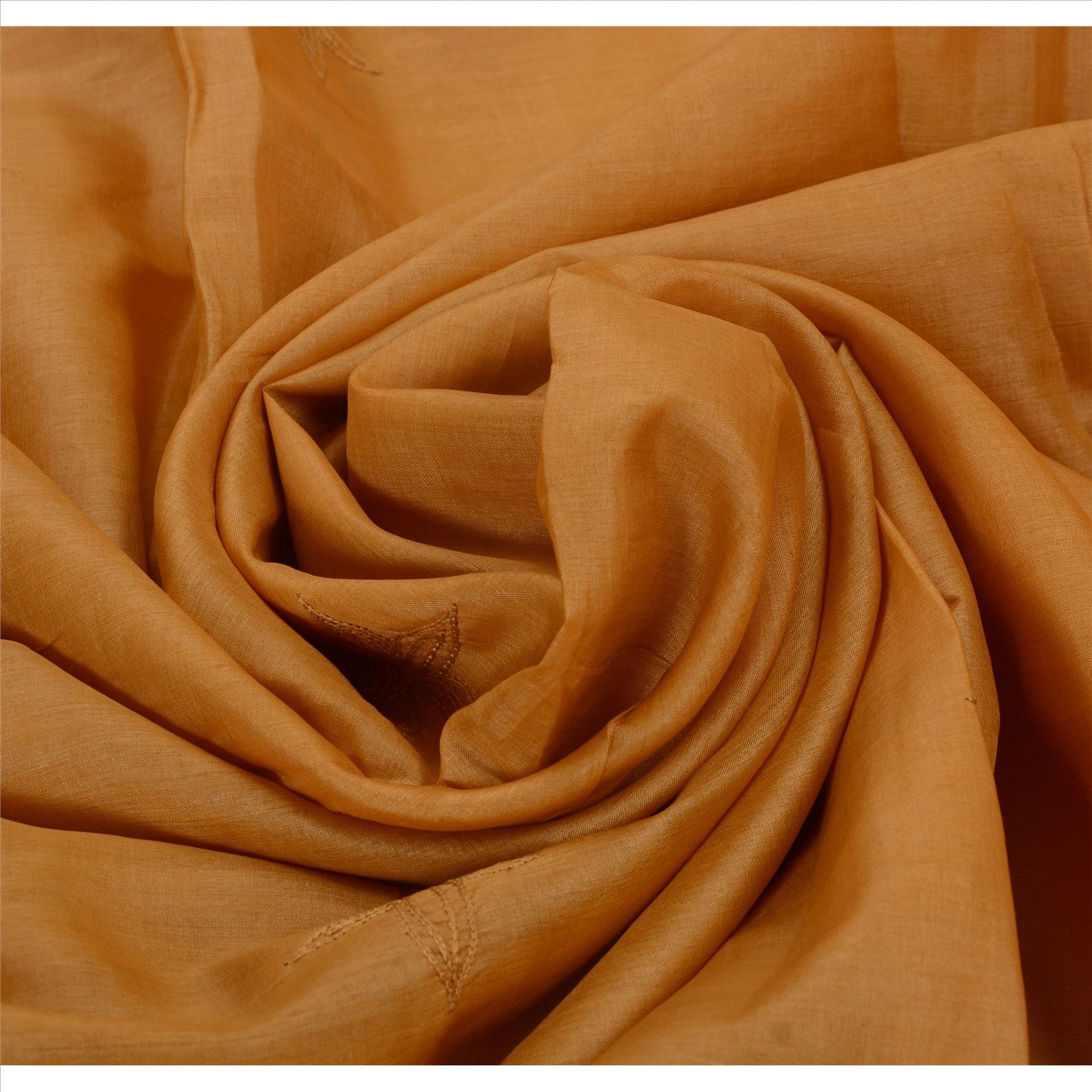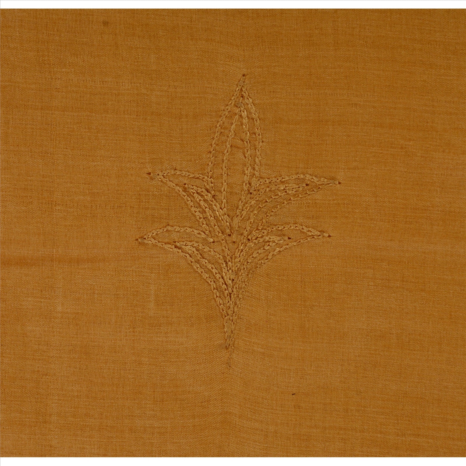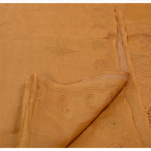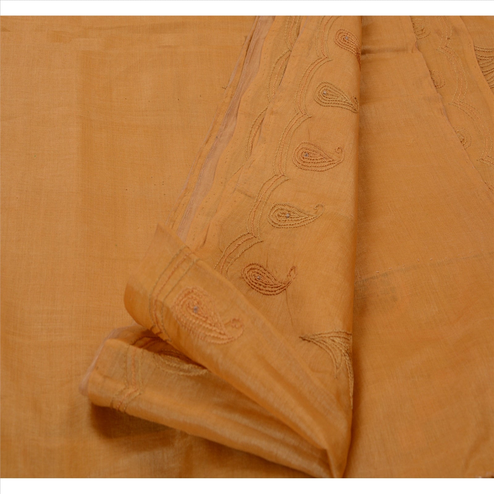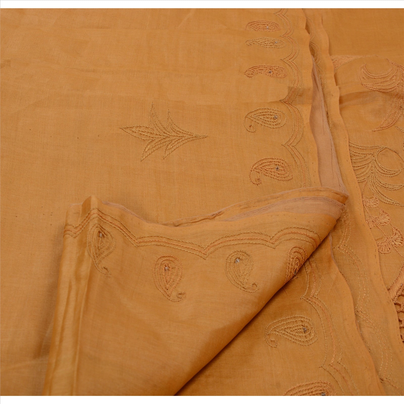 Beautiful saffron colored hand embroidered pure silk sari