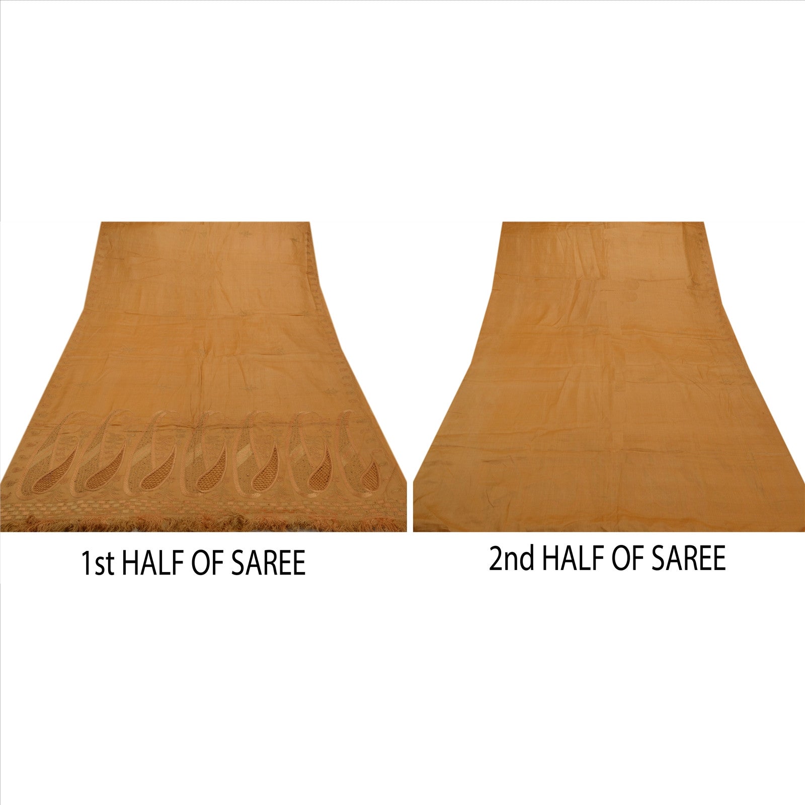 Sanskriti Vintage Indian Saree 100% Pure Silk Hand Beaded Saffron Sustainable Fabric Sari