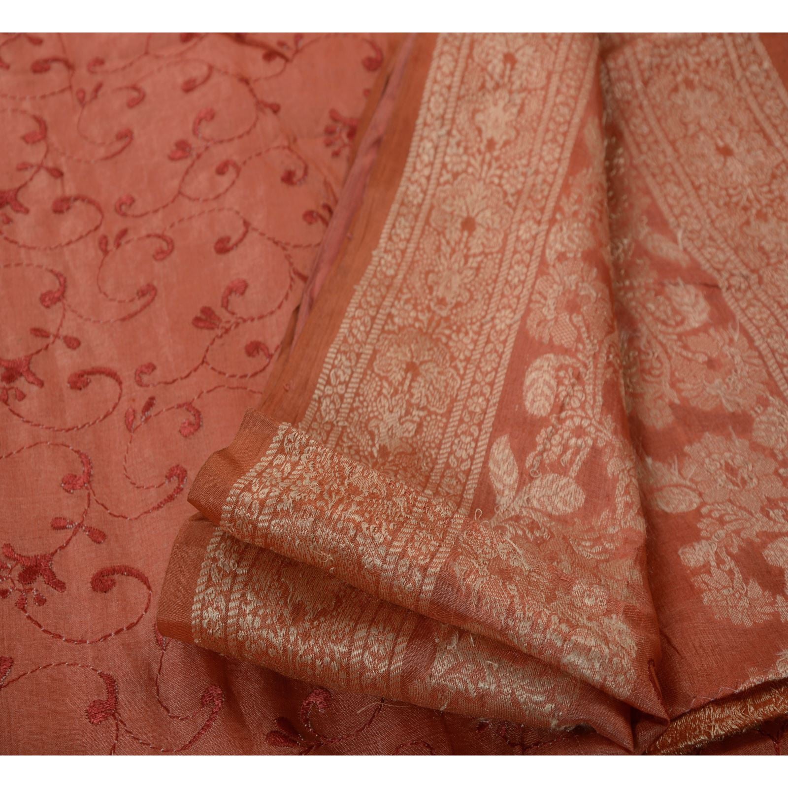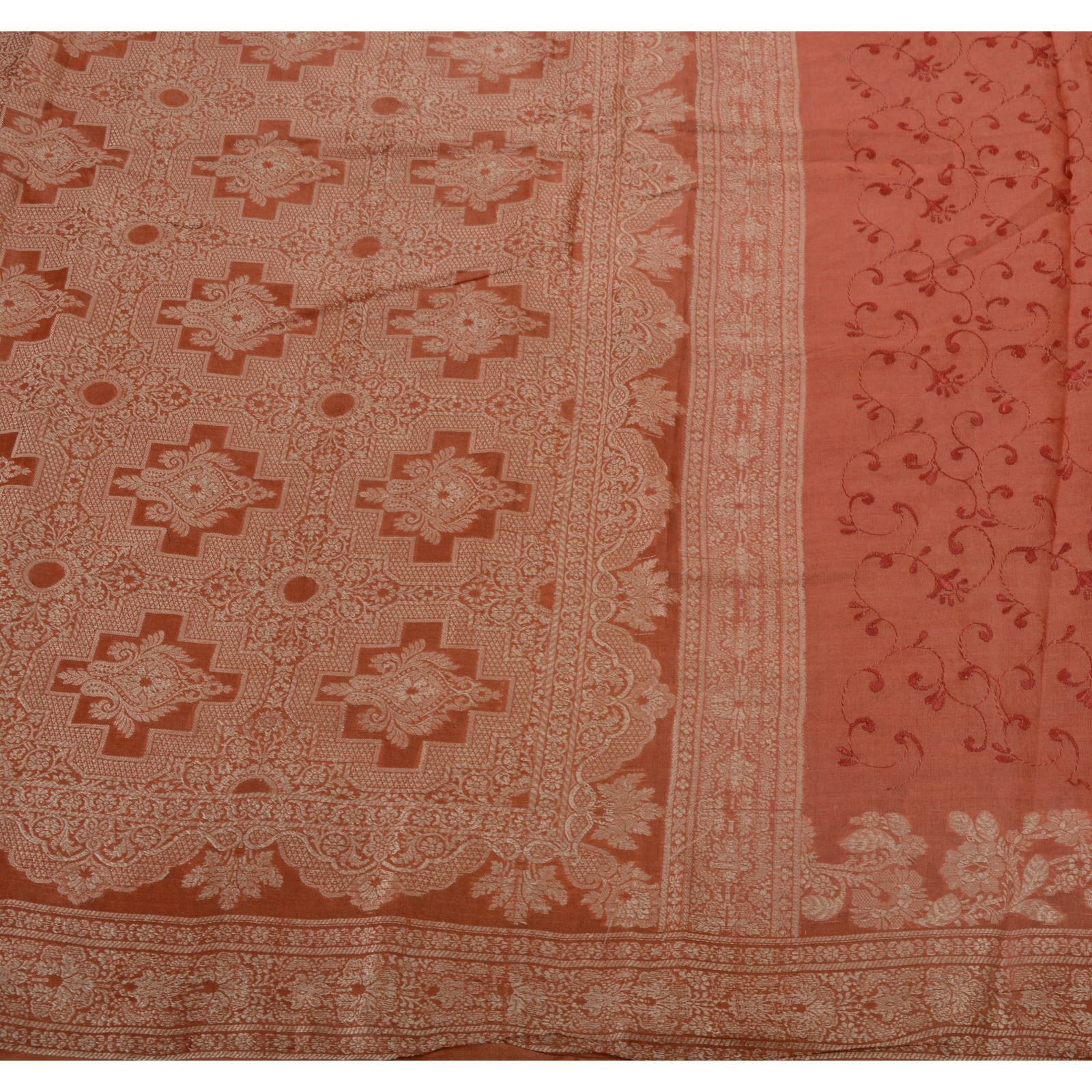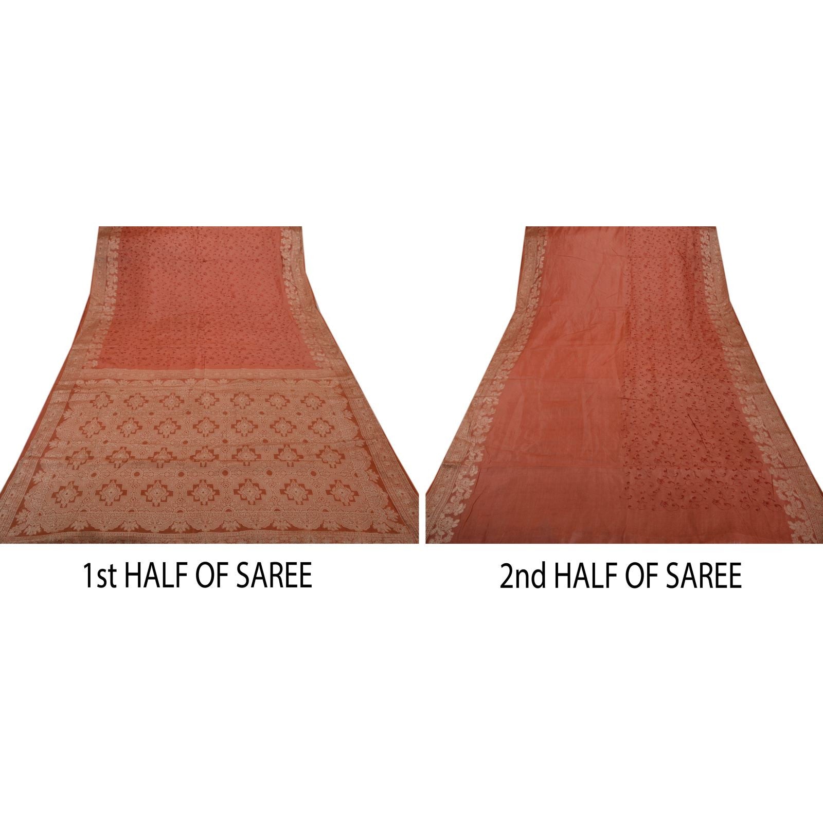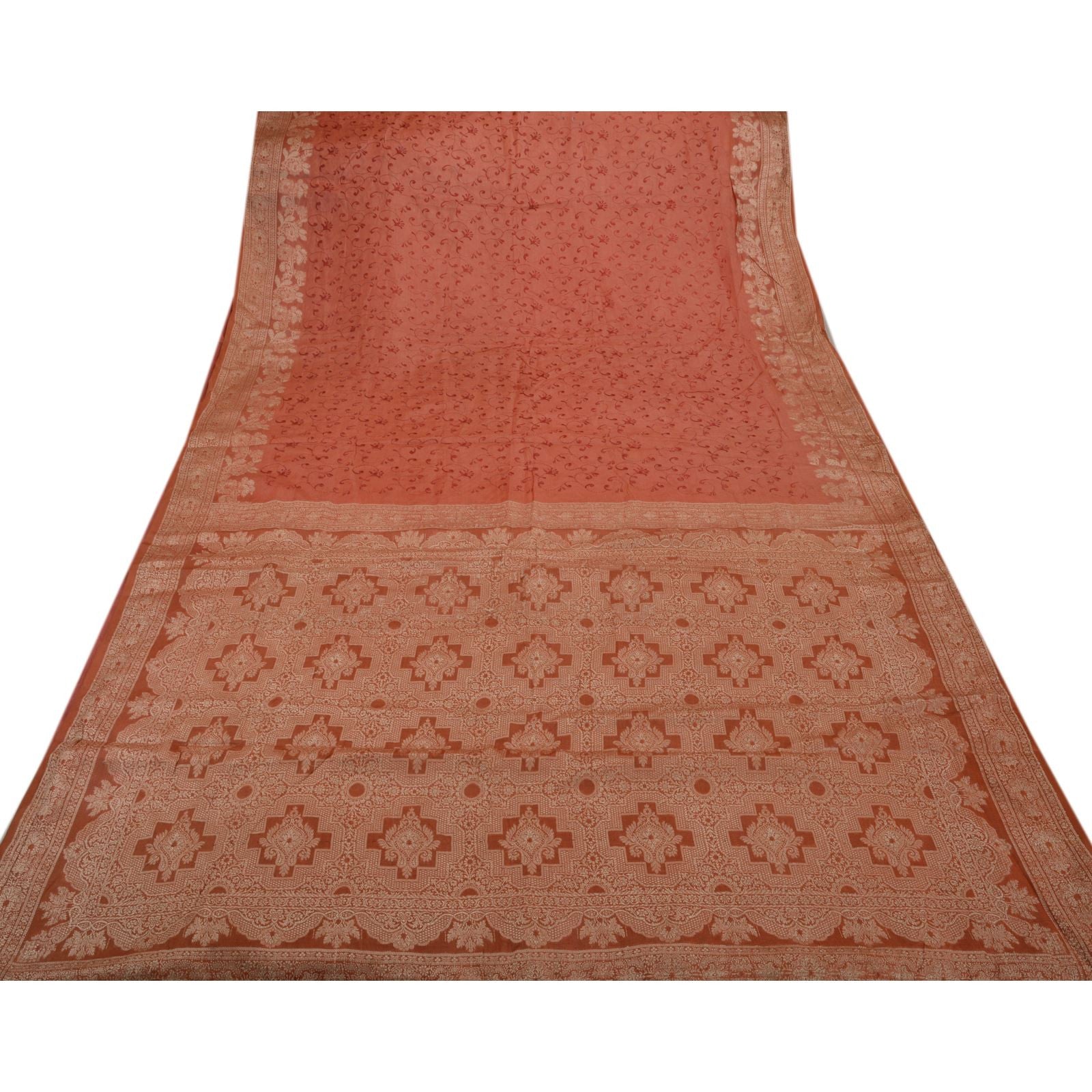 Sanskriti Vintage Indian Saree 100% Pure Silk Woven Embroidered Peach Sustainable Fabric Sari