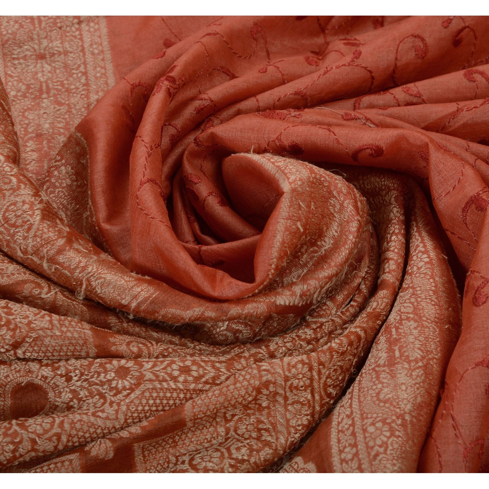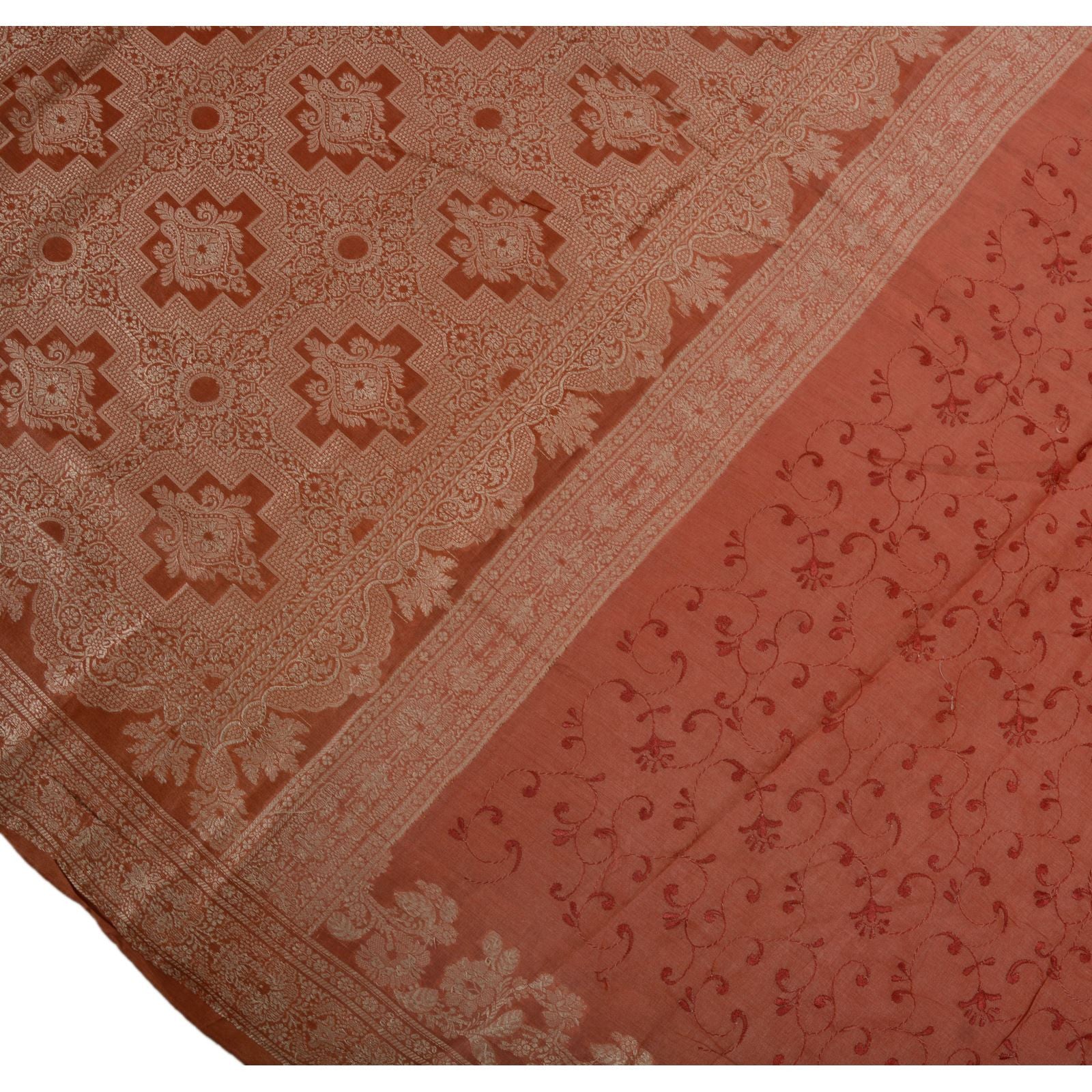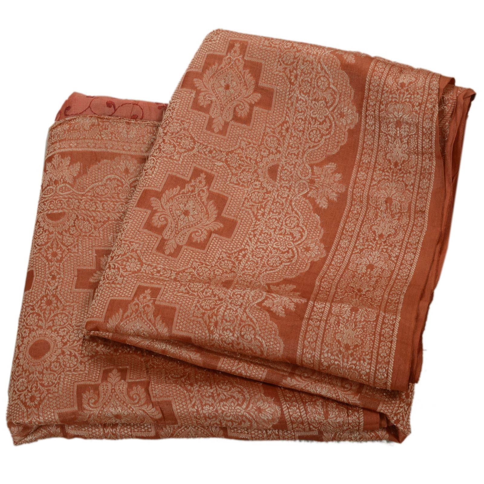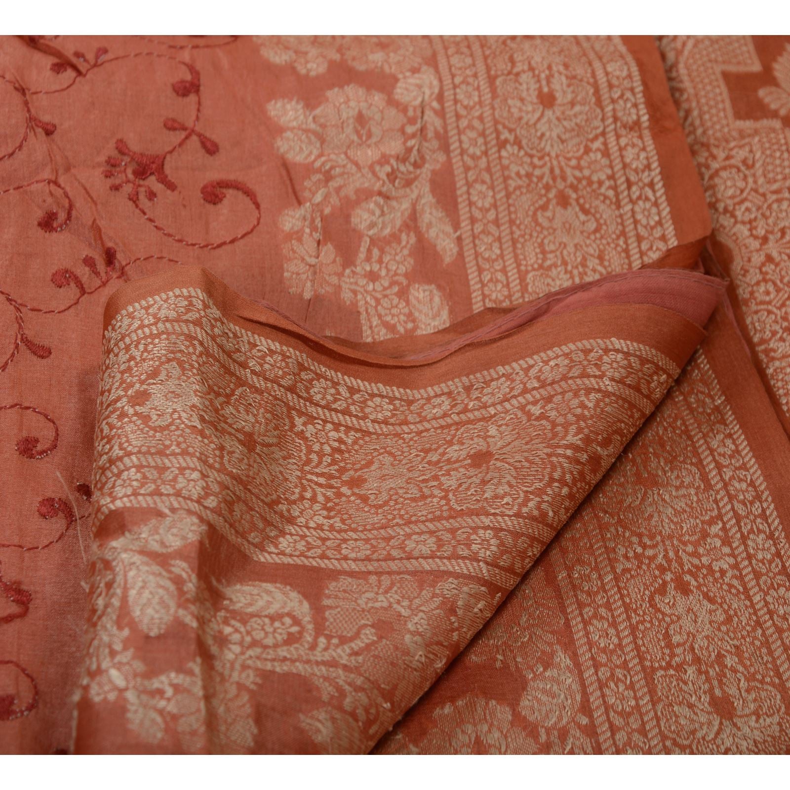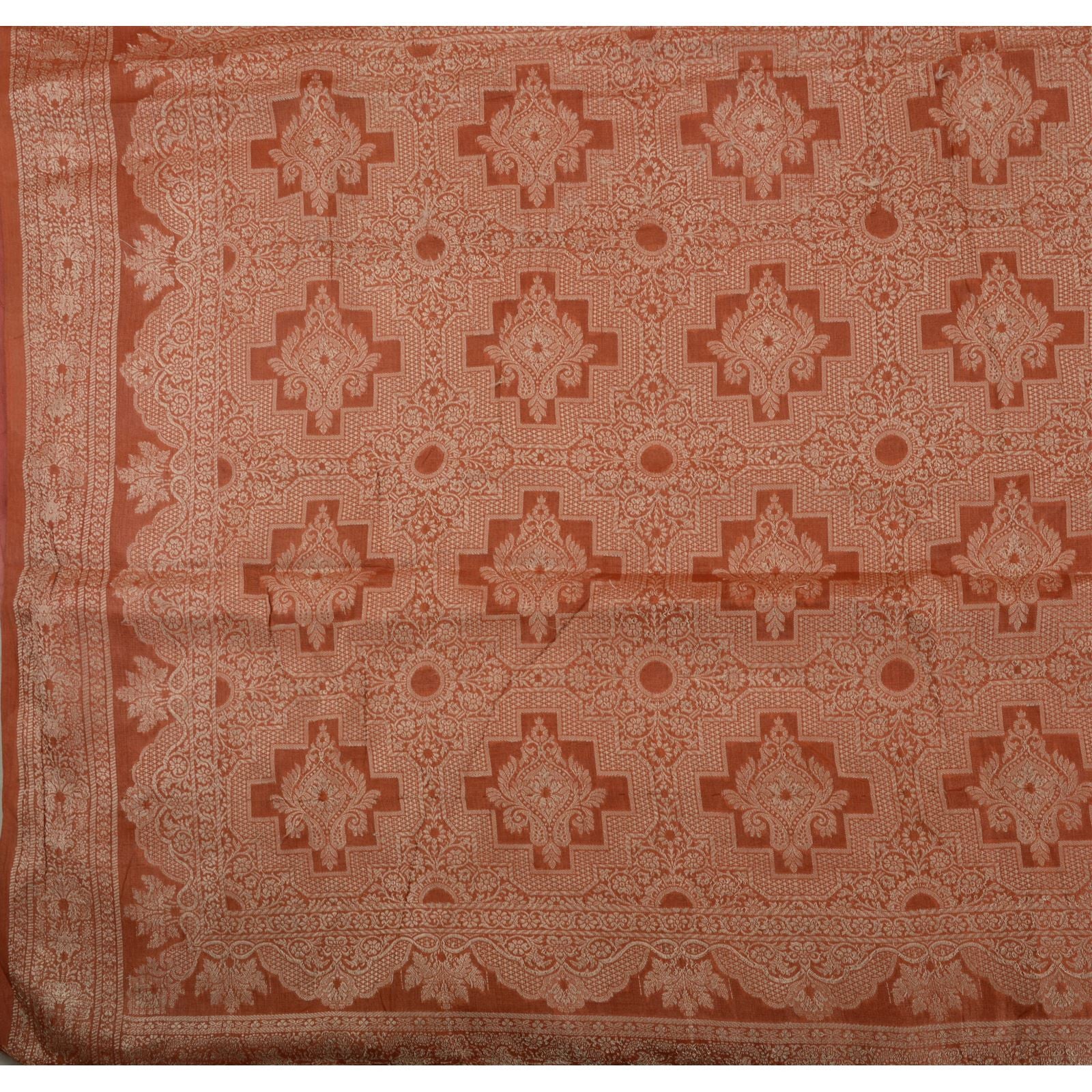 Sanskriti Vintage Indian Saree 100% Pure Silk Woven Embroidered Peach Sustainable Fabric Sari