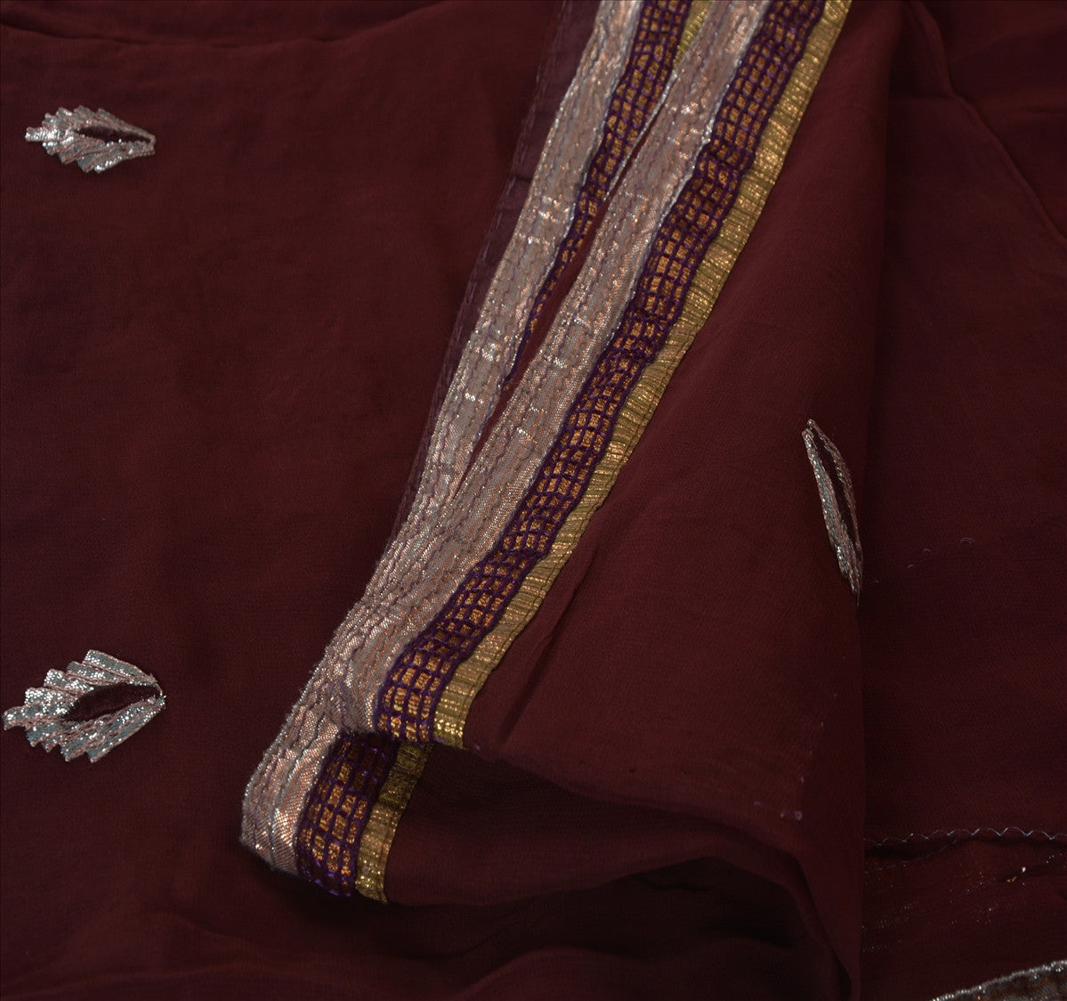 Sanskriti Vintage Indian Saree Georgette Hand Embroidery Craft Sustainable Fabric Sari Gota