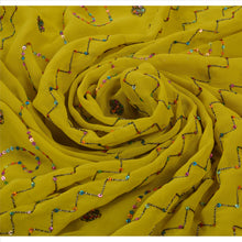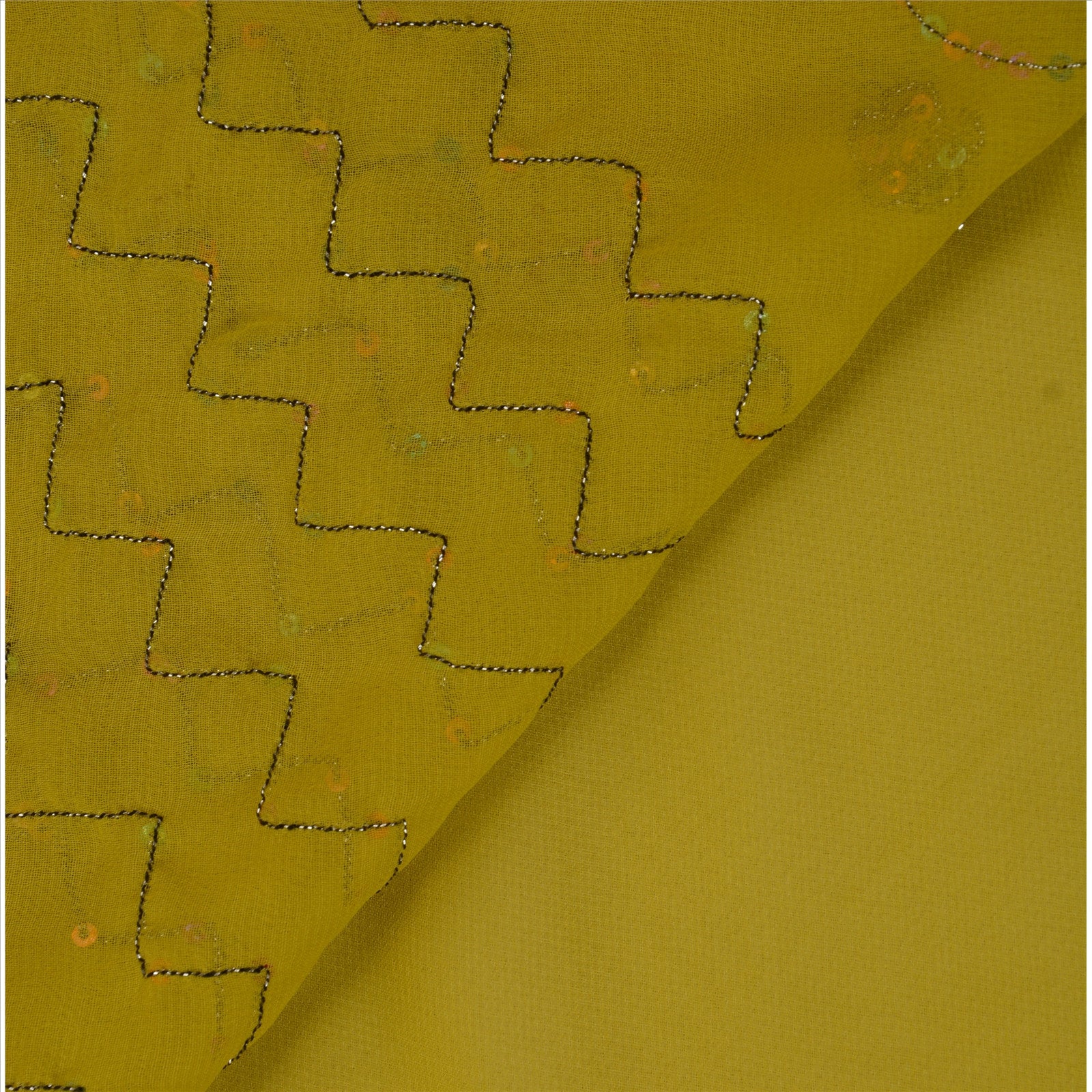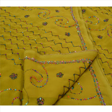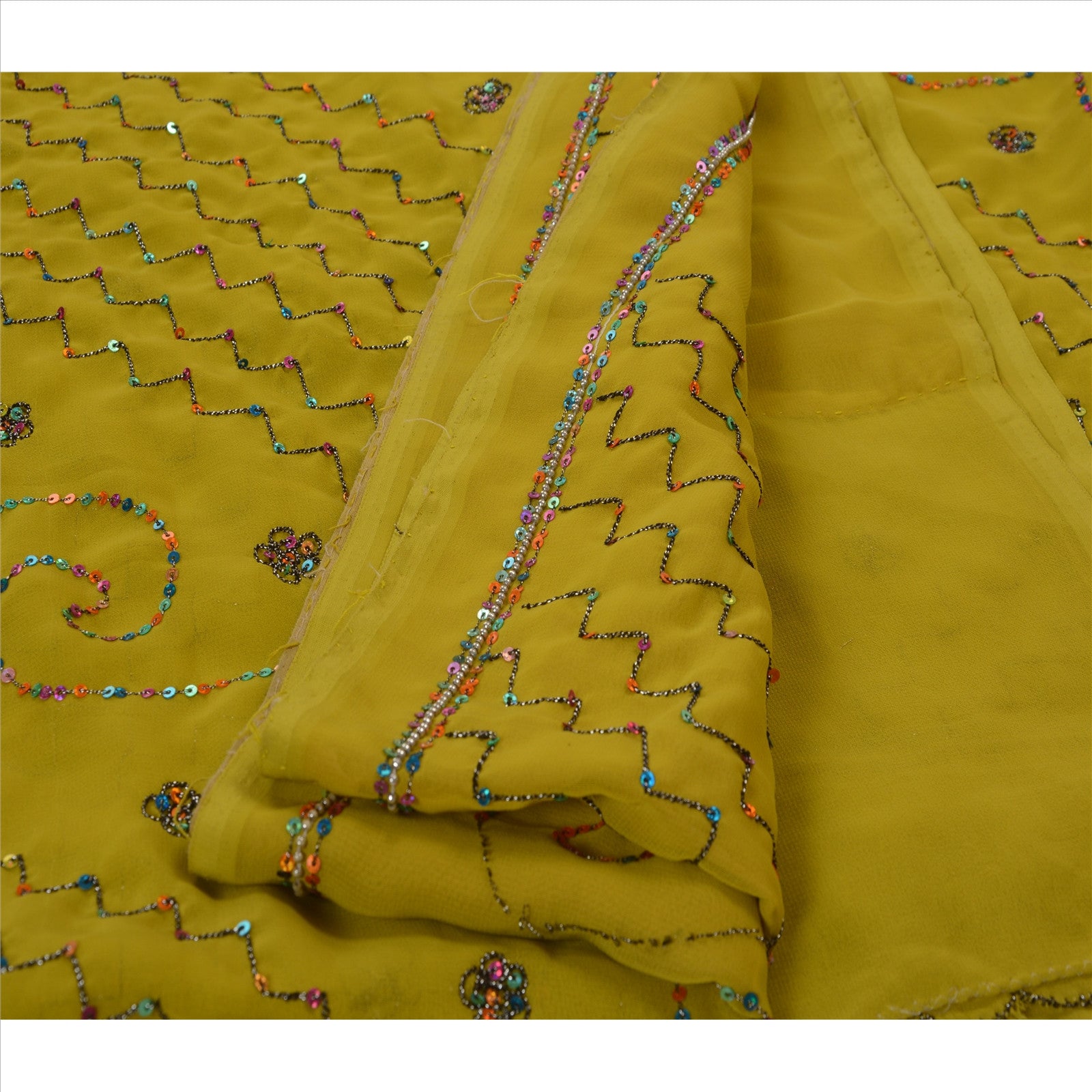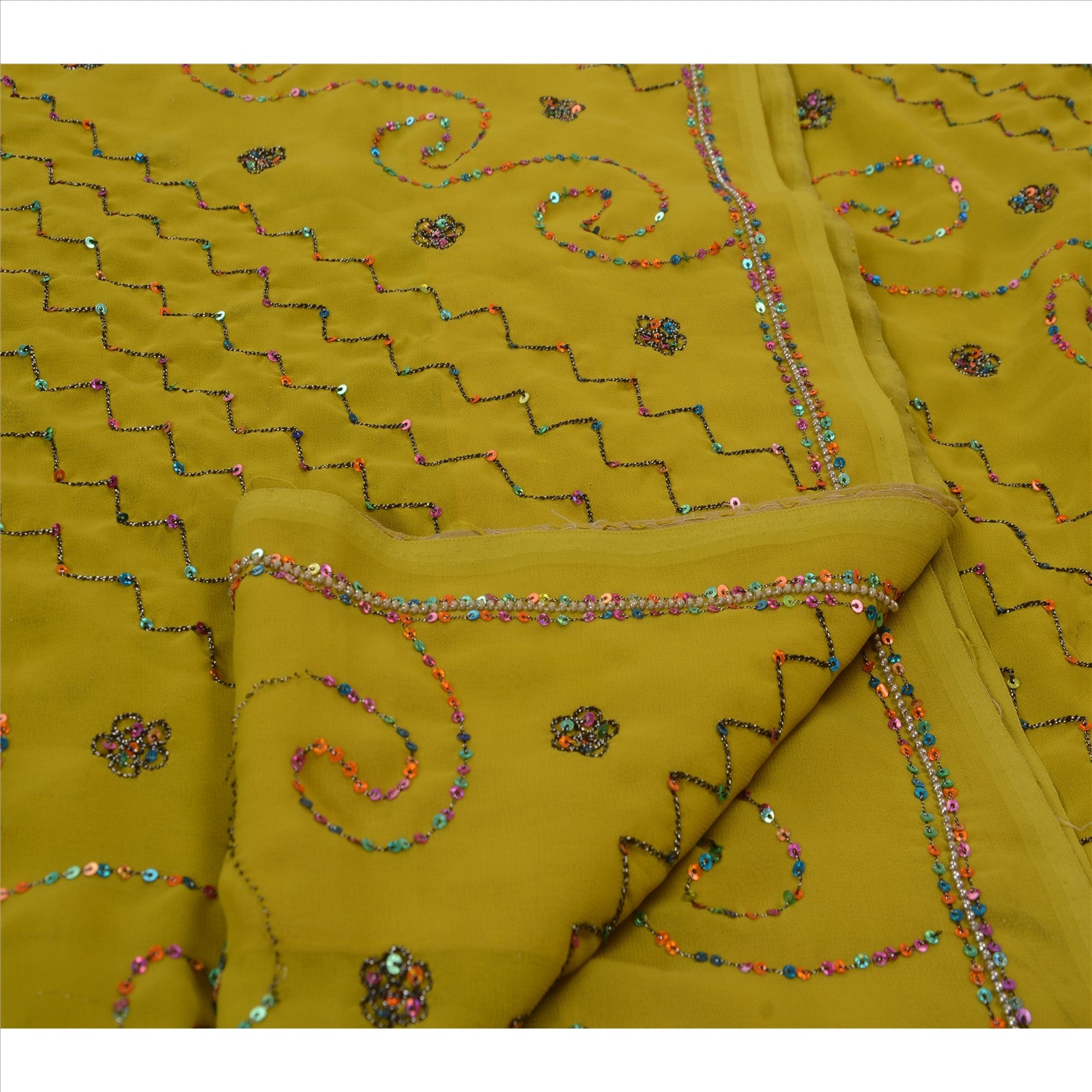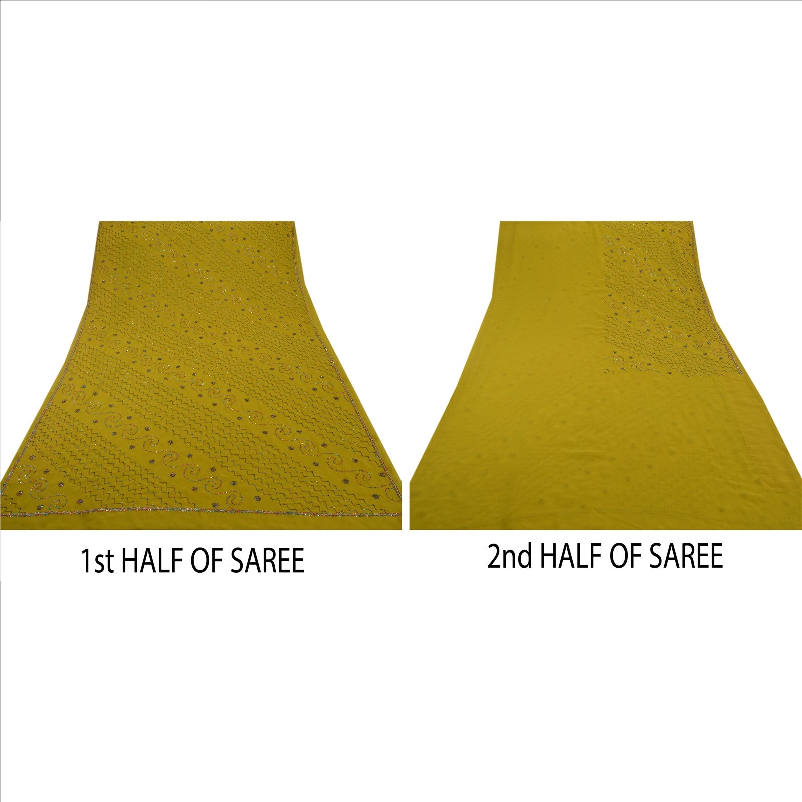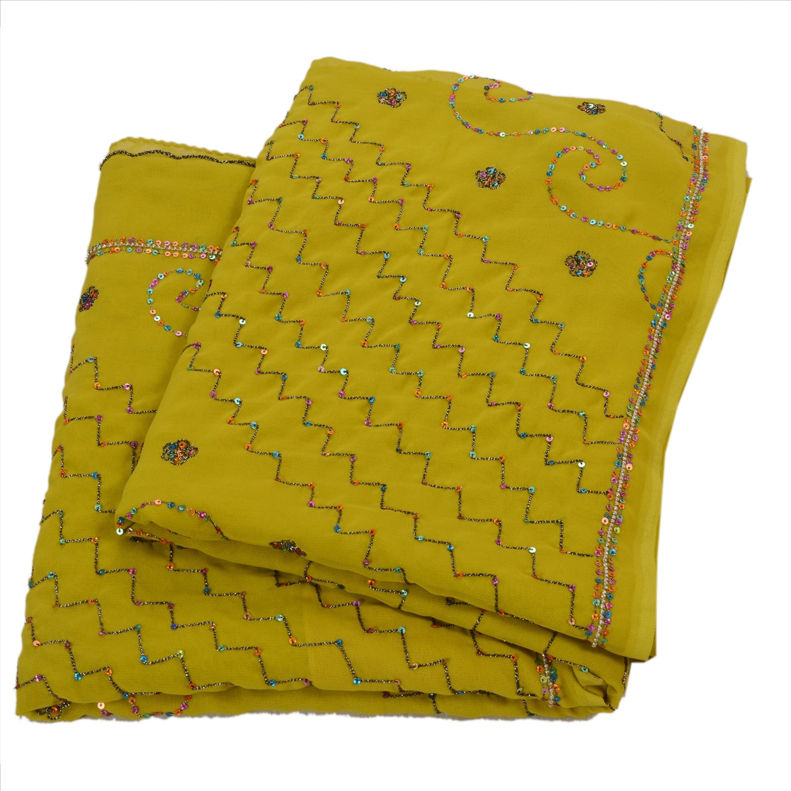 Sanskriti Vintage Antique Indian Saree Georgette Hand Embroidery Green Sustainable Fabric Sari Sequins