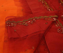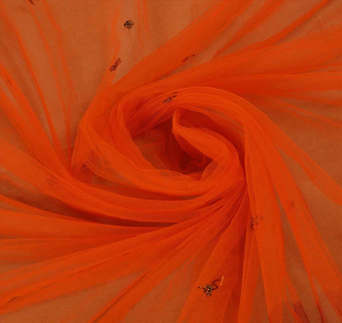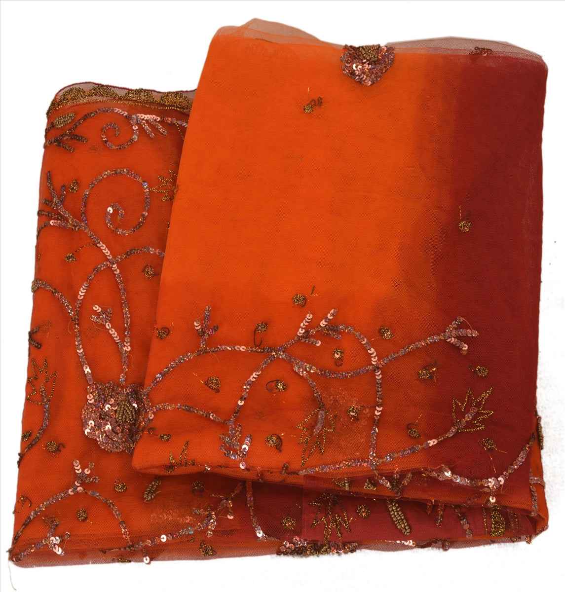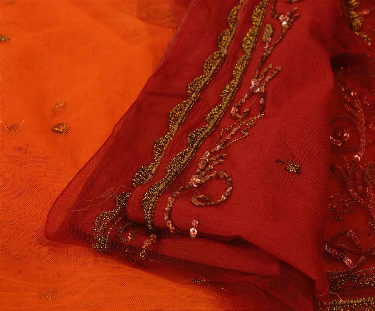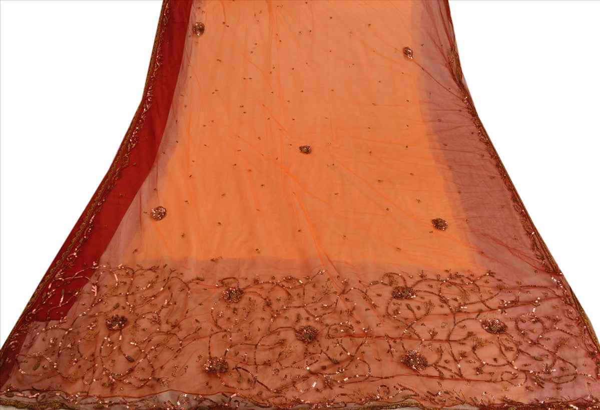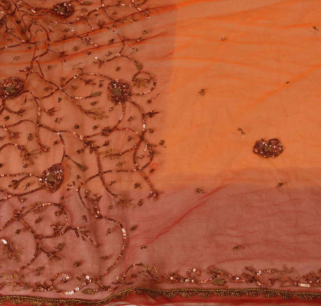Sanskriti Vintage Antique Indian Saree Net Mesh Hand Embroidery Orange Craft Sustainable Fabric Sari