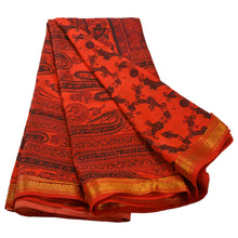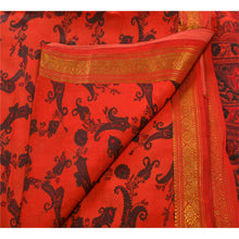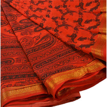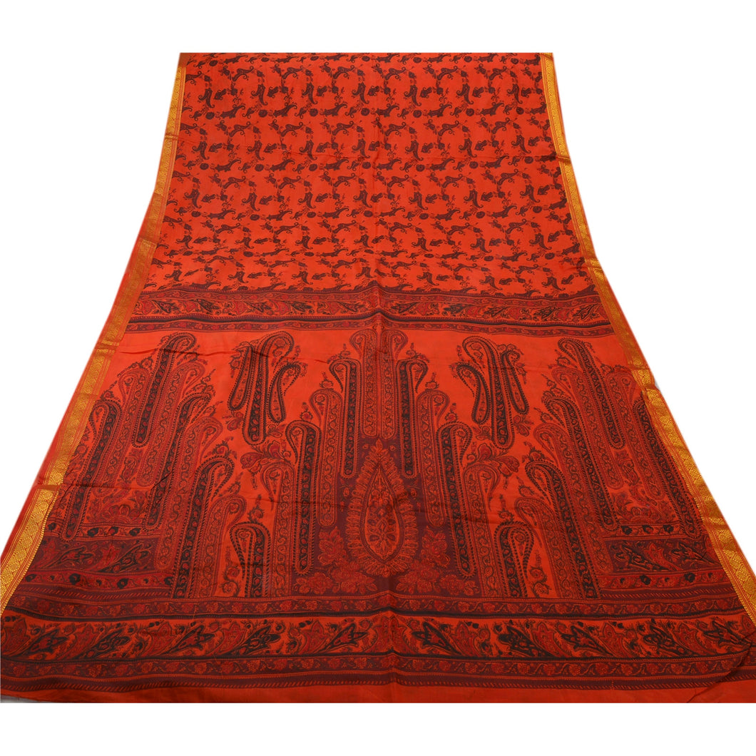 Sanskriti Vintage Printed Saree Art Silk Craft Orange Sustainable Fabric Zari Border Sari