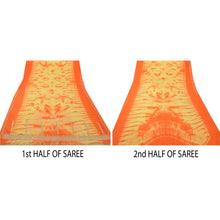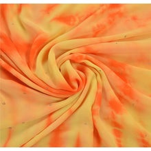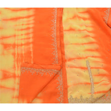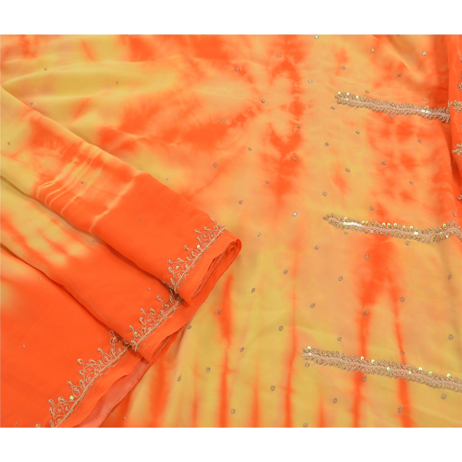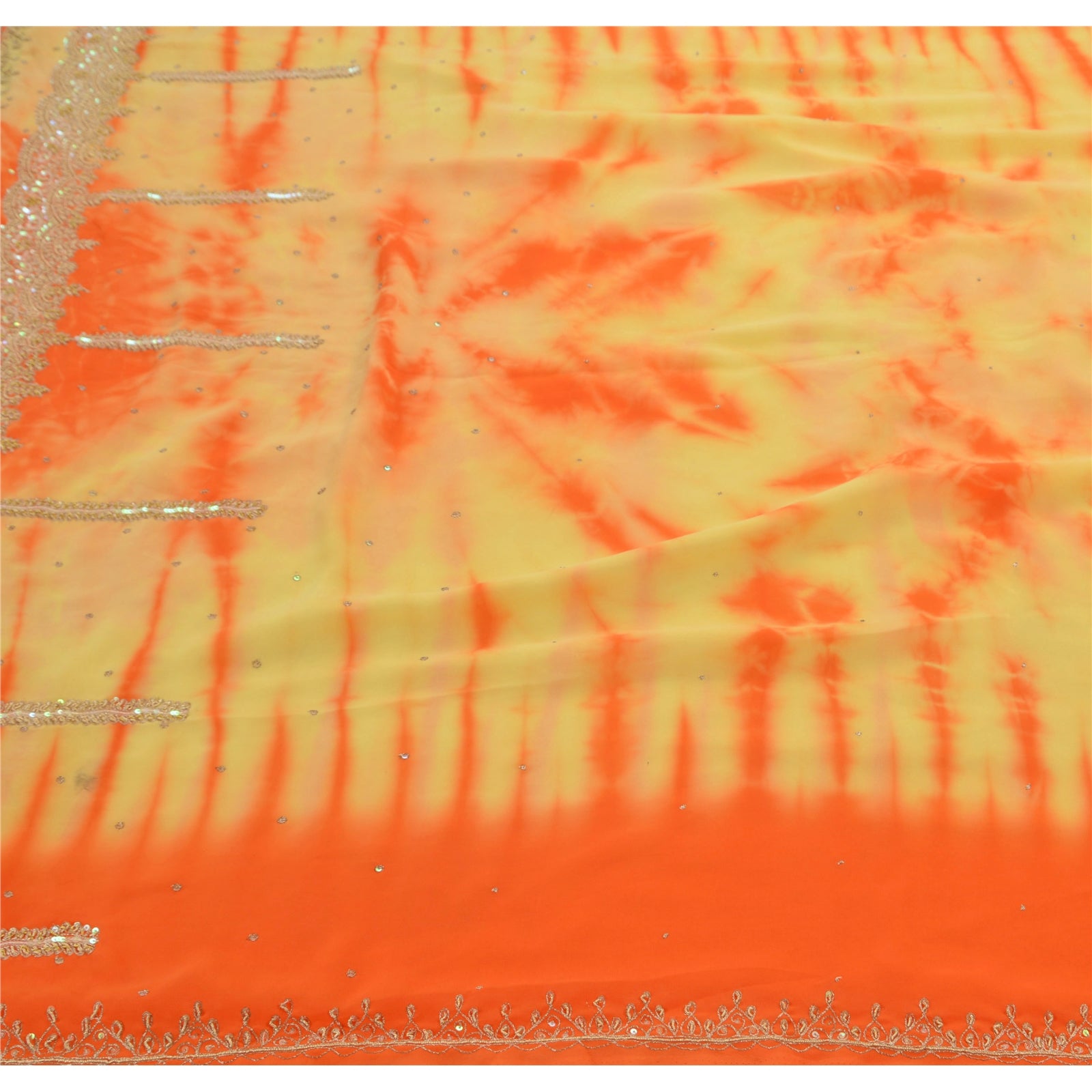 ? Beautiful yellow & orange colored hand embroidered georgette leheria sari ? Pallu & Border features floral design embellished with gold zari/zardozi/dabka work, green sequins, work. ? There are floral motifs with similar work in center part of sari. What is special about this saree? Sparkling sequins work with amazing leheria work on yellow & orange color base Sustainable Fabric is really enhancing the beauty of the saree. This unique vintage saree can be used for various crafting ideas even if you don't want to use it as a sari. Design a dress, use it as a throw, as window dressing, upholstery, sarongs, table linen and much more. Let your creative juices flow and use this decorated Sustainable Fabric in multiple fashion.