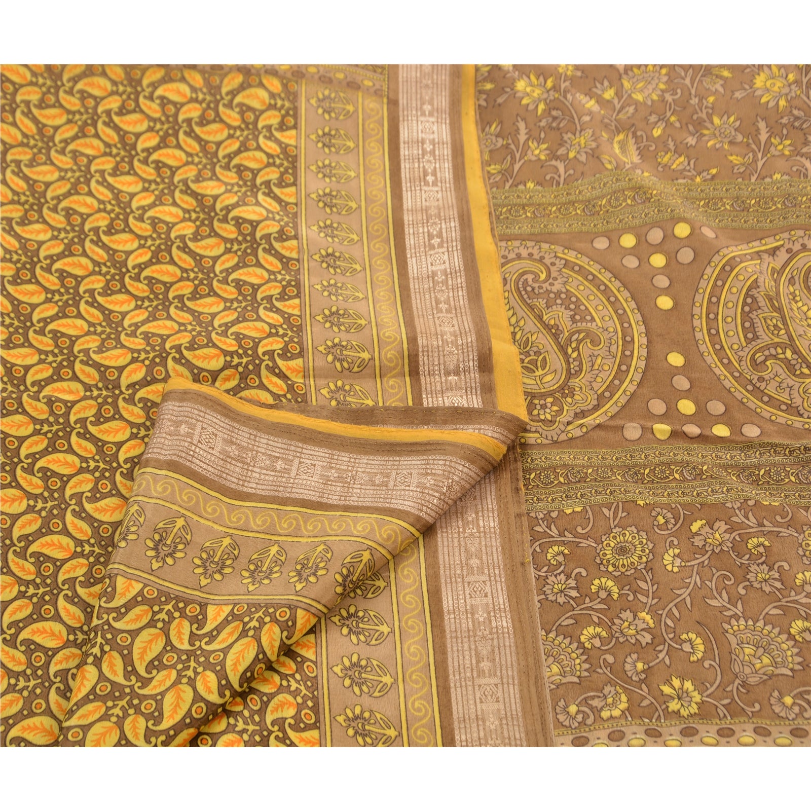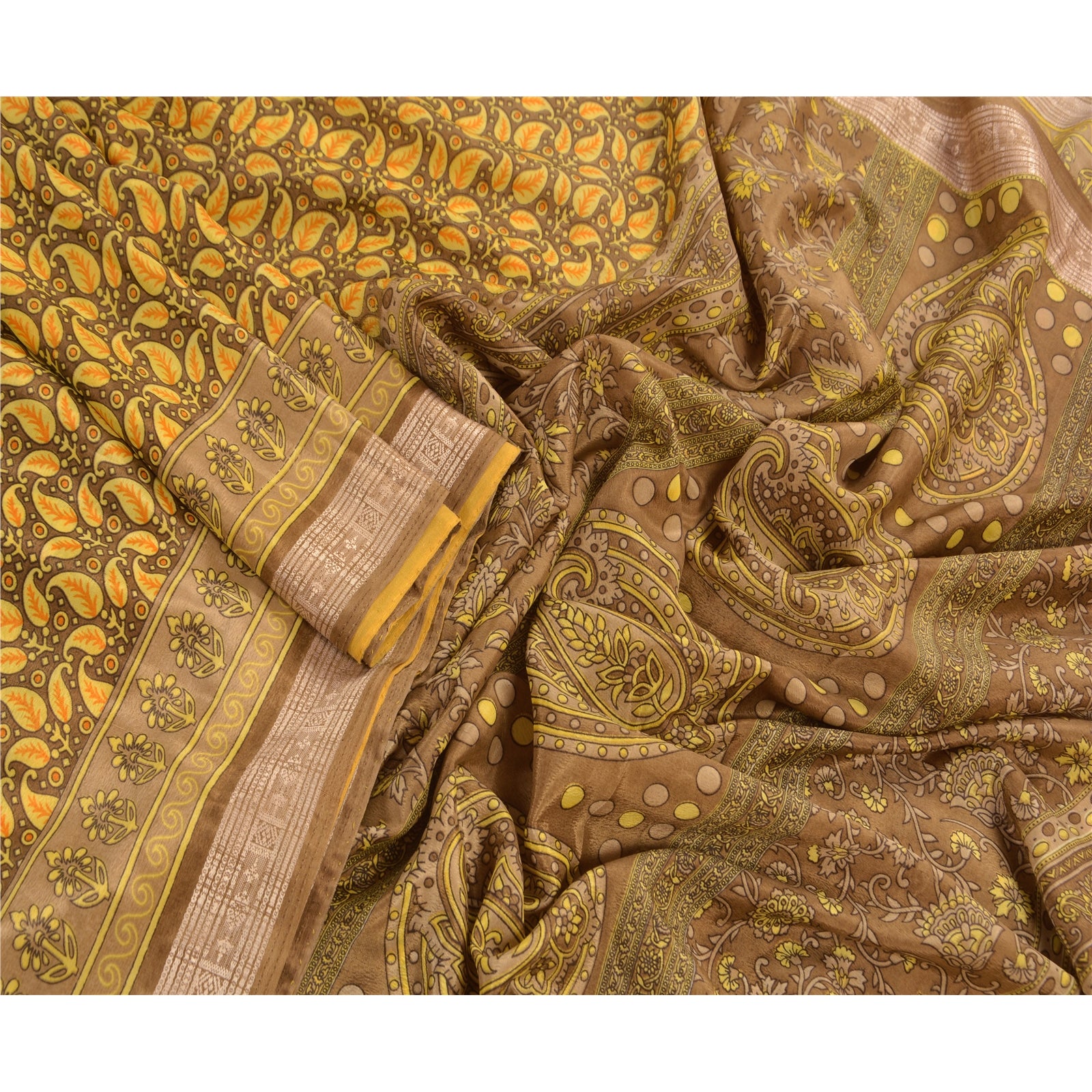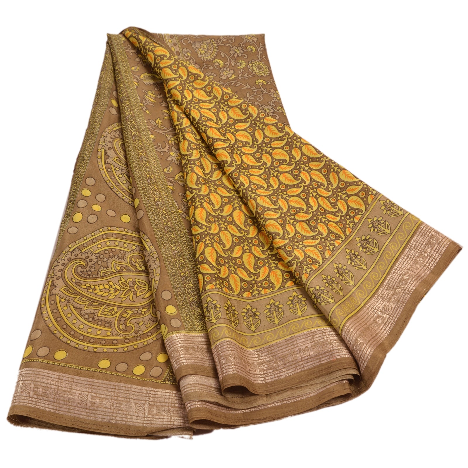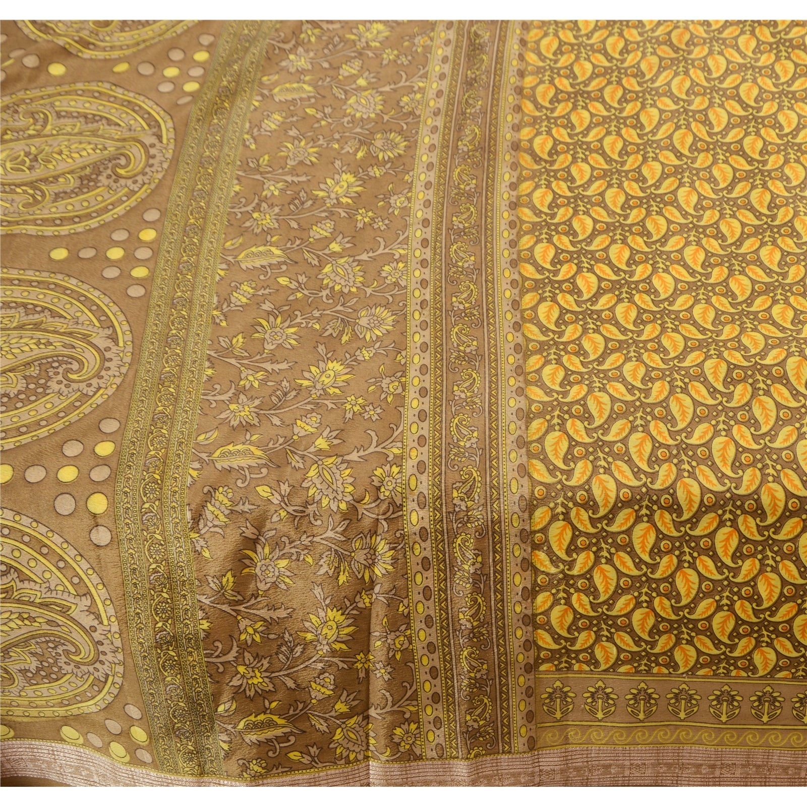 Sanskriti Vintage Art Silk Saree Green Paisley Printed Sari Craft Decor Sustainable Fabric