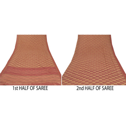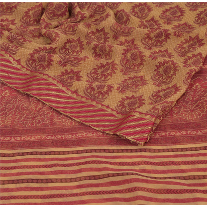 Sanskriti Vintage Beige Saree Georgette Printed Sari 5 Yard Craft Sustainable Fabric