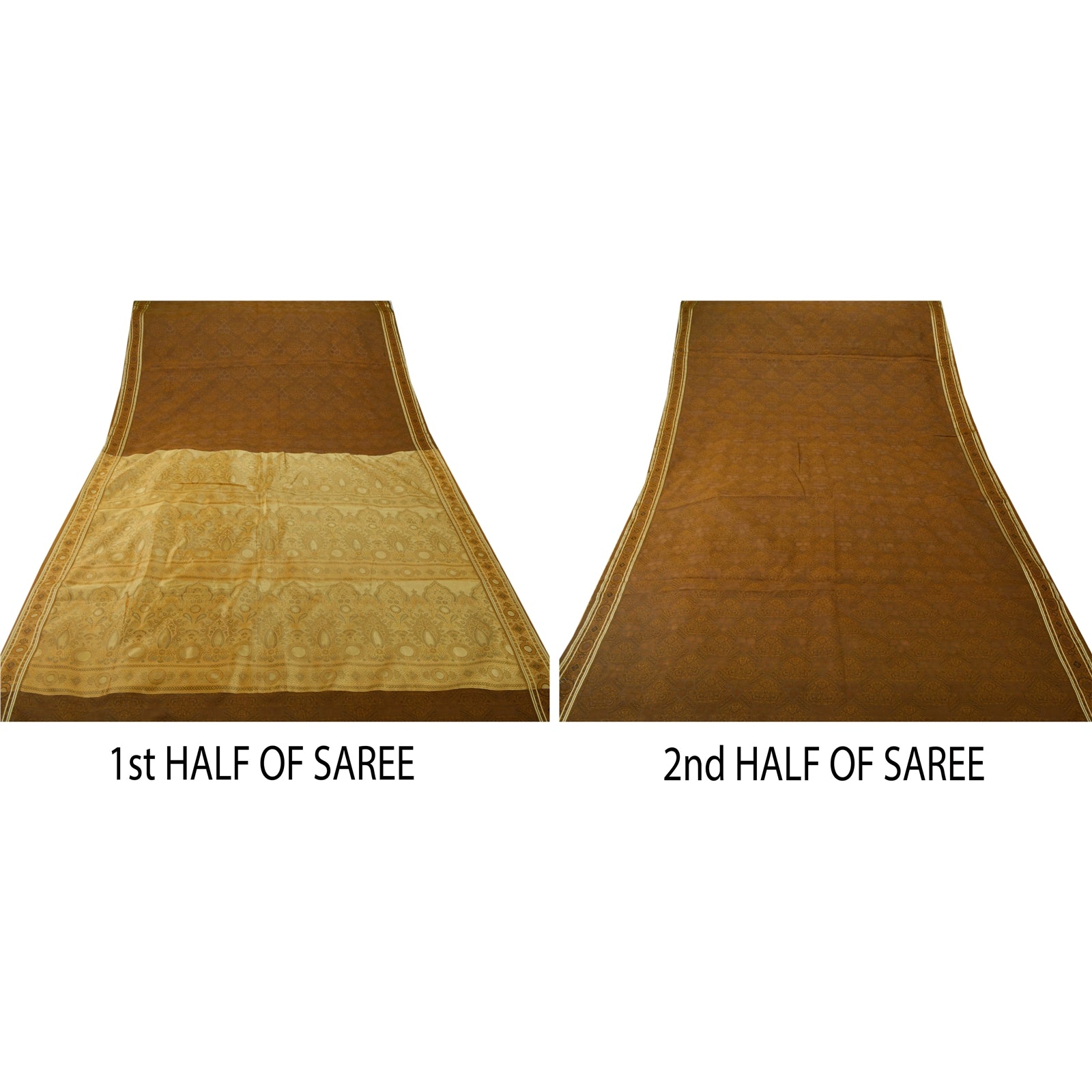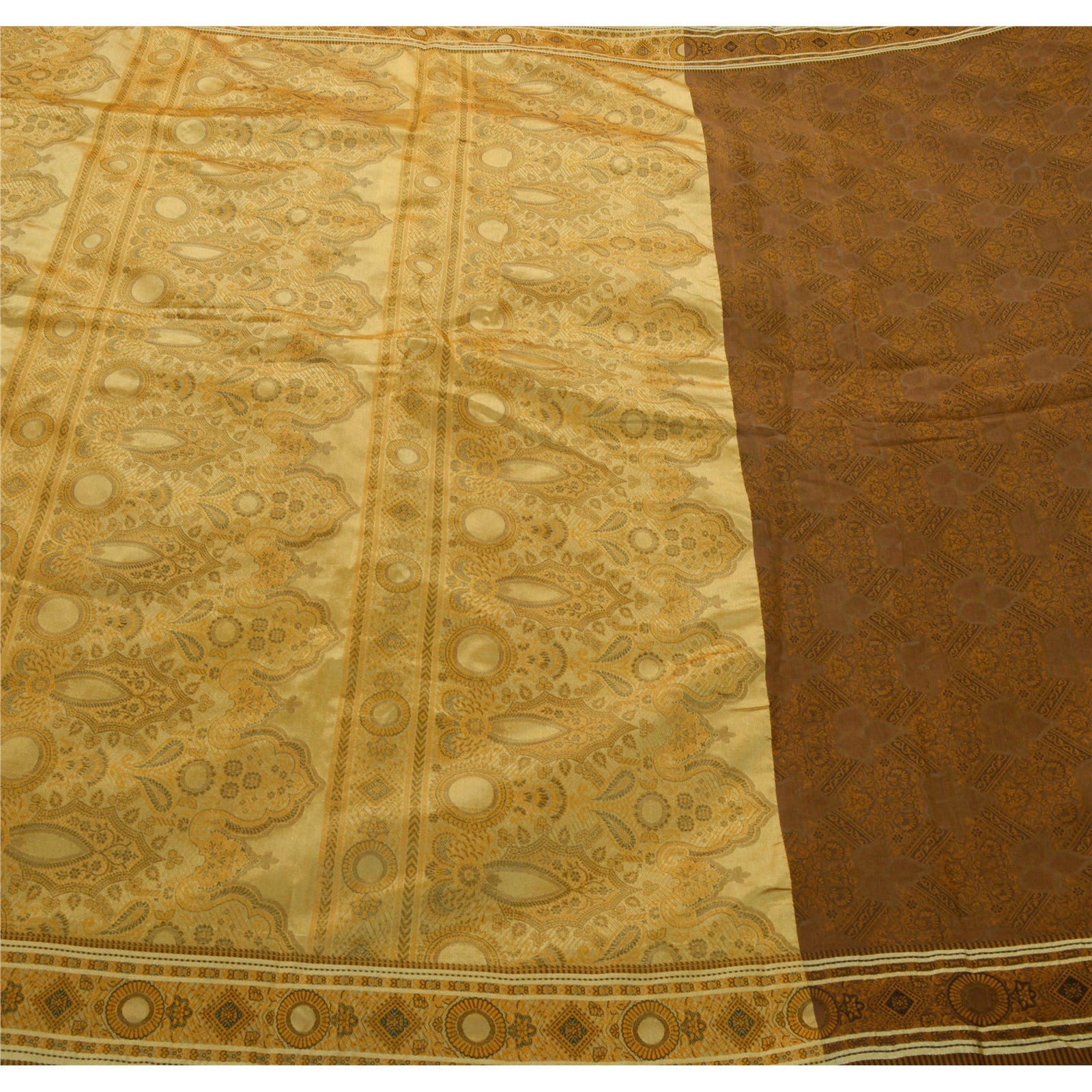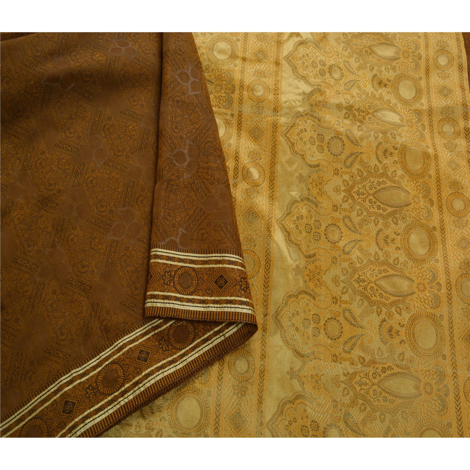 Sanskriti Vintage Brown Saree Art Silk Woven Craft 5Yd Sustainable Fabric Decor Premium Sari