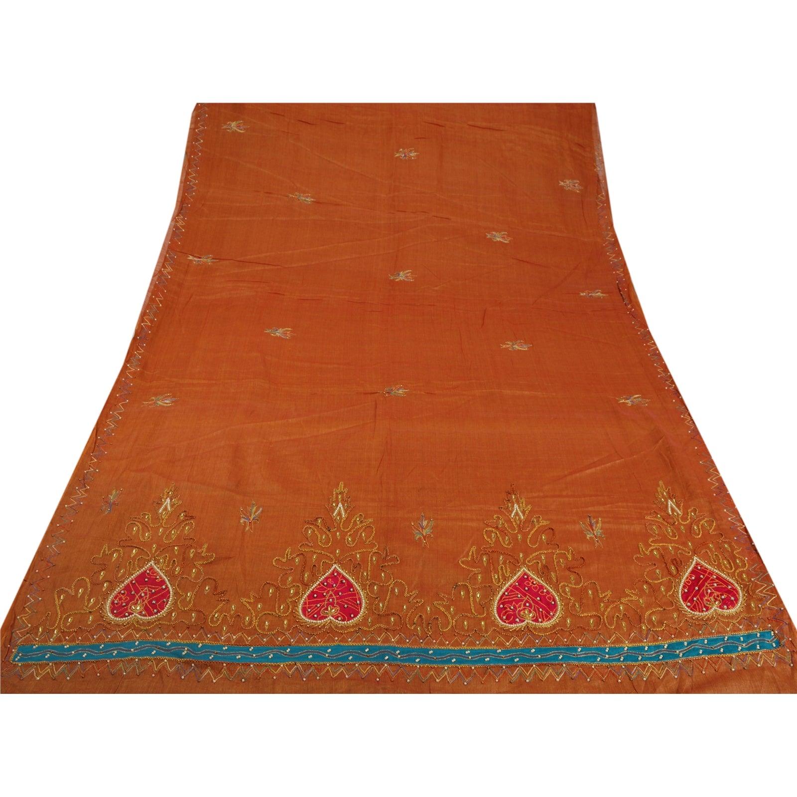 • Antique look brown colored hand embroidered blend cotton sari. • Pallu & border features floral design embellished with pure metallic golden zari, zardozi sequins, gold/brown wooden/cream pearl like bead/, yellow/orange strings, multi color thread & pink painted Sustainable Fabric patch work. There are green Sustainable Fabric patch work also on pallu. • Similar work in center part of saree. What is special about this saree? Fantastic beaded work with floral design on brown color base Sustainable Fabric is really enhancing the beauty of the saree. This unique vintage saree can be used for various crafting ideas even if you don't want to use it as a sari. Design a dress, use it as a throw, as window dressing, upholstery, sarongs, table linen and much more. Let your creative juices flow and use this decorated Sustainable Fabric in multiple fashion.