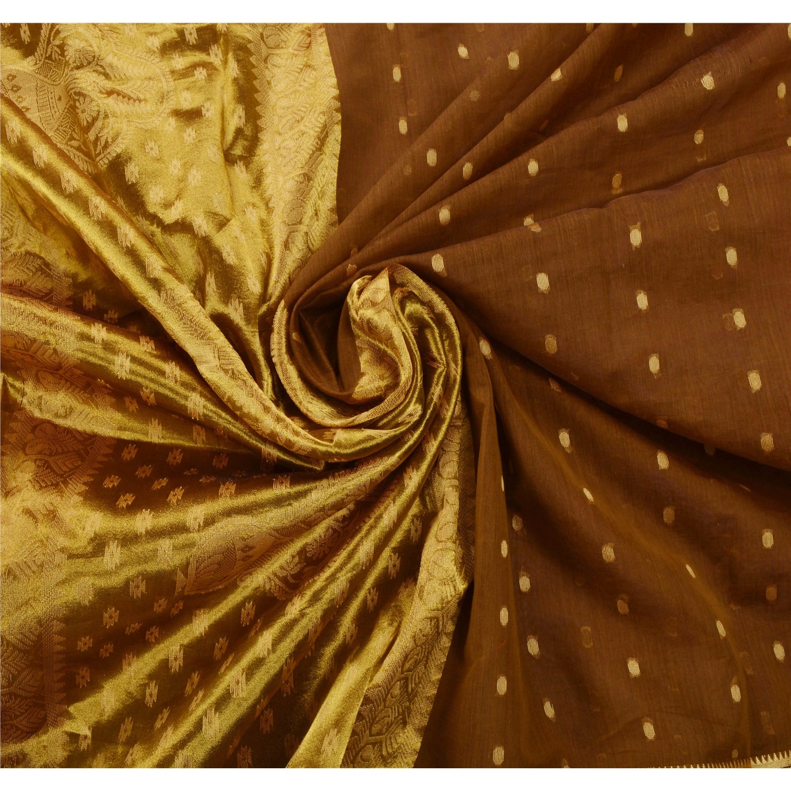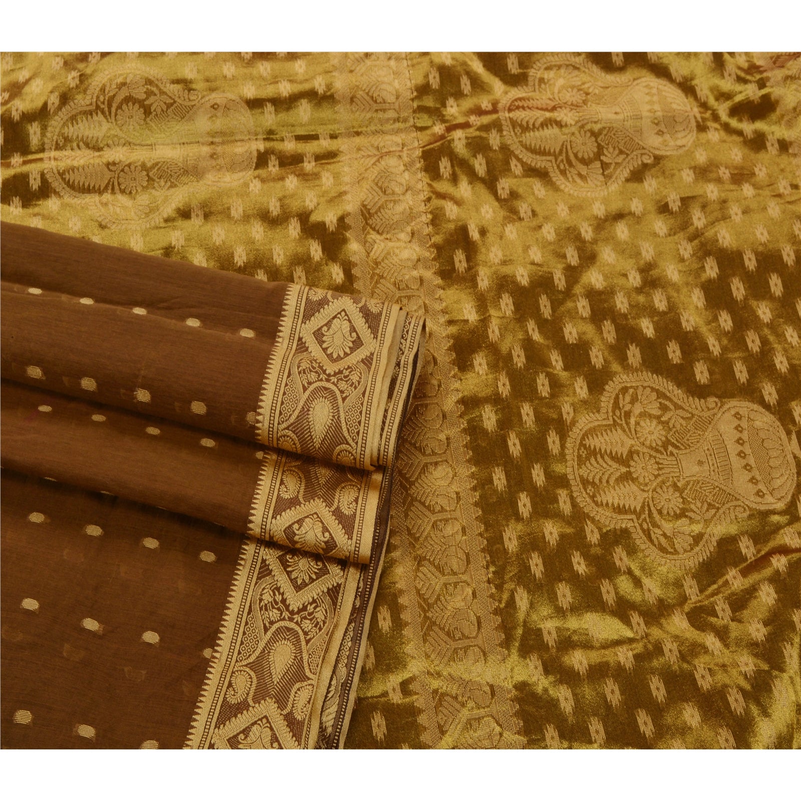 Sanskriti Vintage Brown Saree Cotton Woven Craft 5 Yd Decor Sustainable Fabric Premium Sari