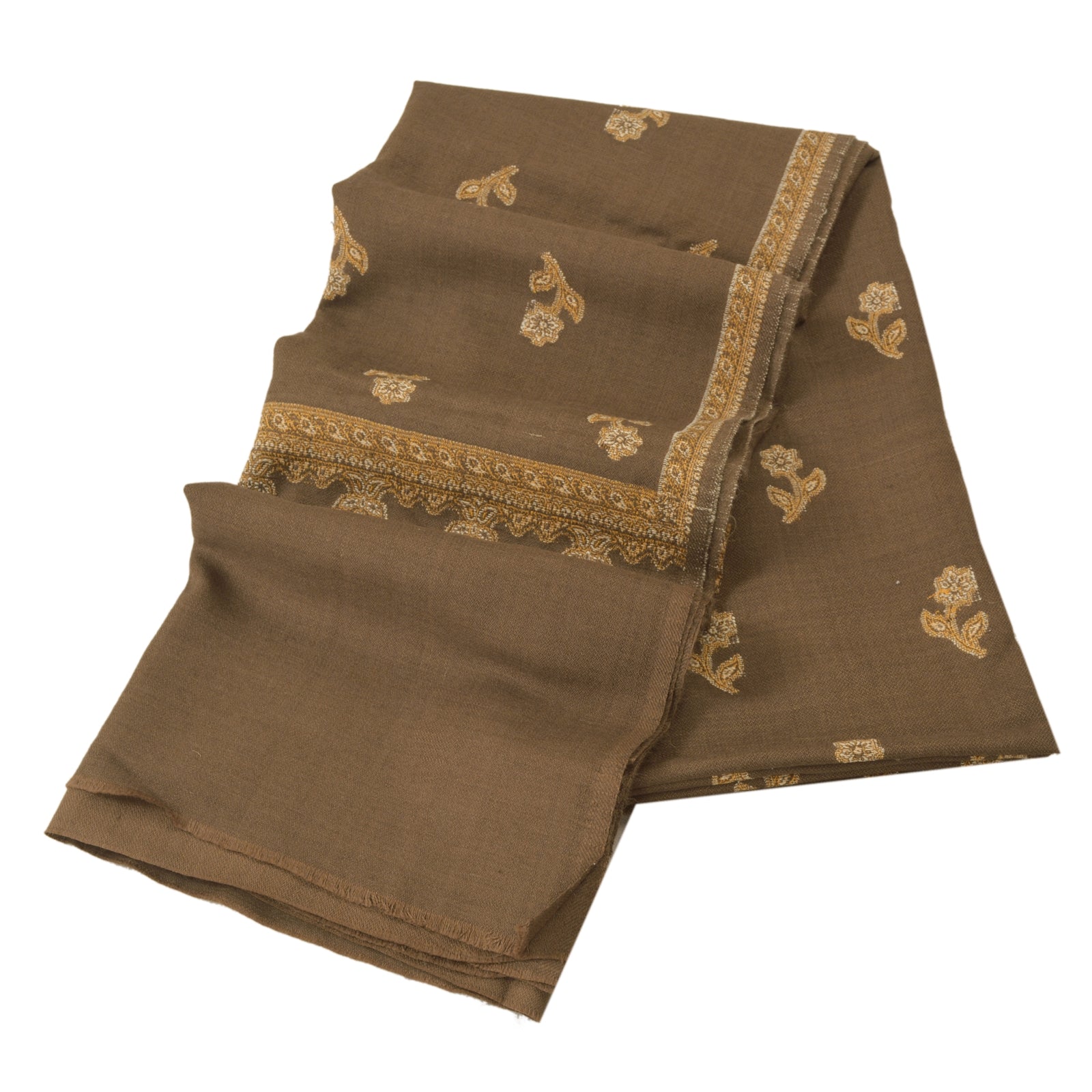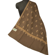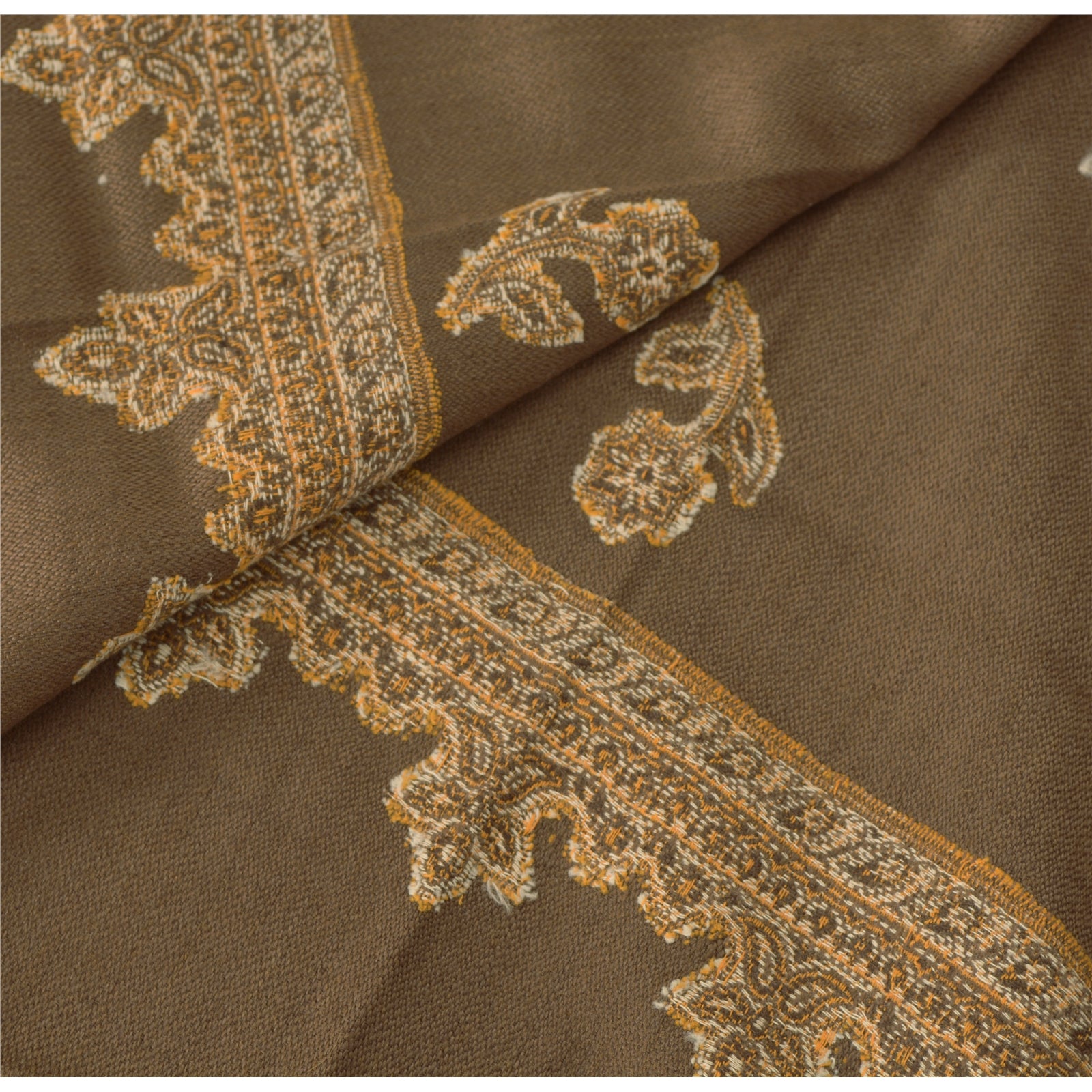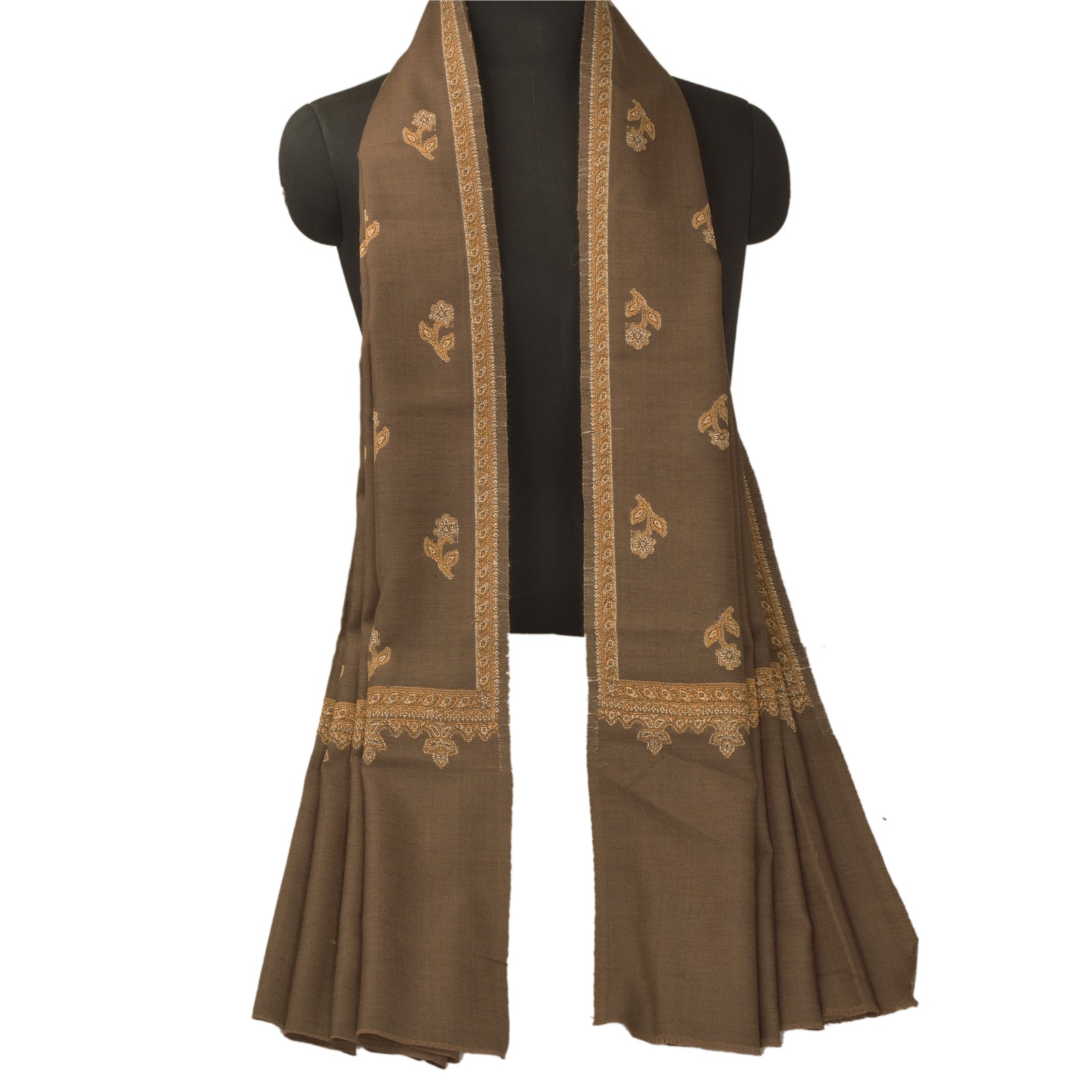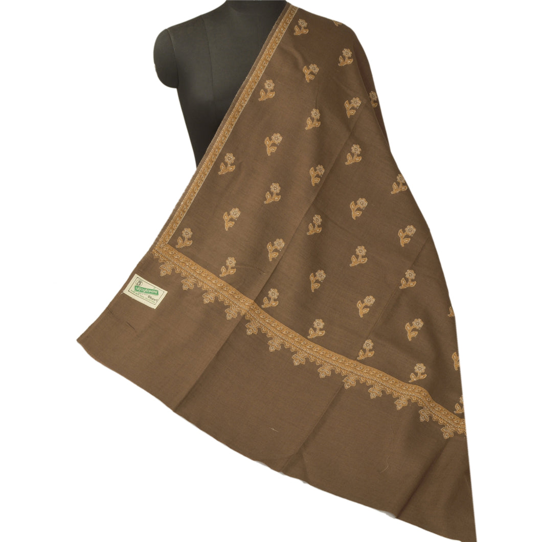 Sanskriti Vintage Brown Woolen Shawl Embroidered Long Stole Soft Scarf Floral