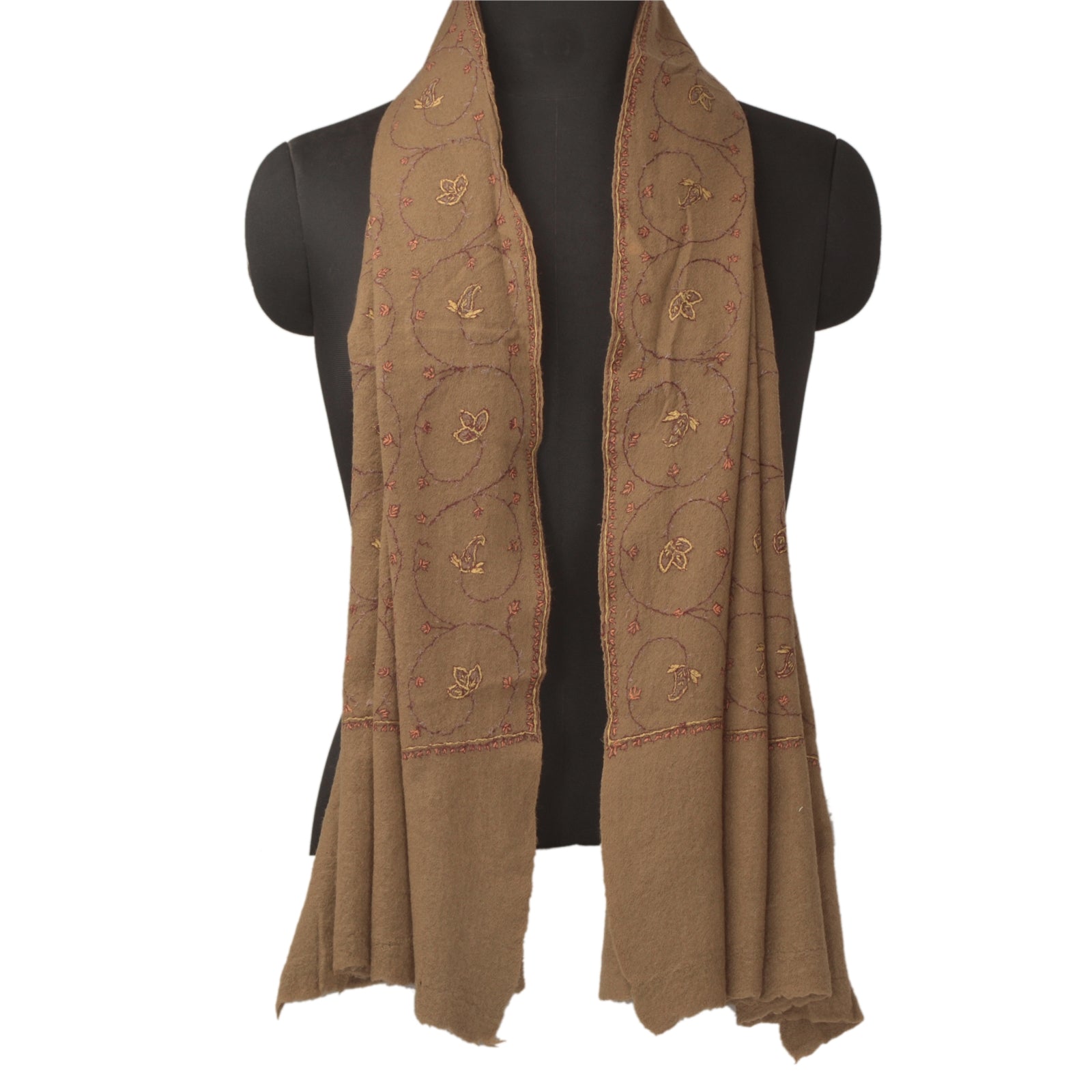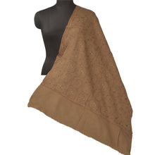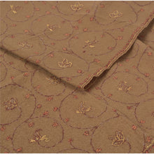 Sanskriti Vintage Brown Woolen Shawl Hand Embroidered Suzani Work Stole Scarf