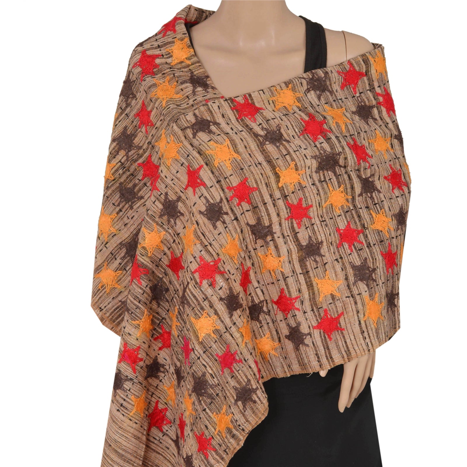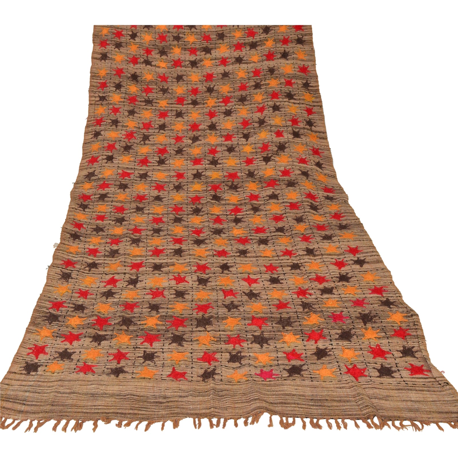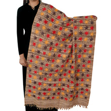 We are offering you a vintage brown woolen stole which adorns handloom woven design. The shawl or stole features floral and star like design which is embellished with multicolor threads work. It also has brown fringes. This cozy, warm and fuzzy stole which will keep you warm courtesy to its mellow woolen Sustainable Fabric. A truly gorgeous piece which will also make an admirable gift.