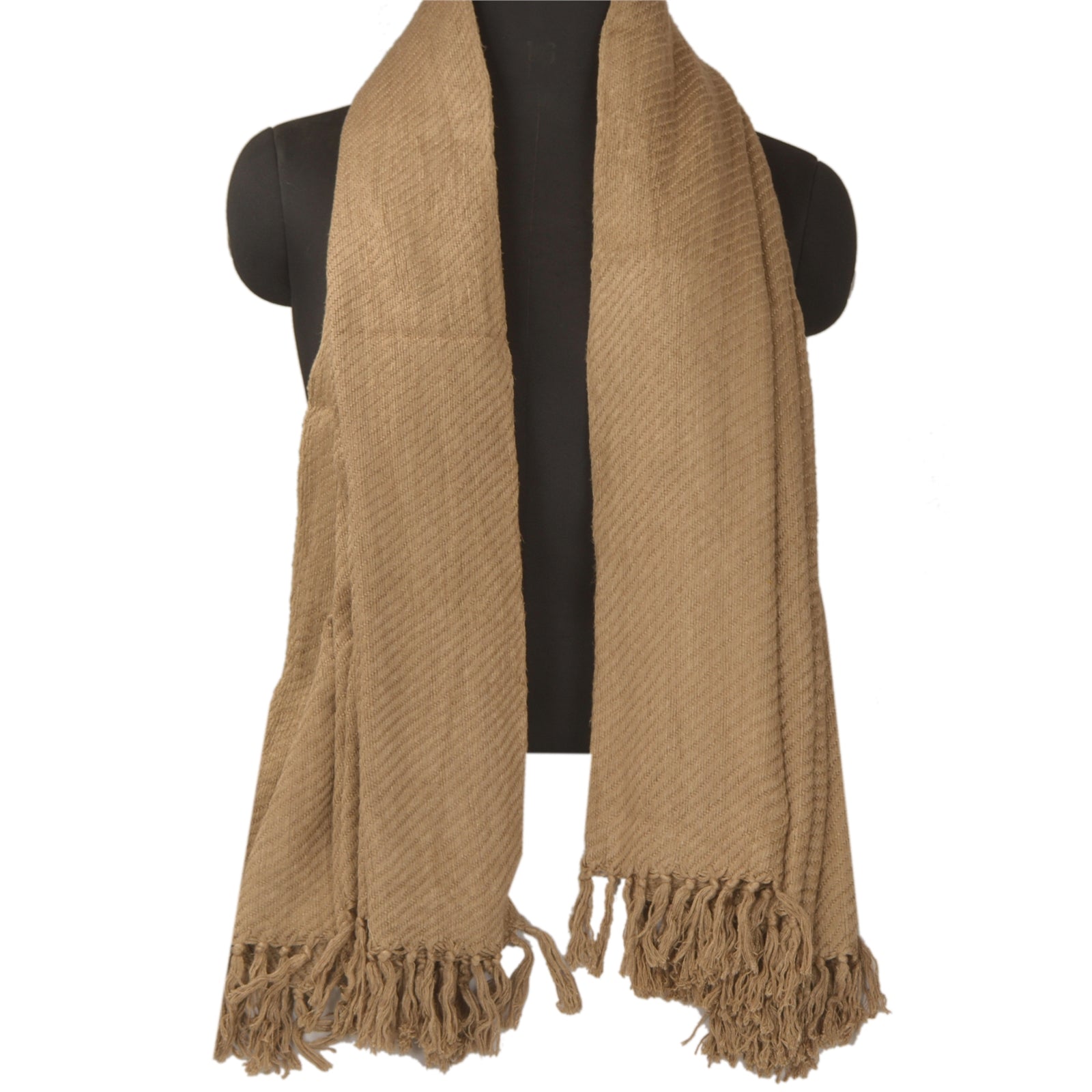 We are offering you a vintage brown colored woolen stole which adorns with woven work. The shawl or stole features brown woven work. It has fringes. This cozy, warm and fuzzy stole is soft against skin due to the mellow woolen Sustainable Fabric. A truly gorgeous piece which will also make an admirable gift.