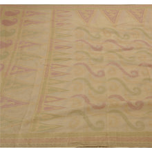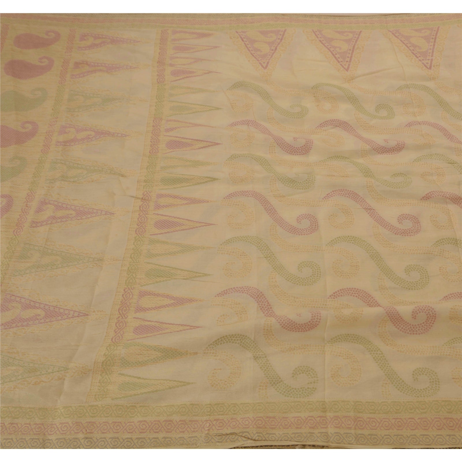 Sanskriti Vintage Cream Saree 100% Pure Silk Woven Craft Sustainable Fabric Indian Sari