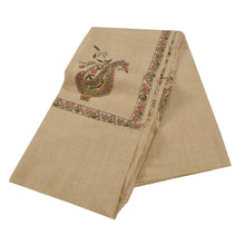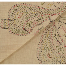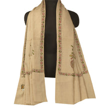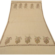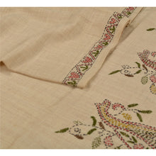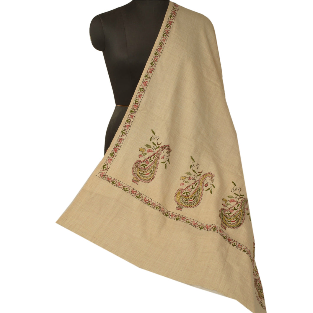 Sanskriti Vintage Cream Woolen Shawl Hand Embroidered Kantha Work Stole Scarf