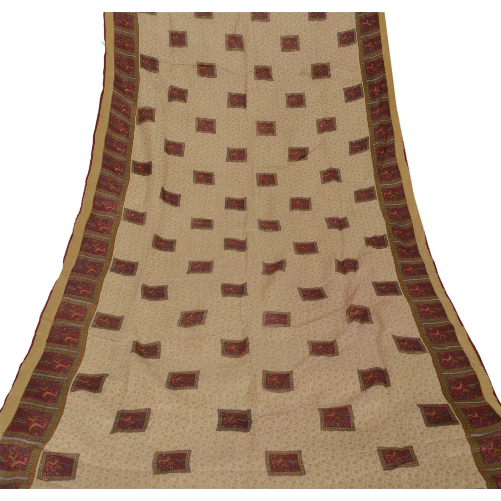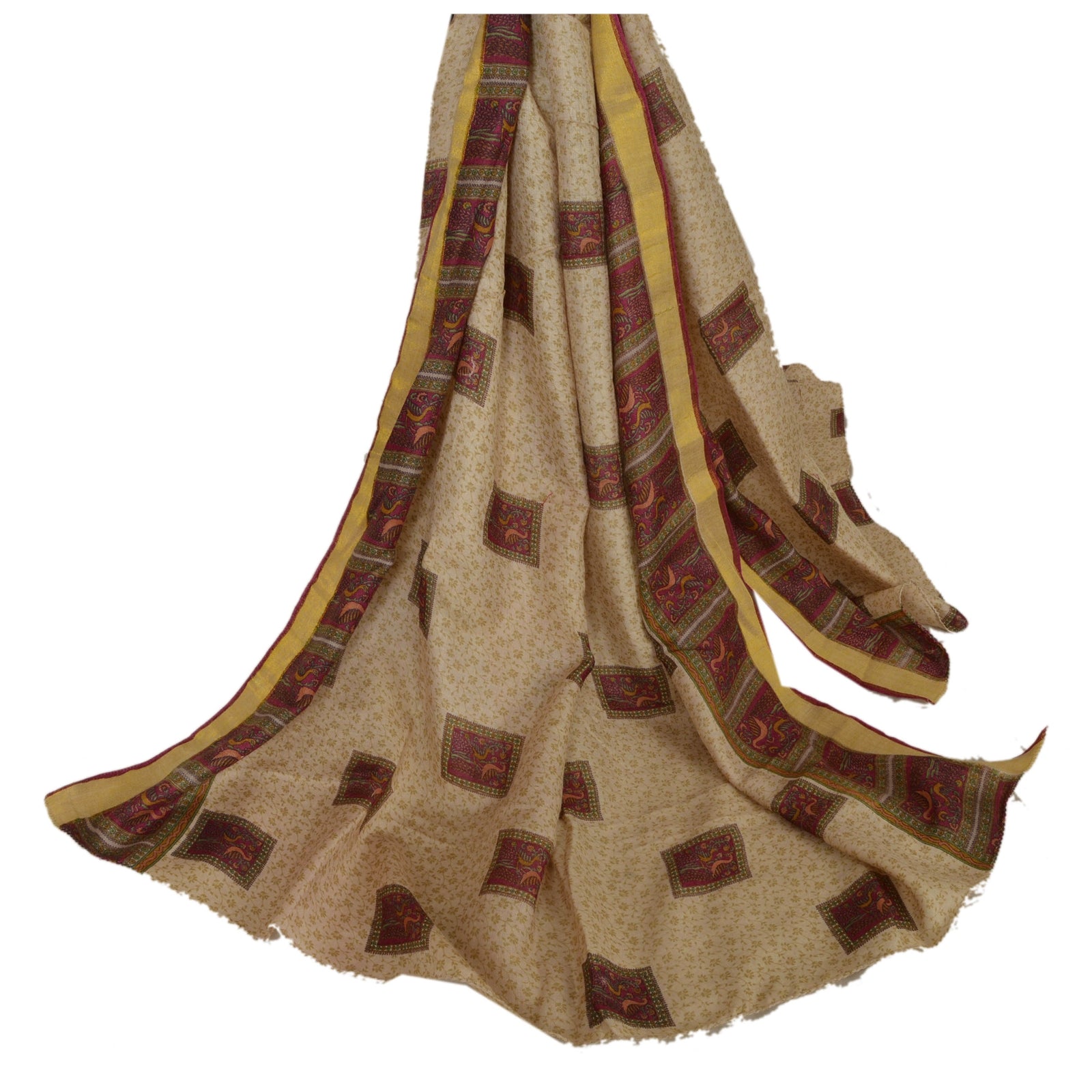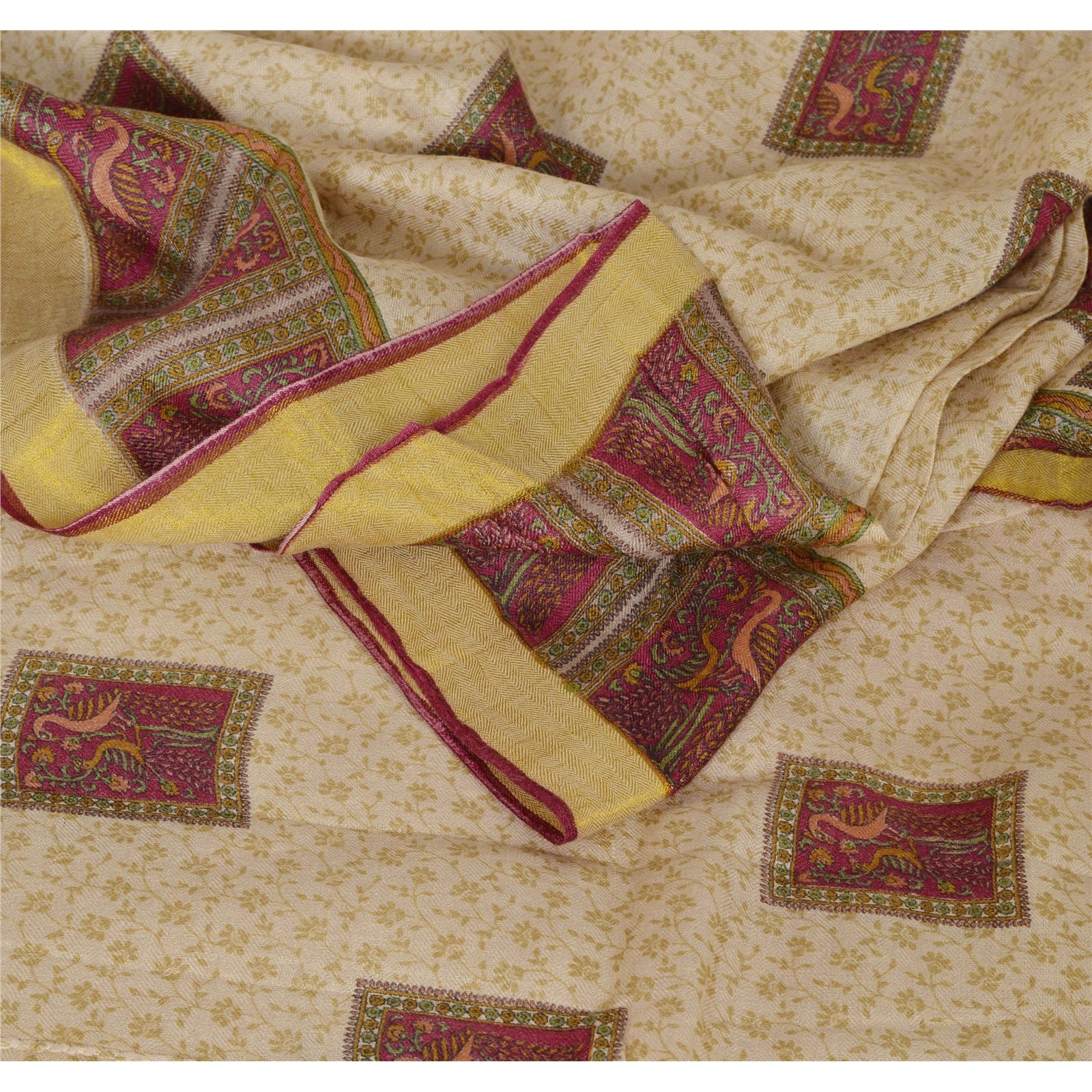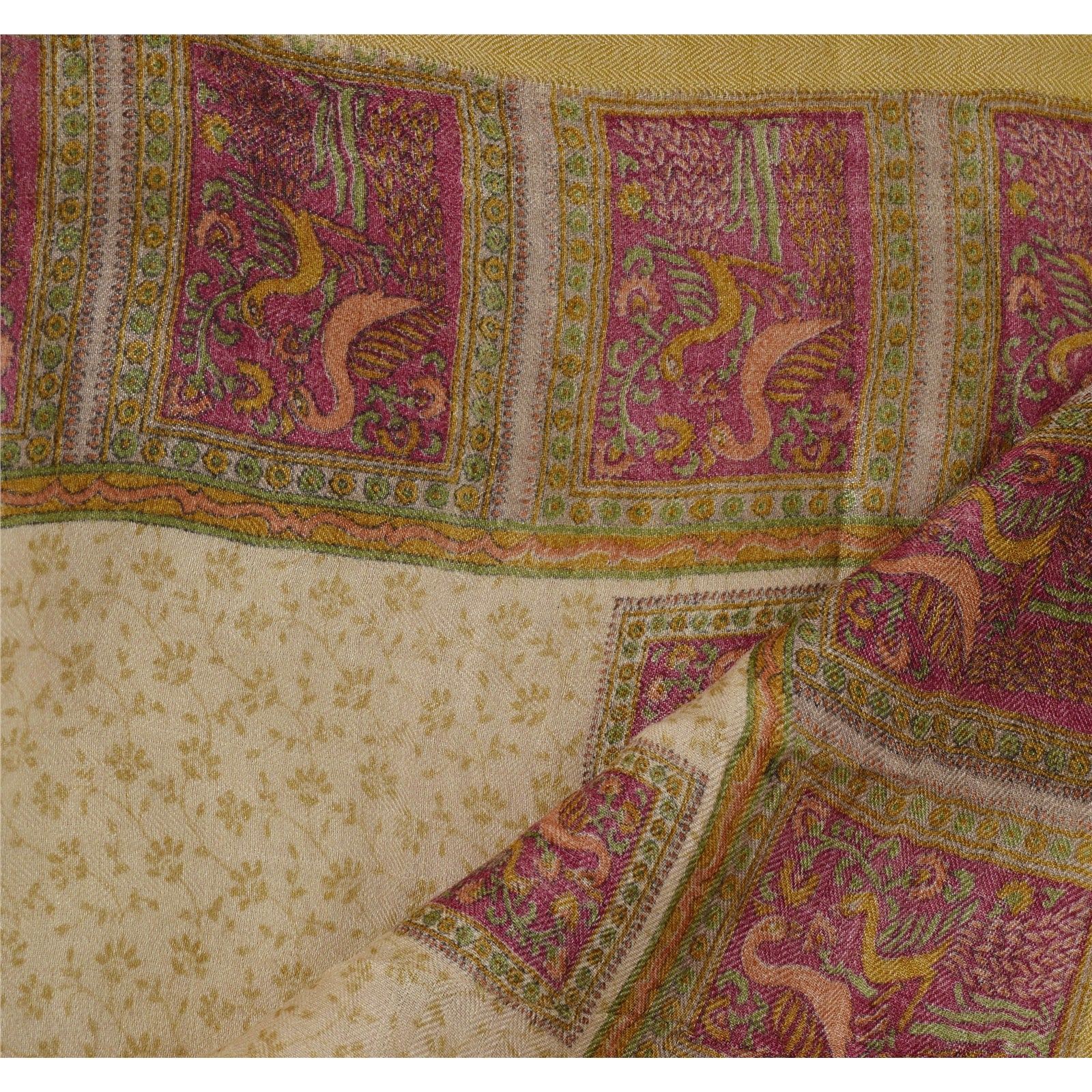 sanskriti Vintage Dupatta Long Stole 100% Pure Woolen Cream Printed Wrap Scarves