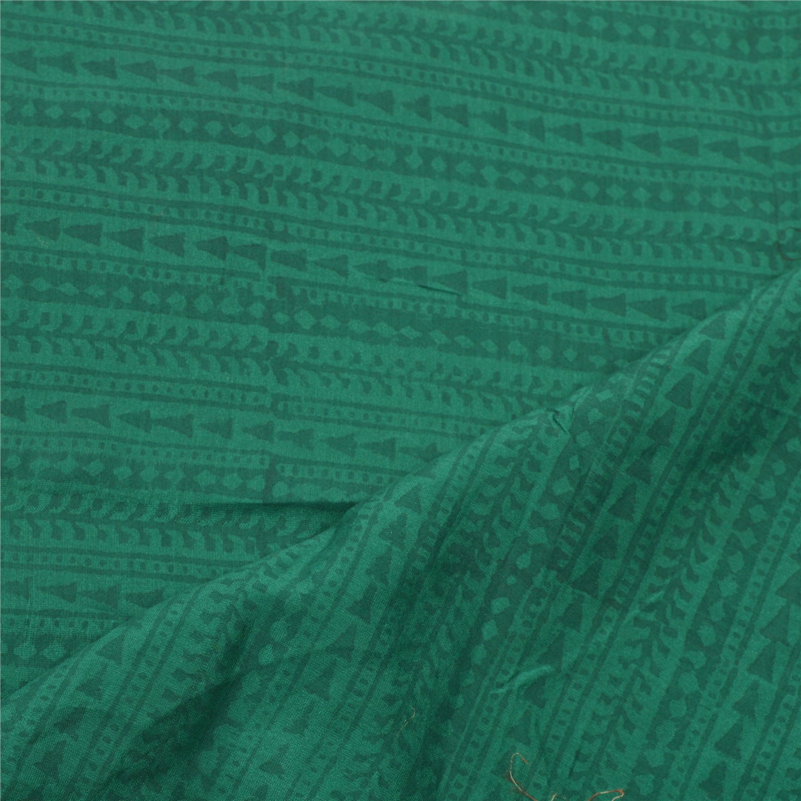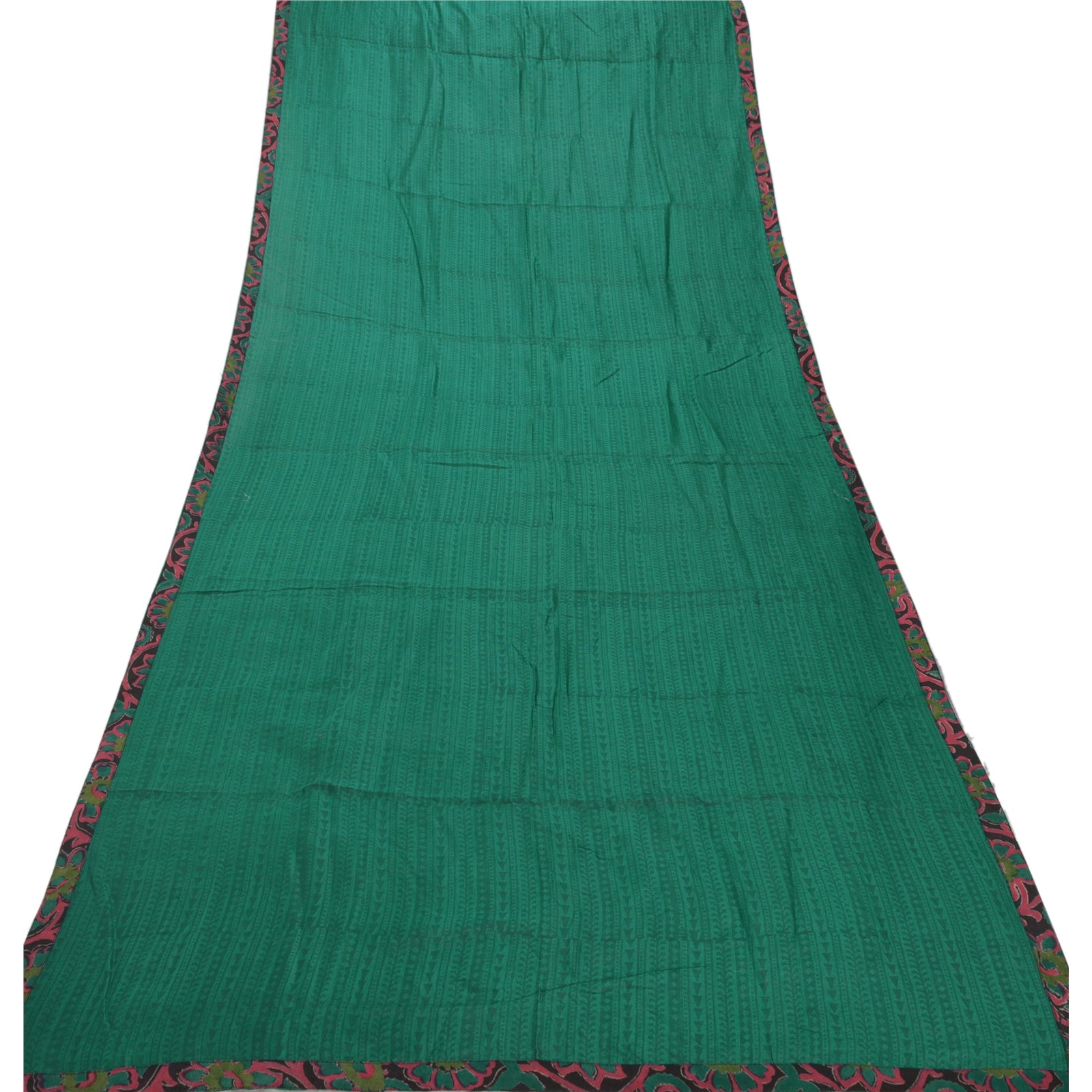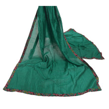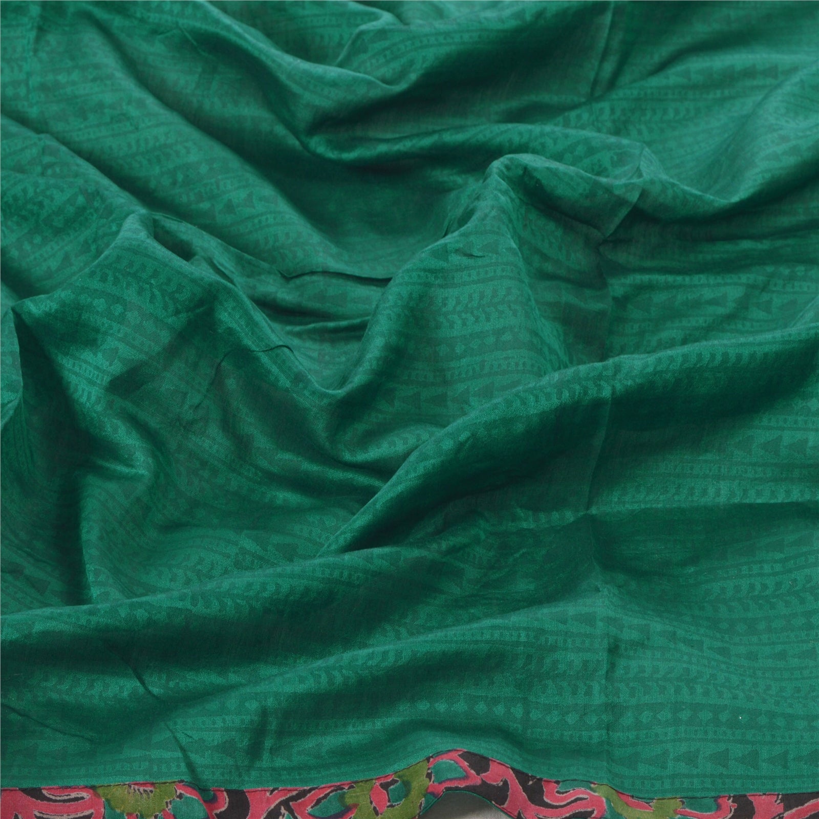 Sanskriti Vintage Dupatta Long Stole Blend Silk Green Printed Wrap Scarves Hijab