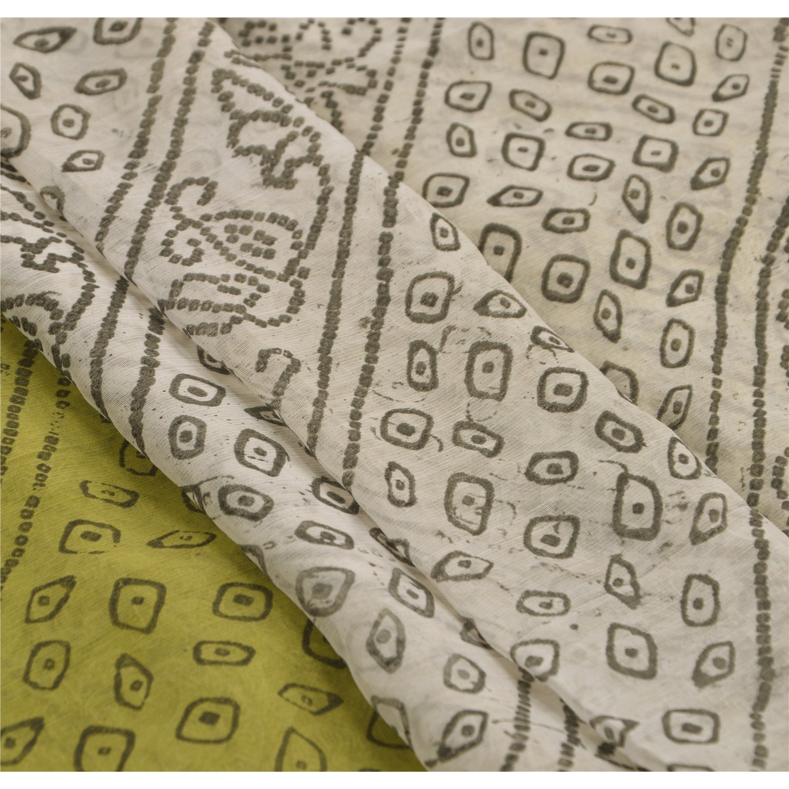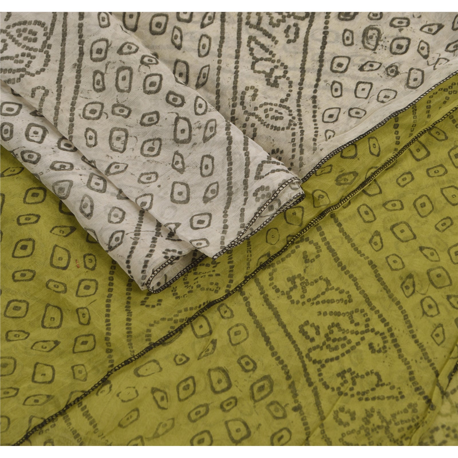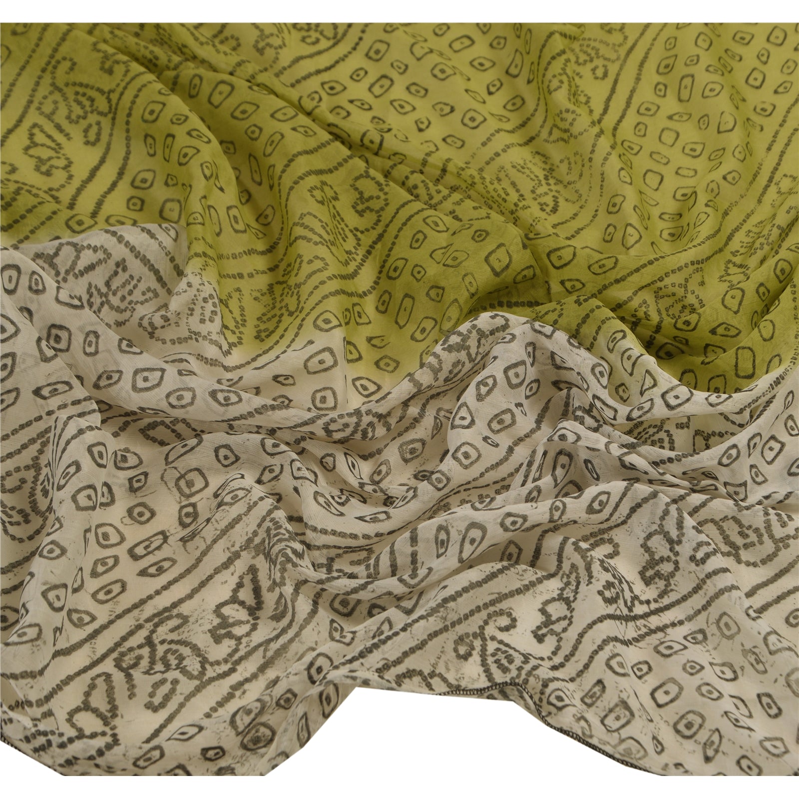 Sanskriti Vintage Dupatta Long Stole Chiffon Silk Green Soft Printed Scarves