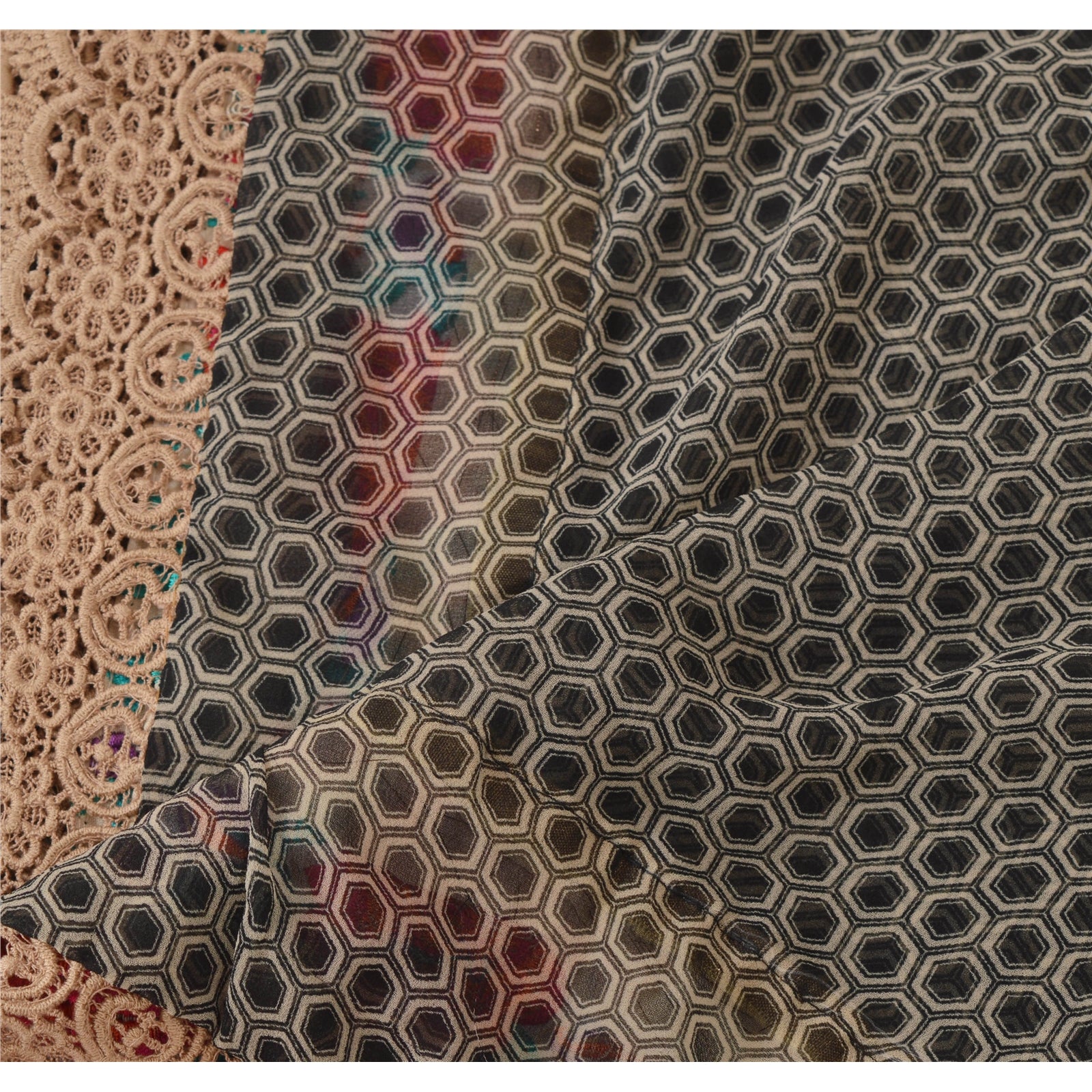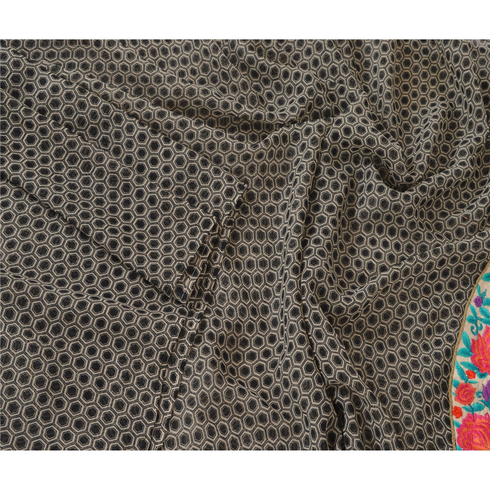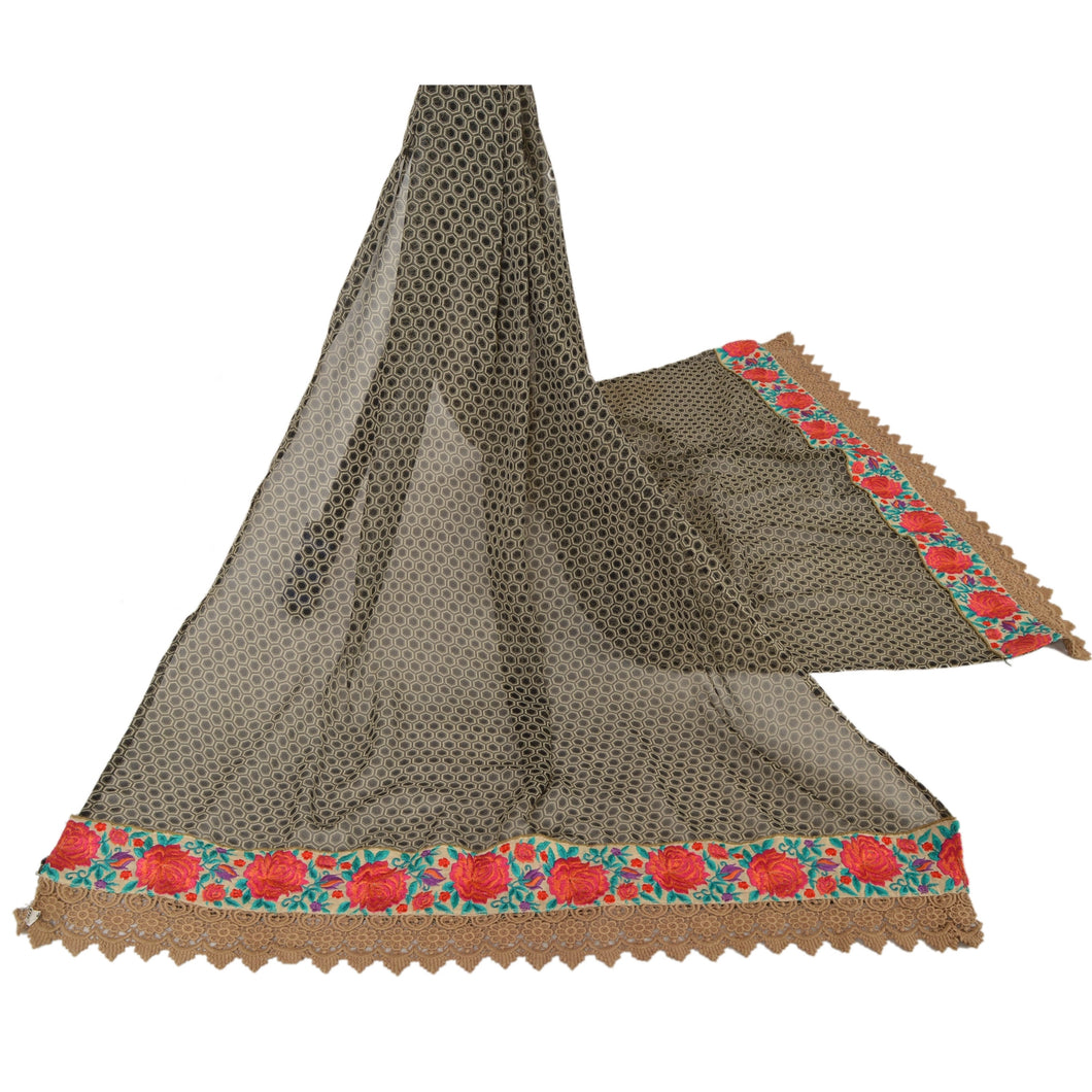 Sanskriti Vintage Dupatta Long Stole Georgette Black Shawl Embroidered Scarves