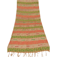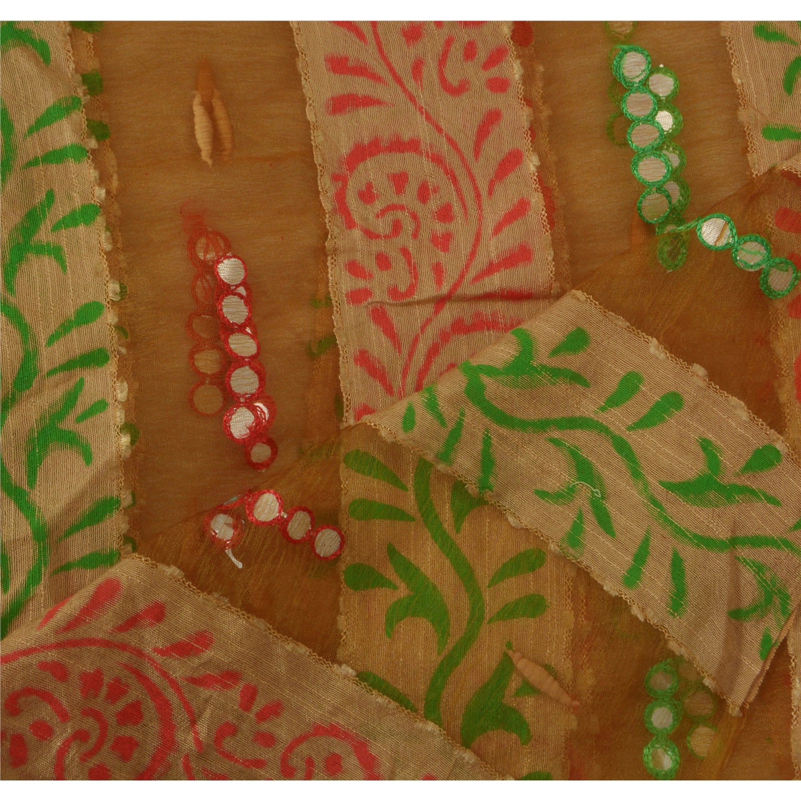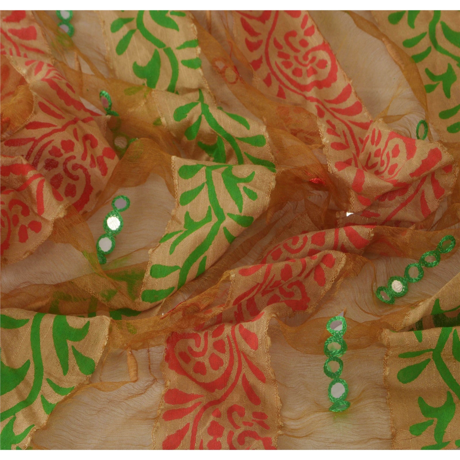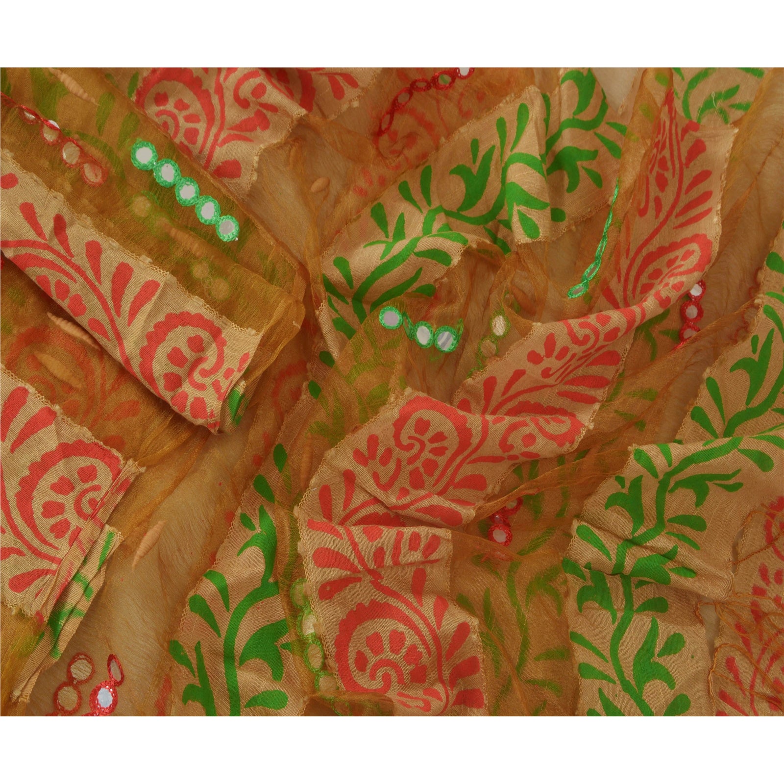 Sanskriti Vintage Dupatta Long Stole Organza Brown Shawl Embroidered Wrap Hijab