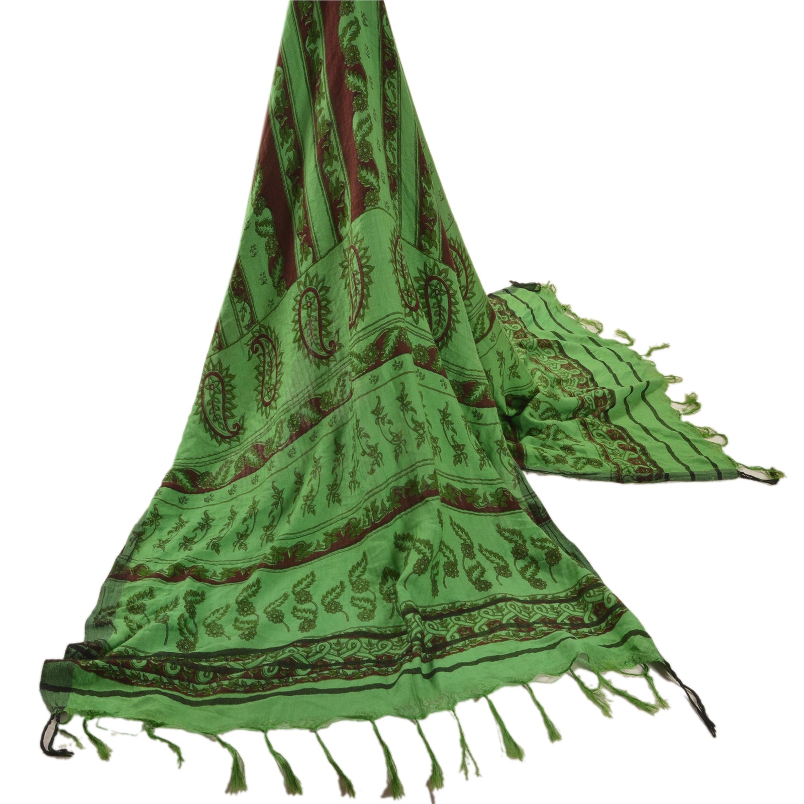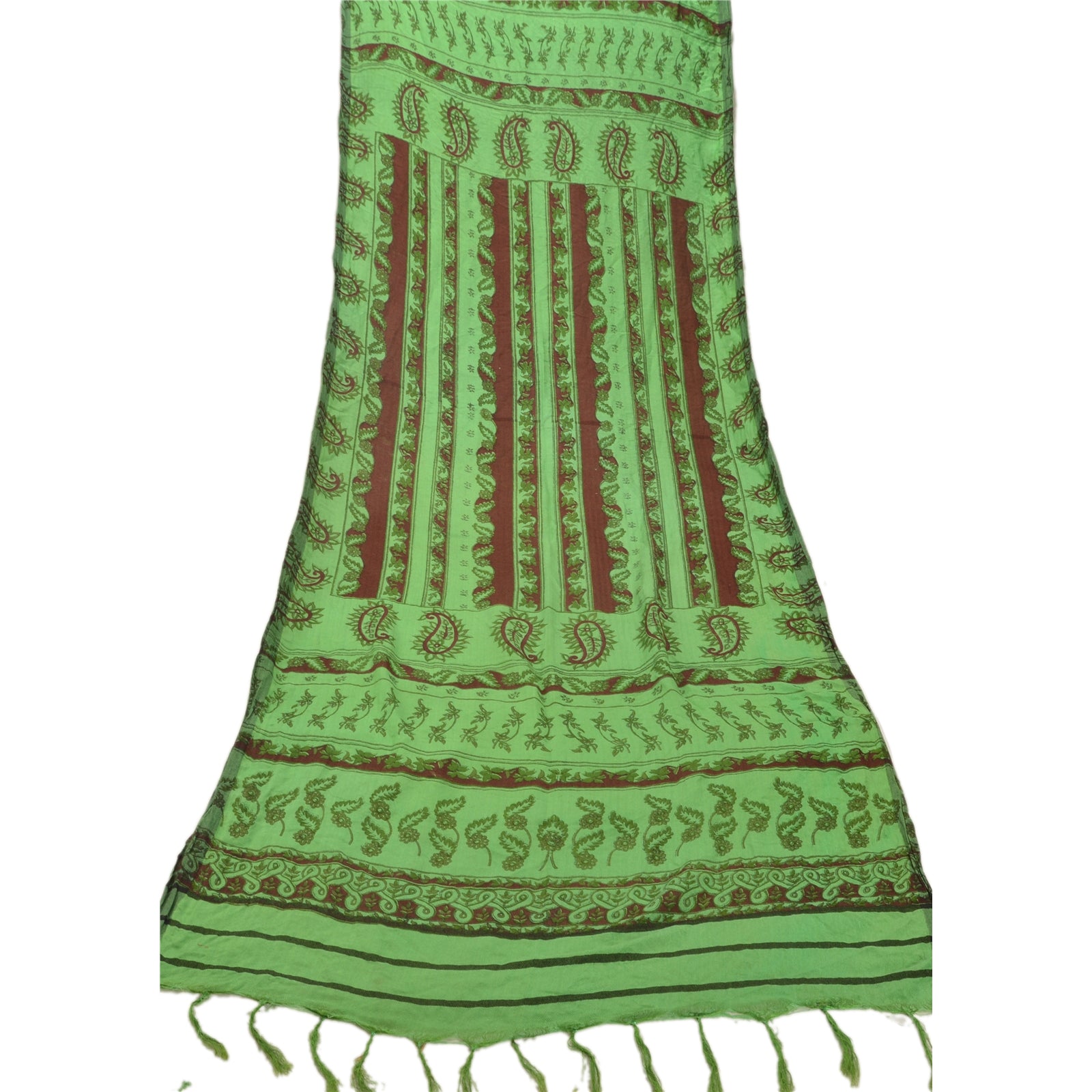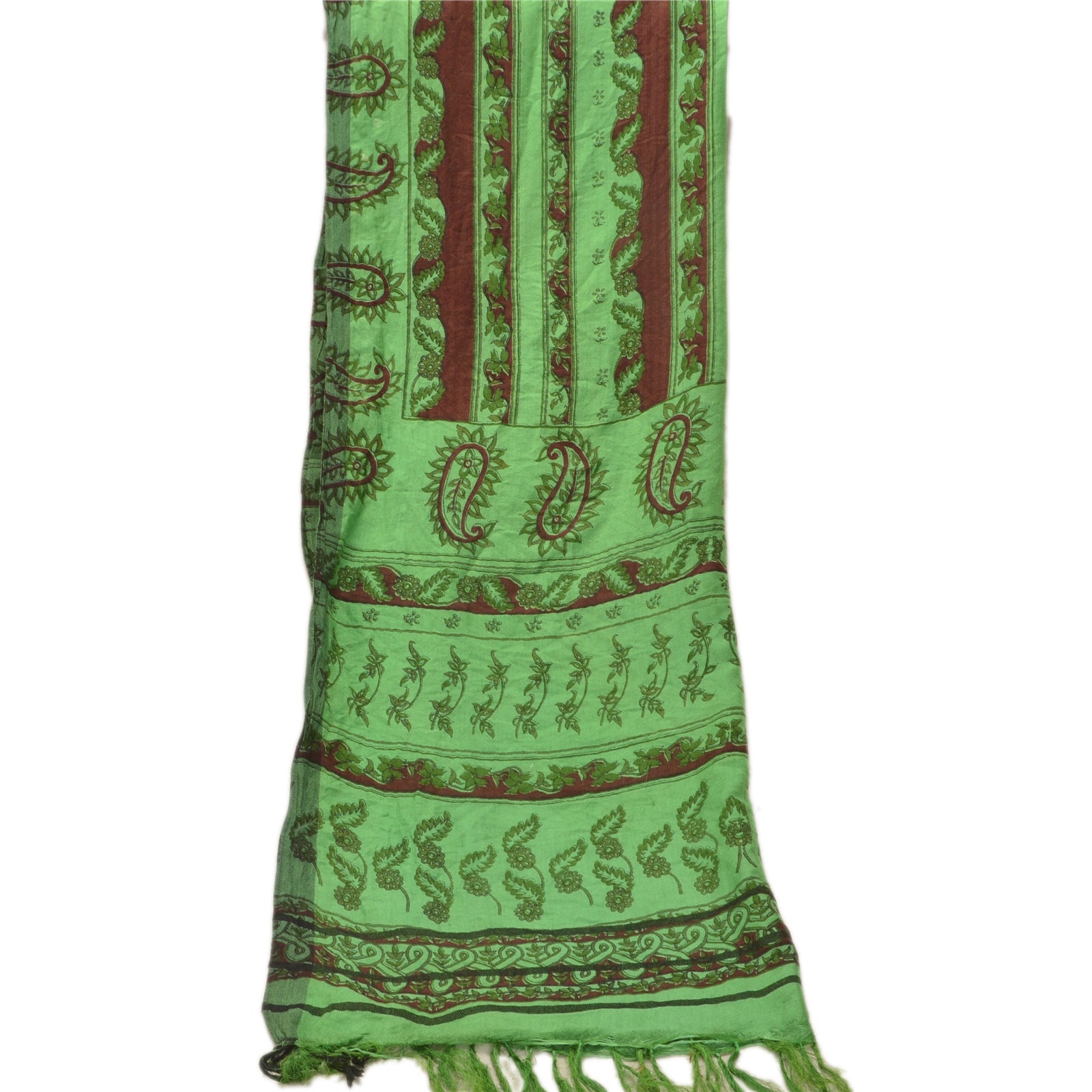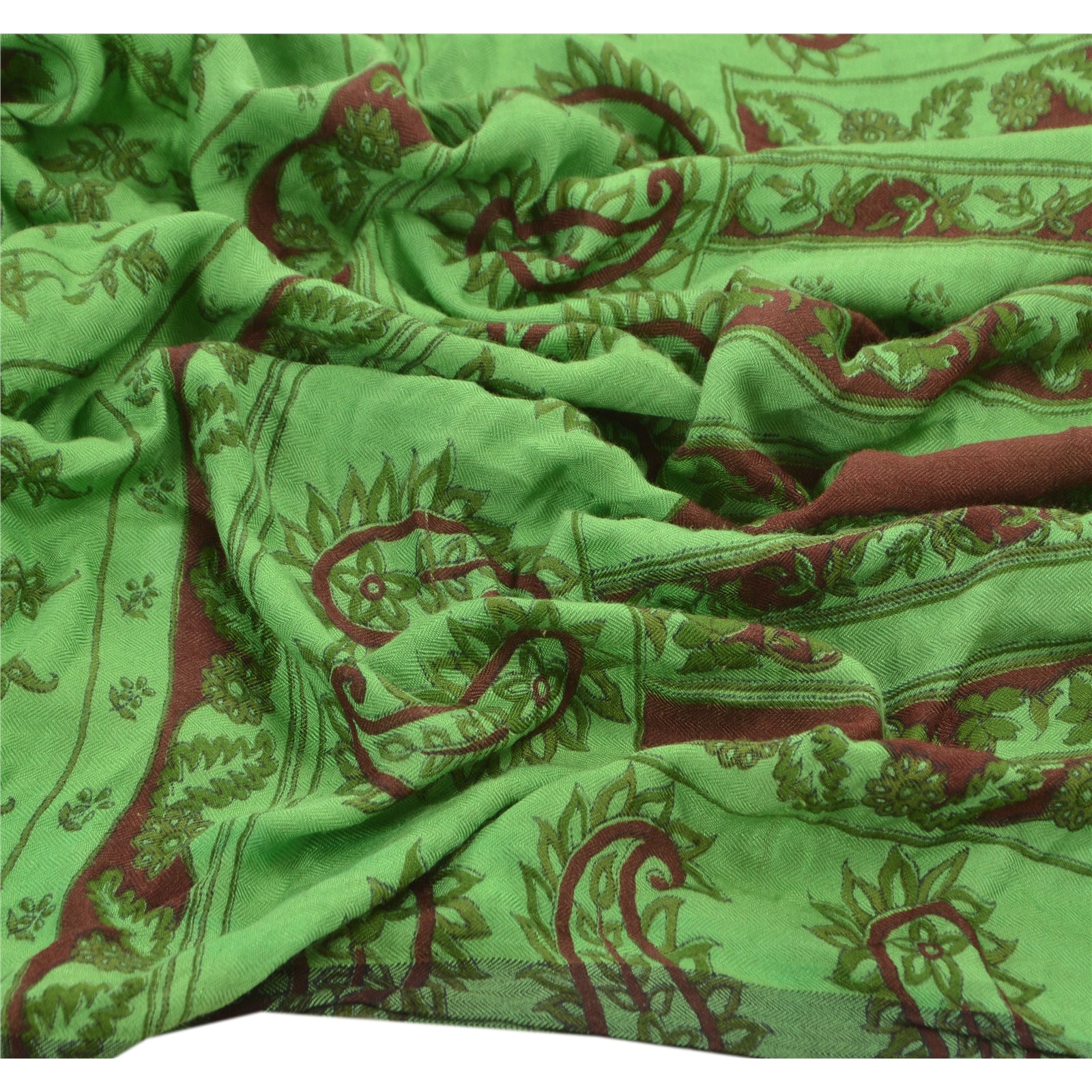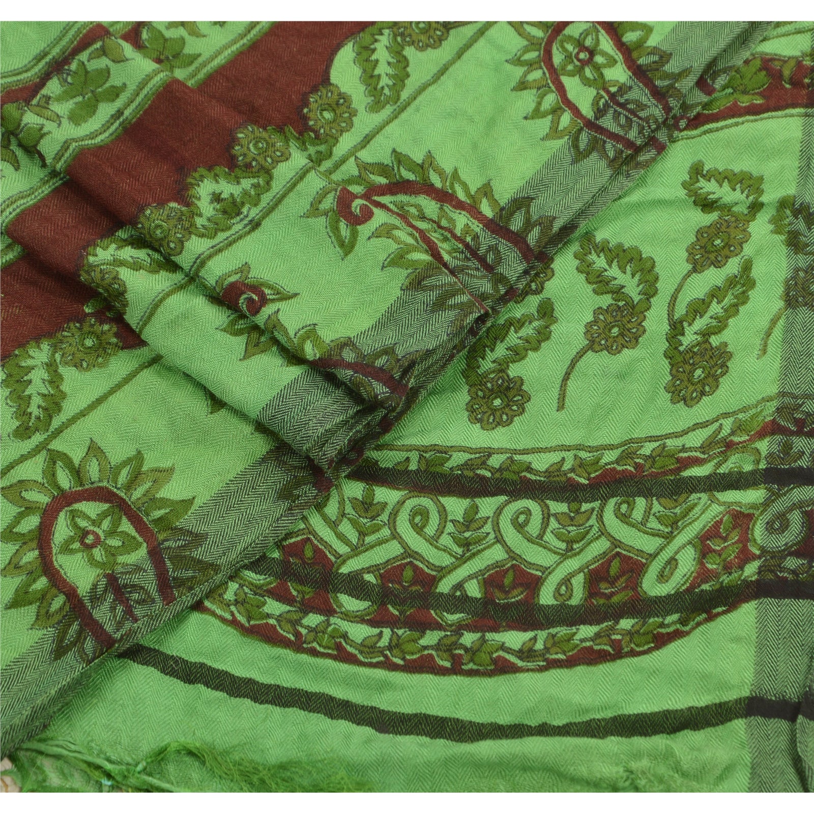 Sanskriti Vintage Dupatta Long Stole Printed Woolen Shawl Green Wrap Scarves