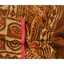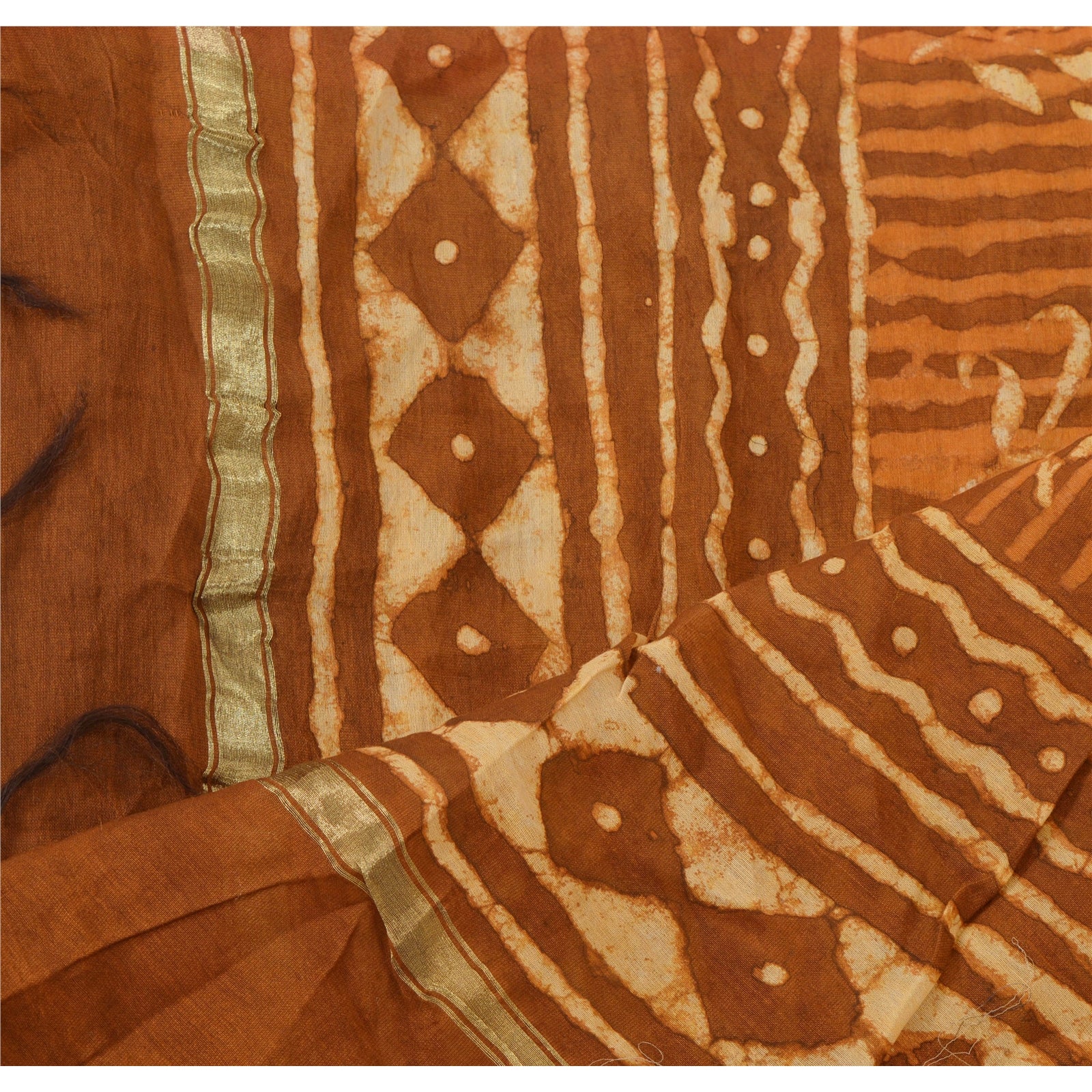 Sanskriti Vintage Dupatta Long Stole Pure Chanderi Silk Brown Shawl Batik Work