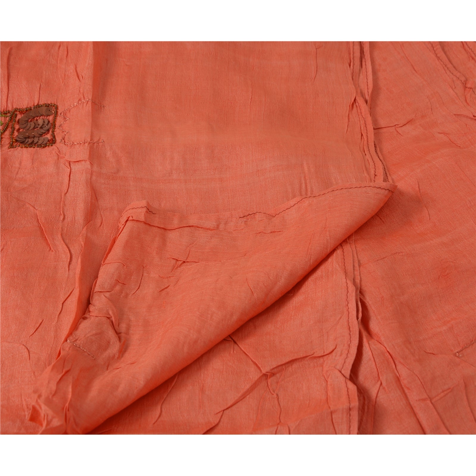 Sanskriti Vintage Dupatta Long Stole Pure Silk Peach Shawl Hand Beaded Scarves