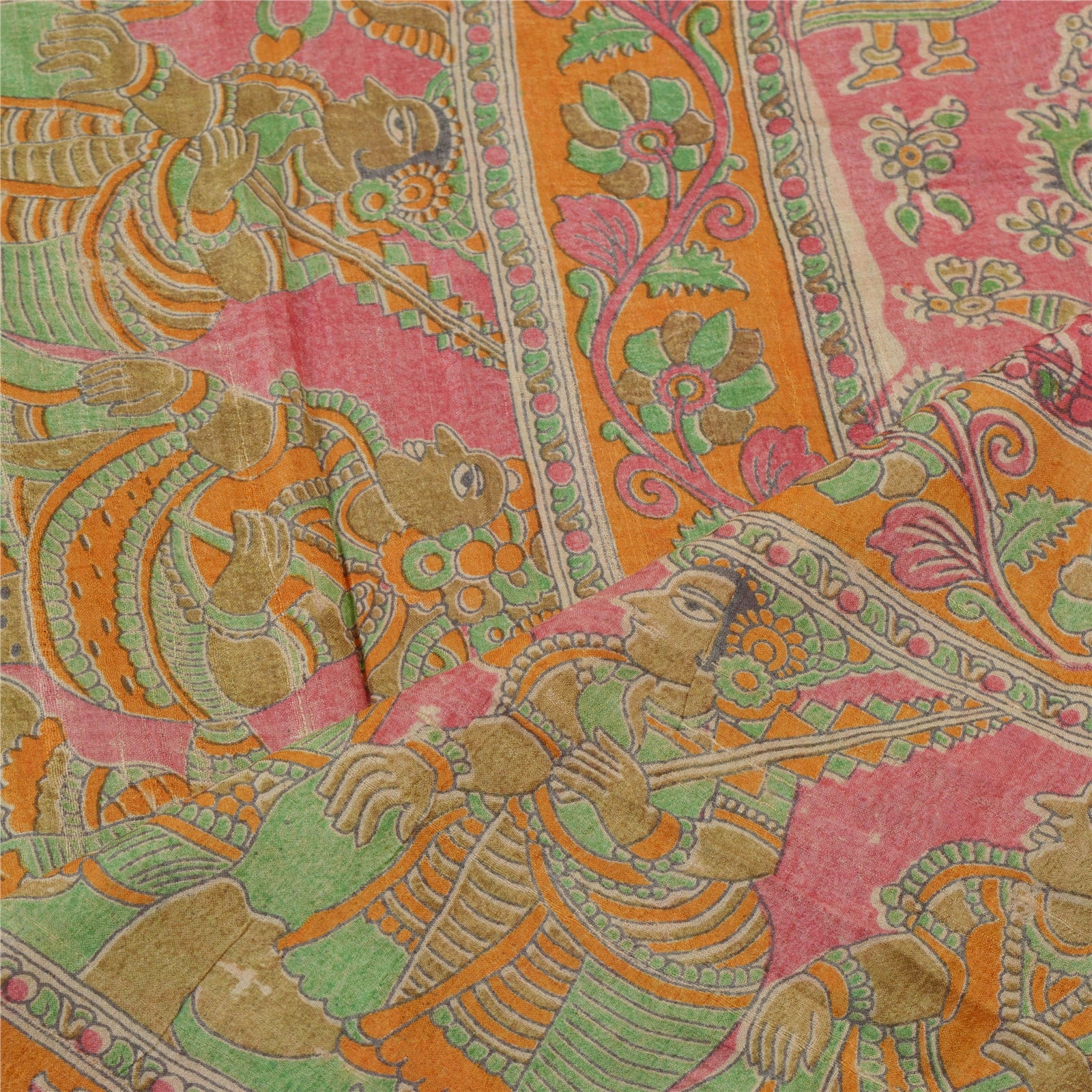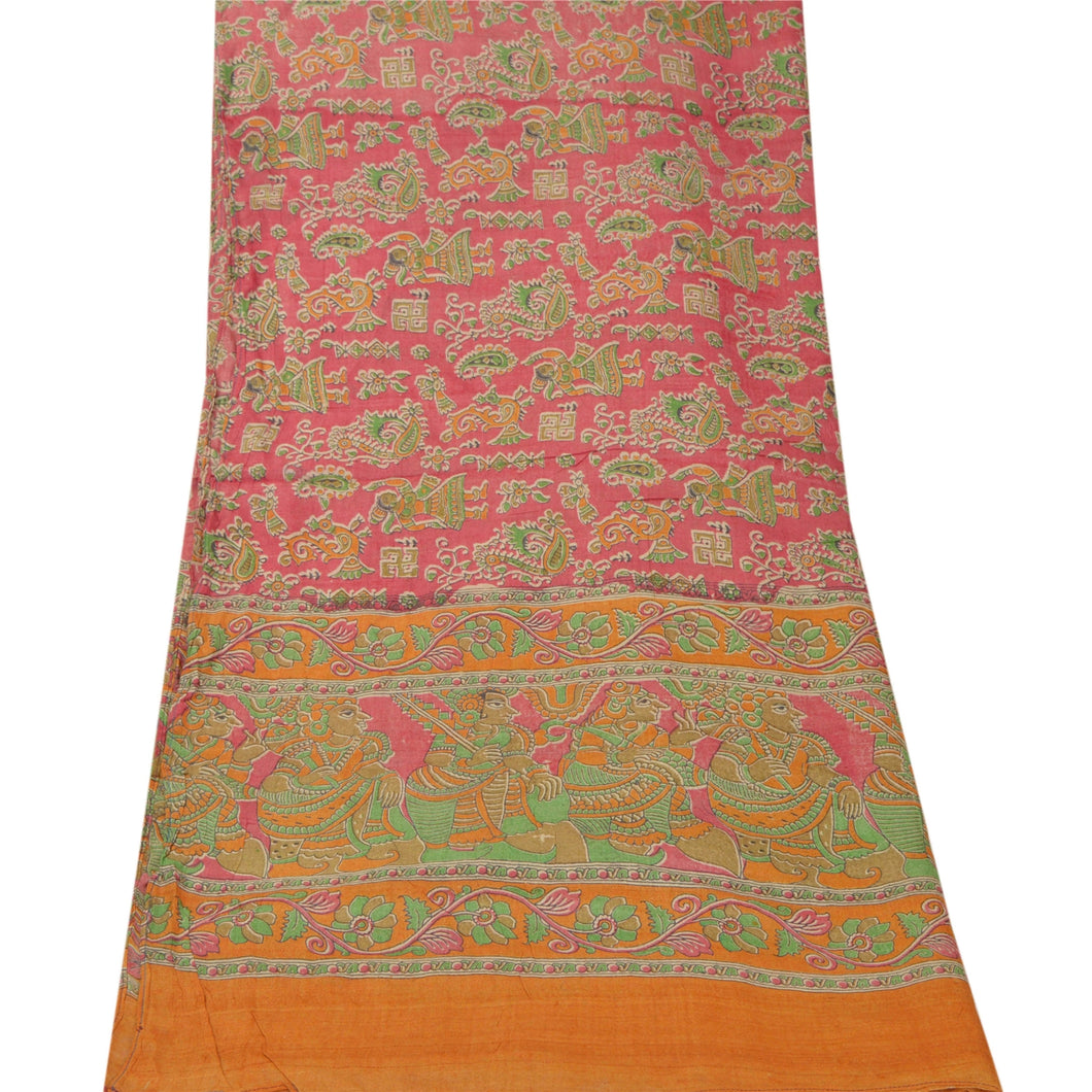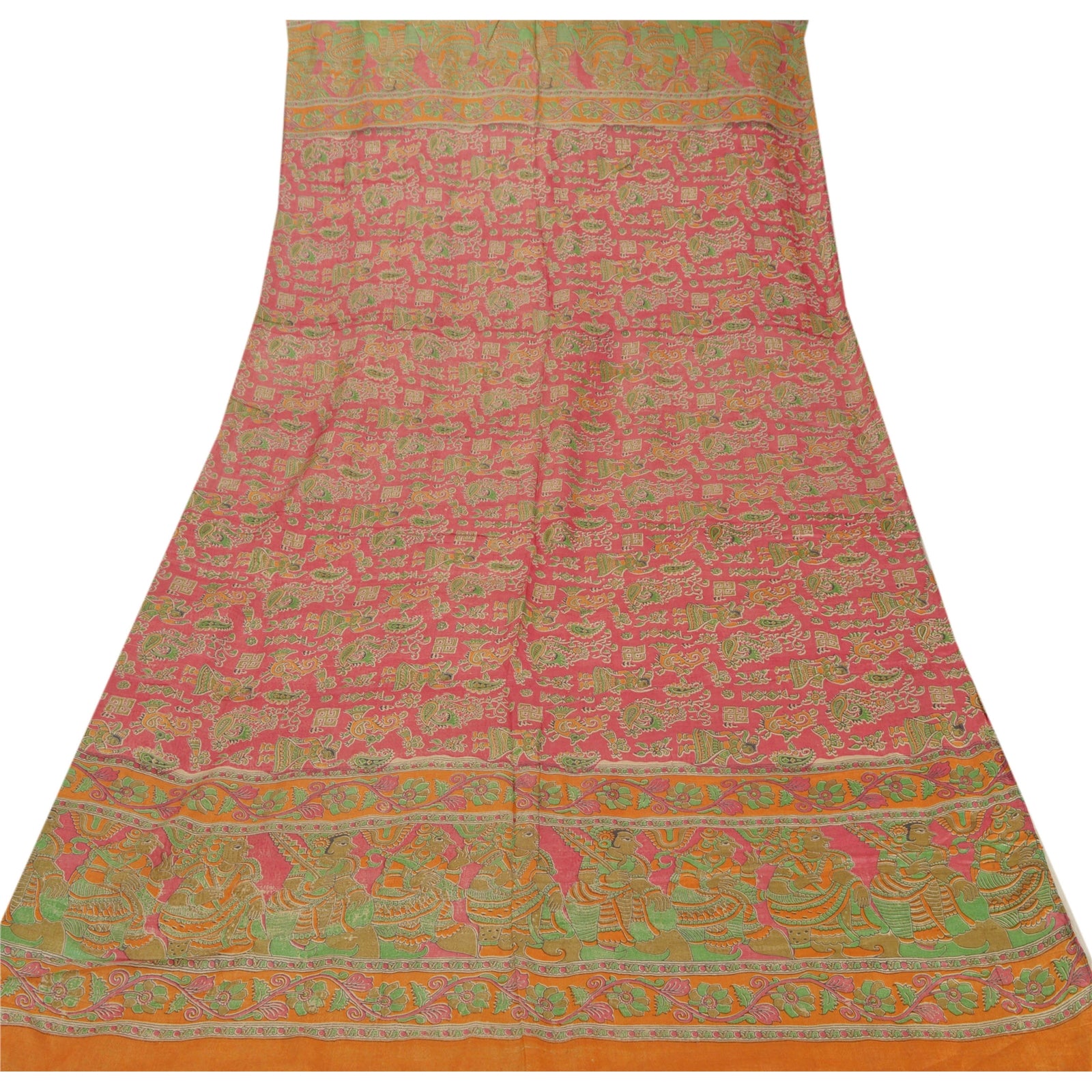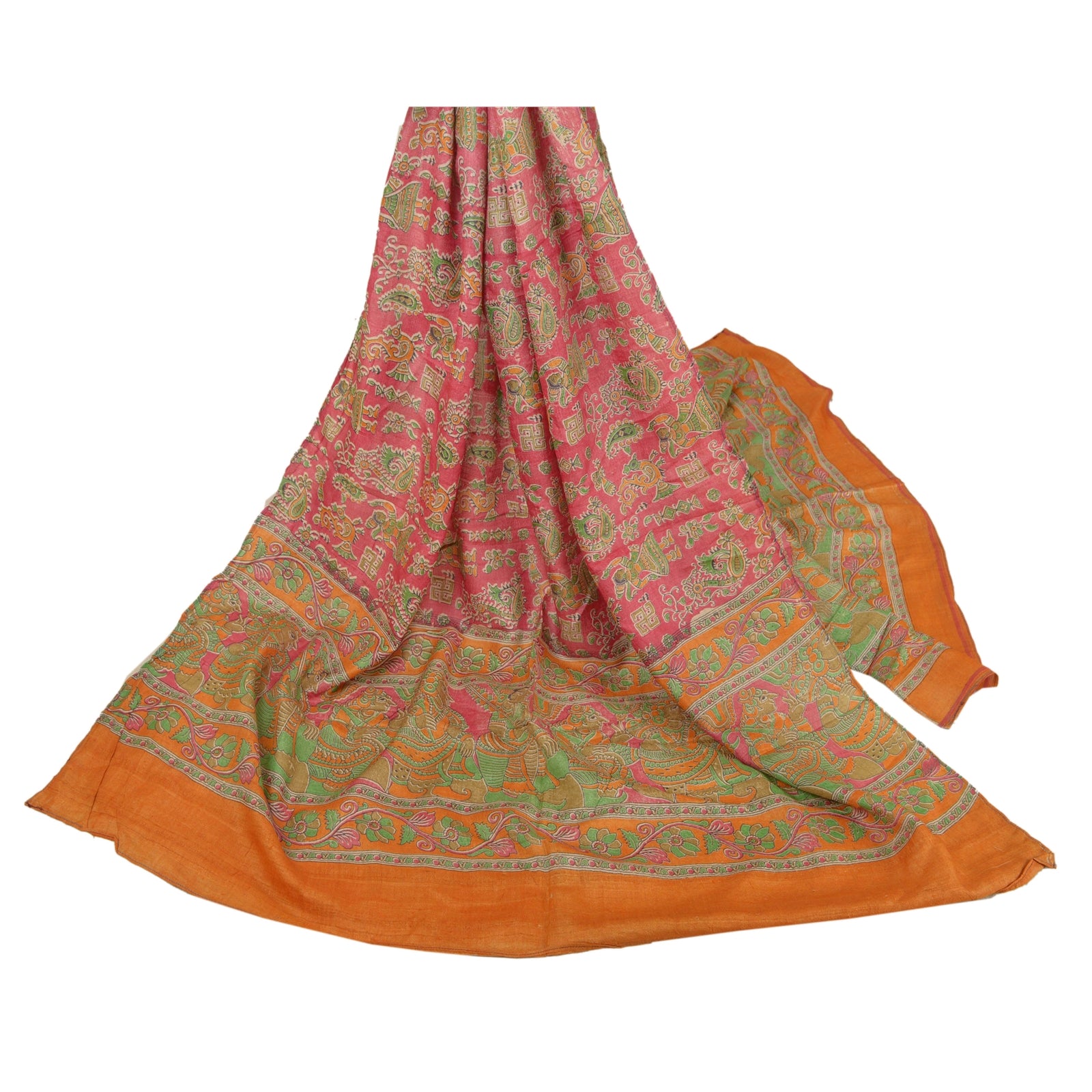 Sanskriti Vintage Dupatta Long Stole Pure Silk Pink Pattachitra Scarves Shawl