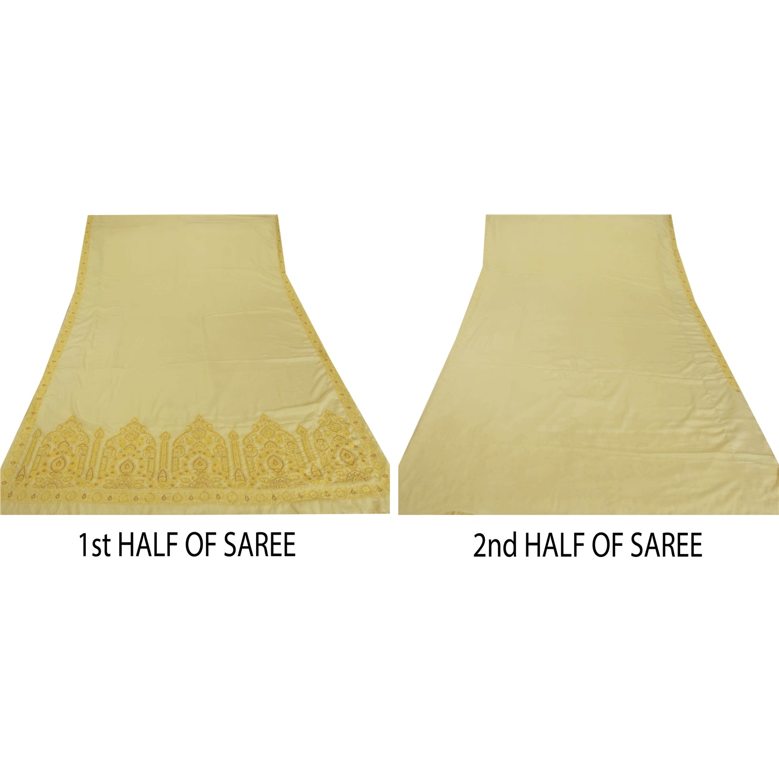 Sanskriti Vintage Green Saree Art Silk Hand Embroidered Craft Sustainable Fabric Ethnic Sari
