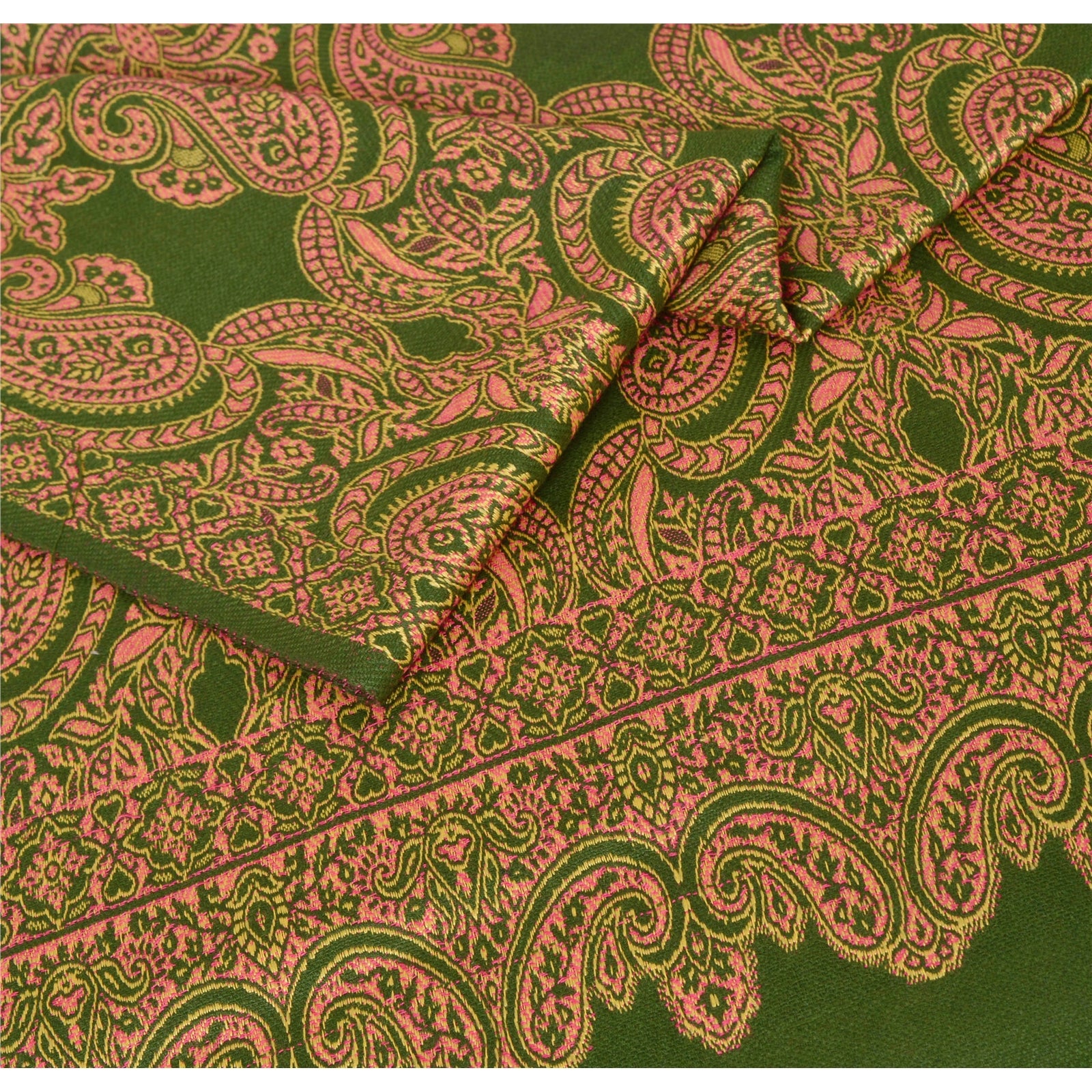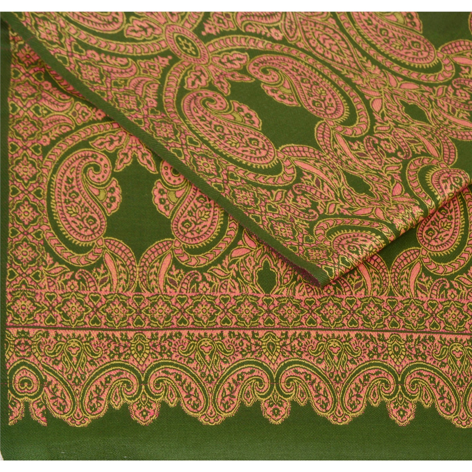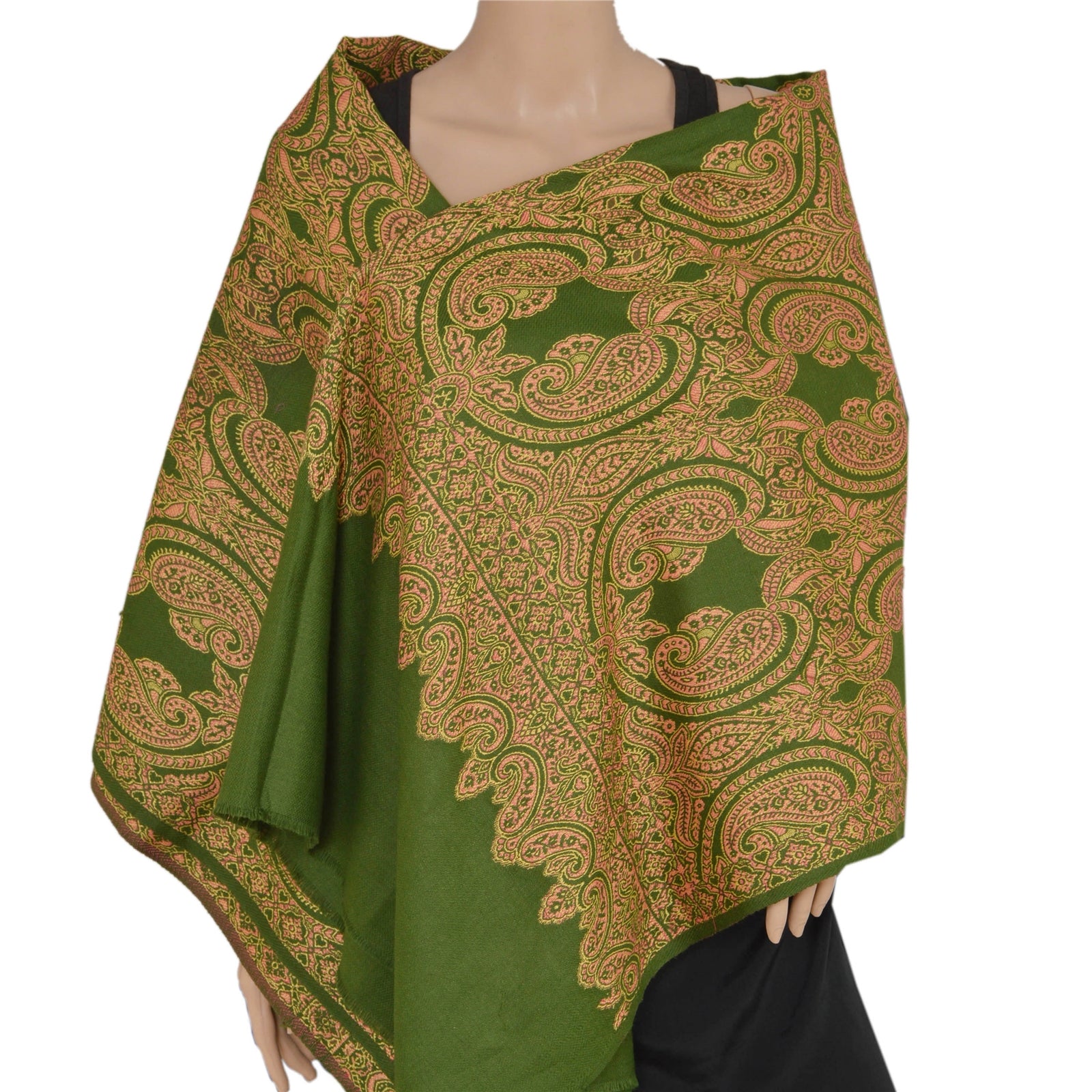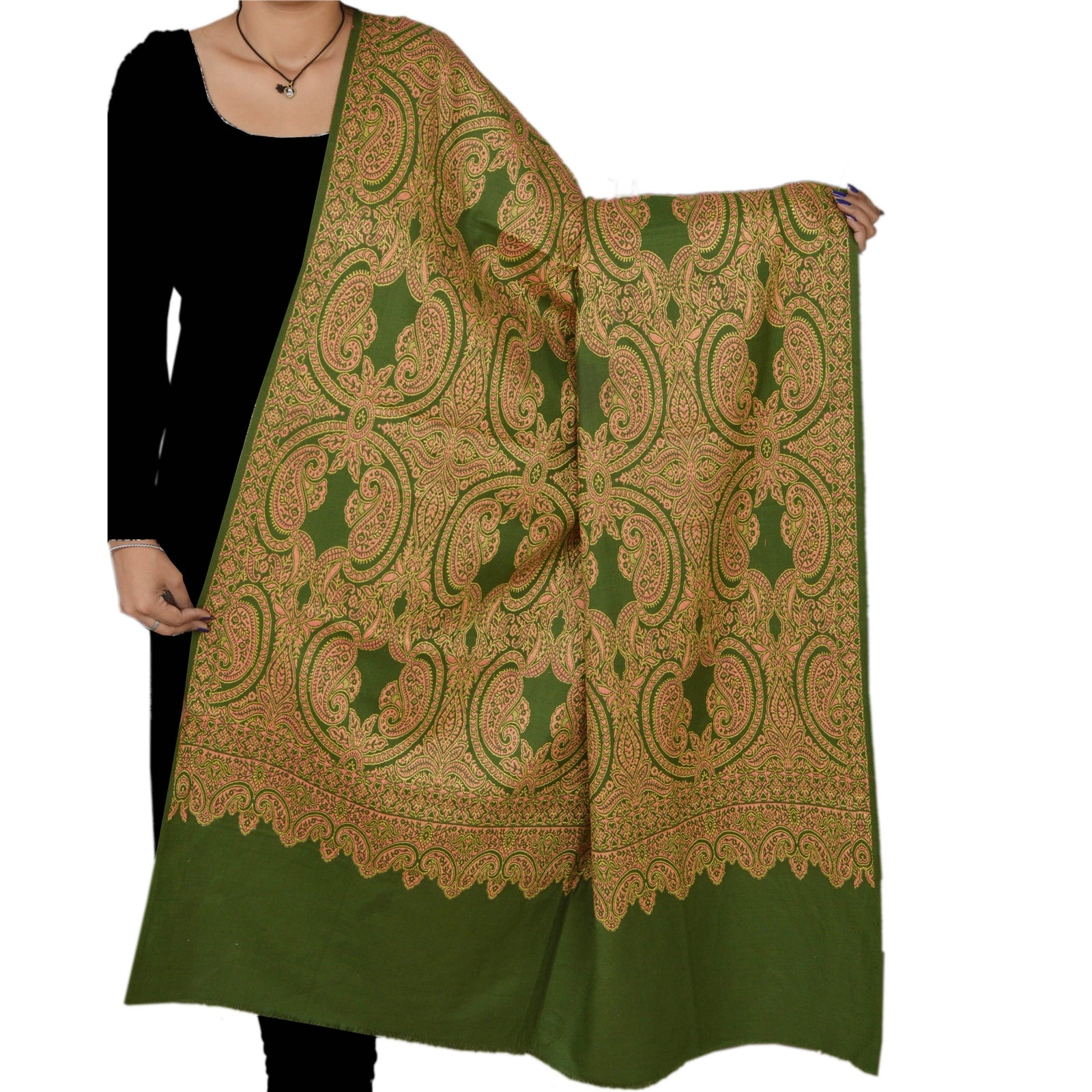 Sanskriti Vintage Green Woolen Shawl Hand Embroidered Woven Stole/Scarf/Hijab