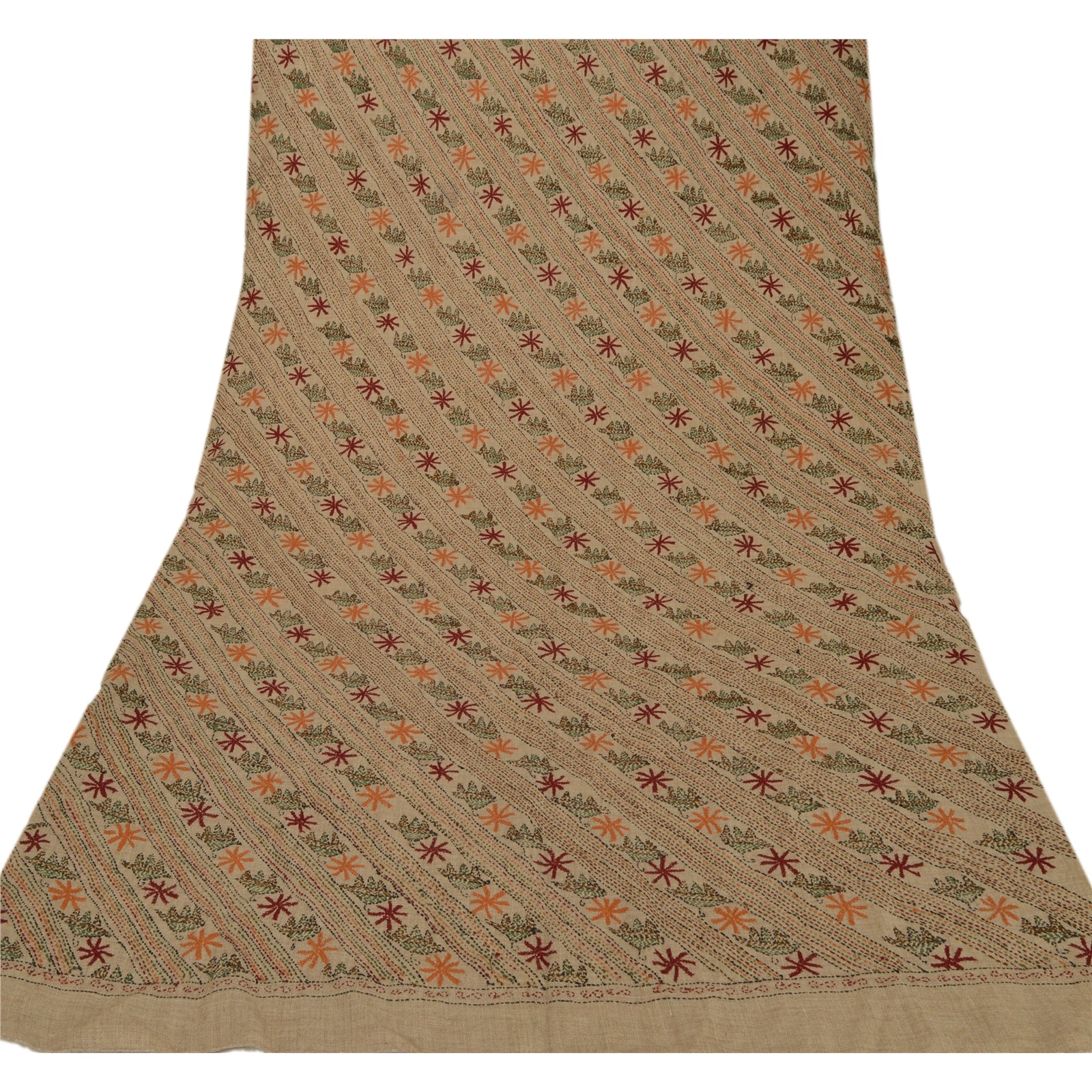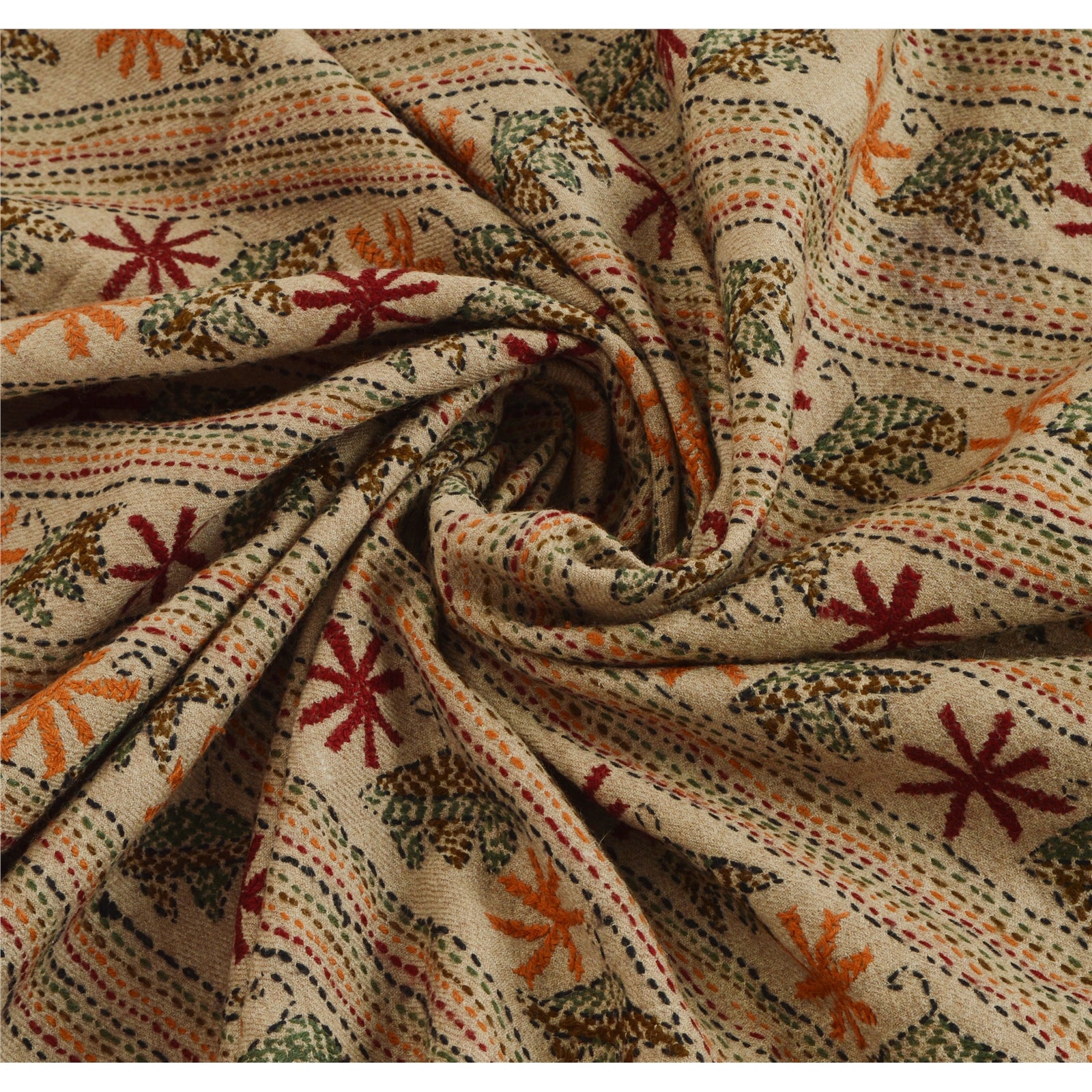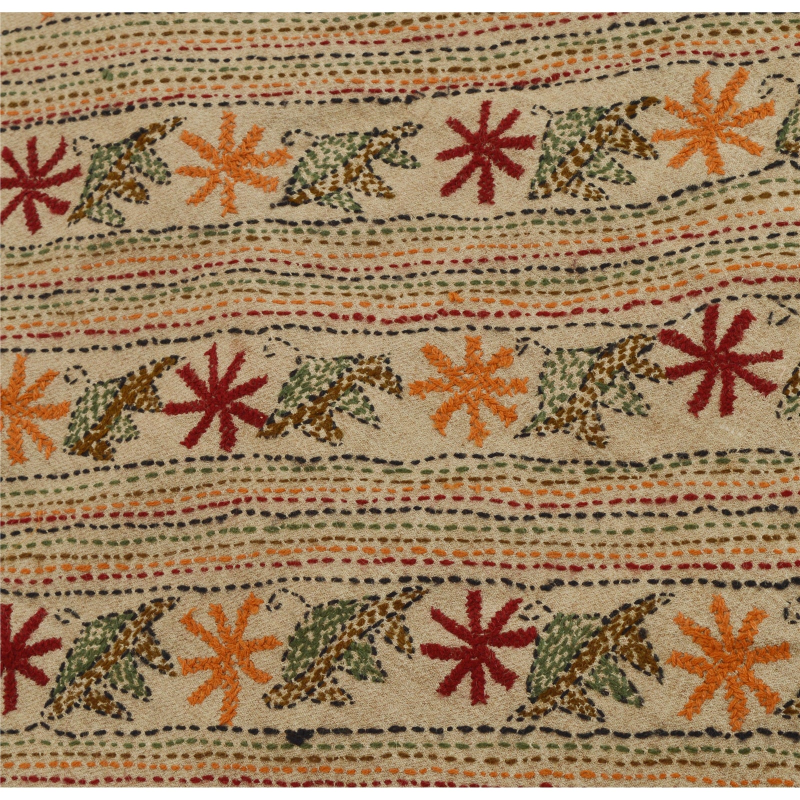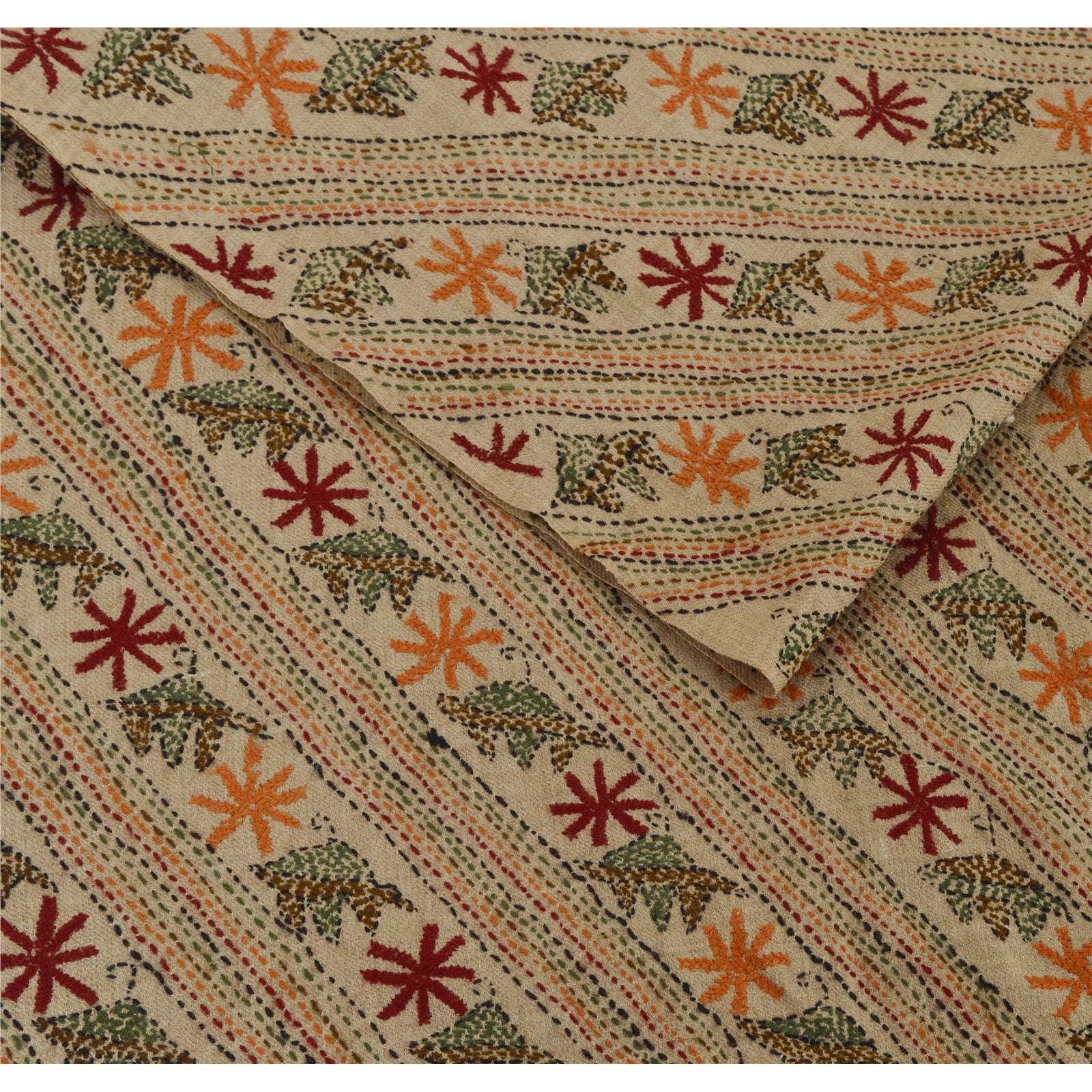 Fabulous hand embroidered woolen cream colored kantha shawl/scarf/stole. Cozy and gorgeously soft to touch, this shawl has a beautiful hand embroidered multi color floral design all over. Traditional kantha work is the highlight of this shawl. Wear this versatile piece as a scarf, stole or wrap.