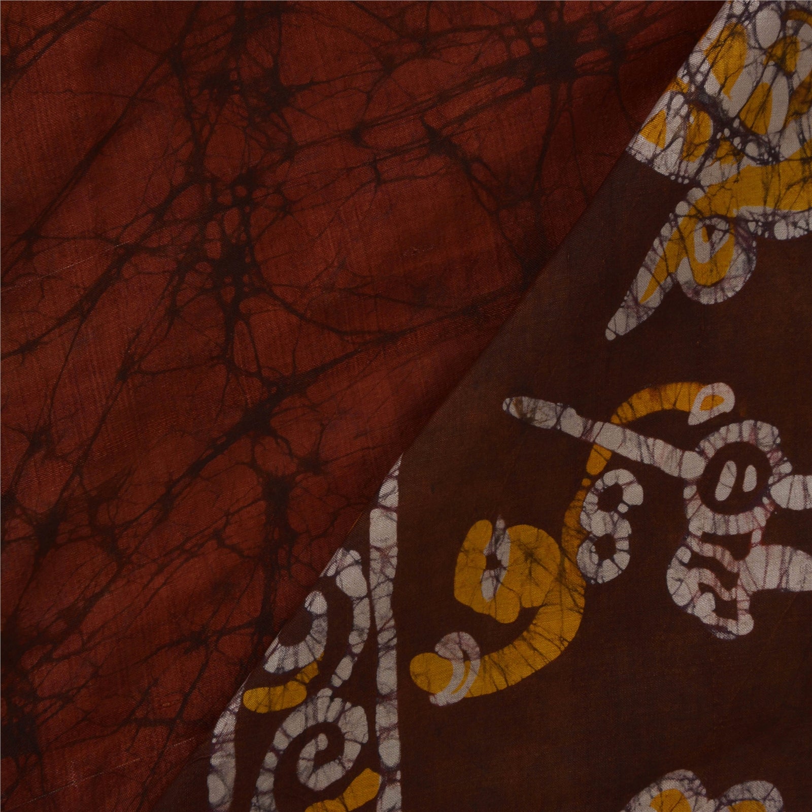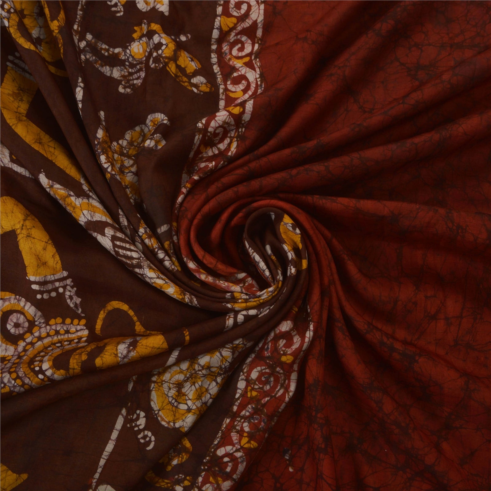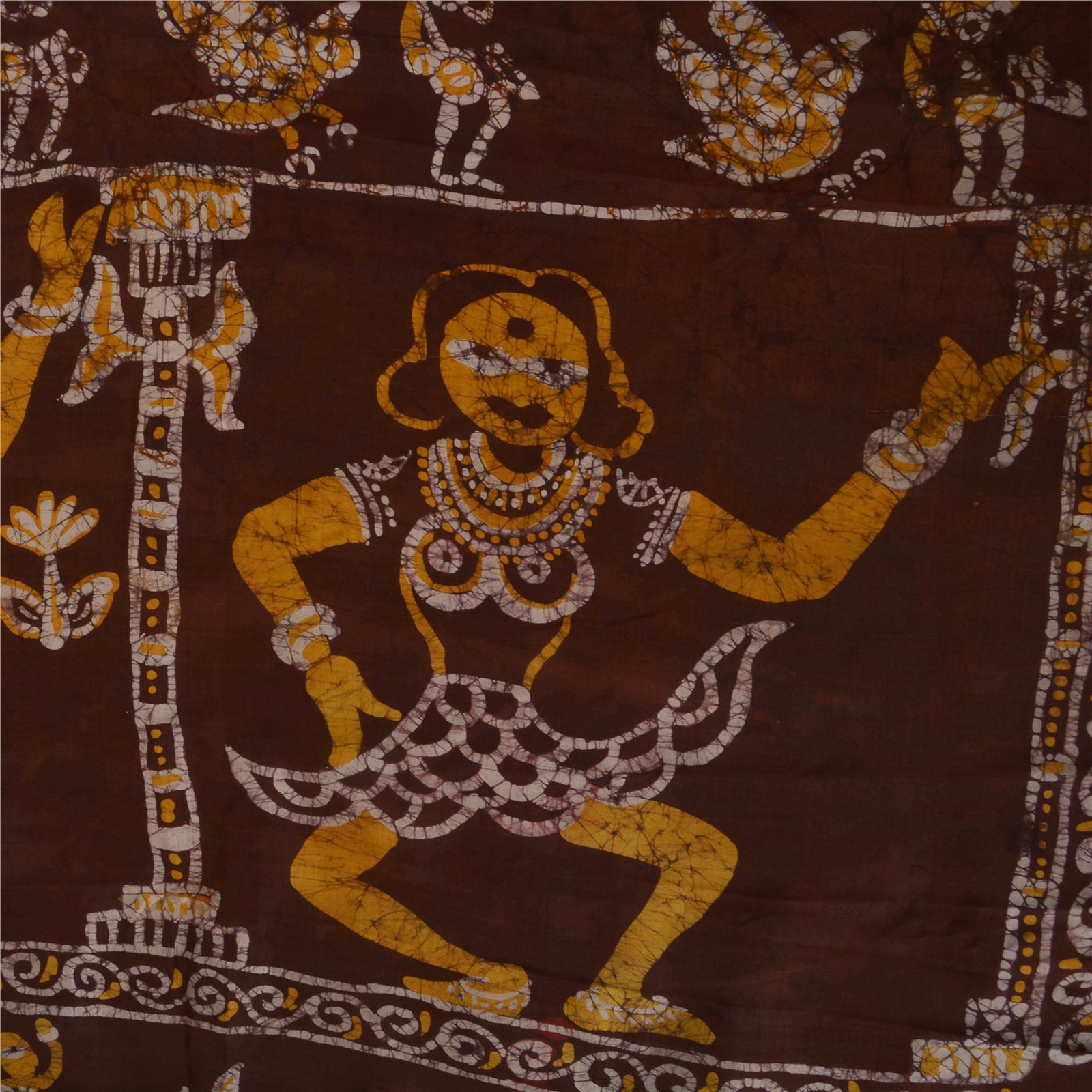 Sanskriti Vintage Heavy Saree 100% Pure Silk Batik Work Brown Craft Sari