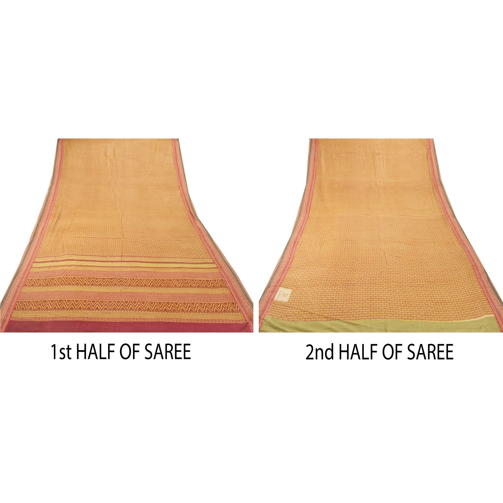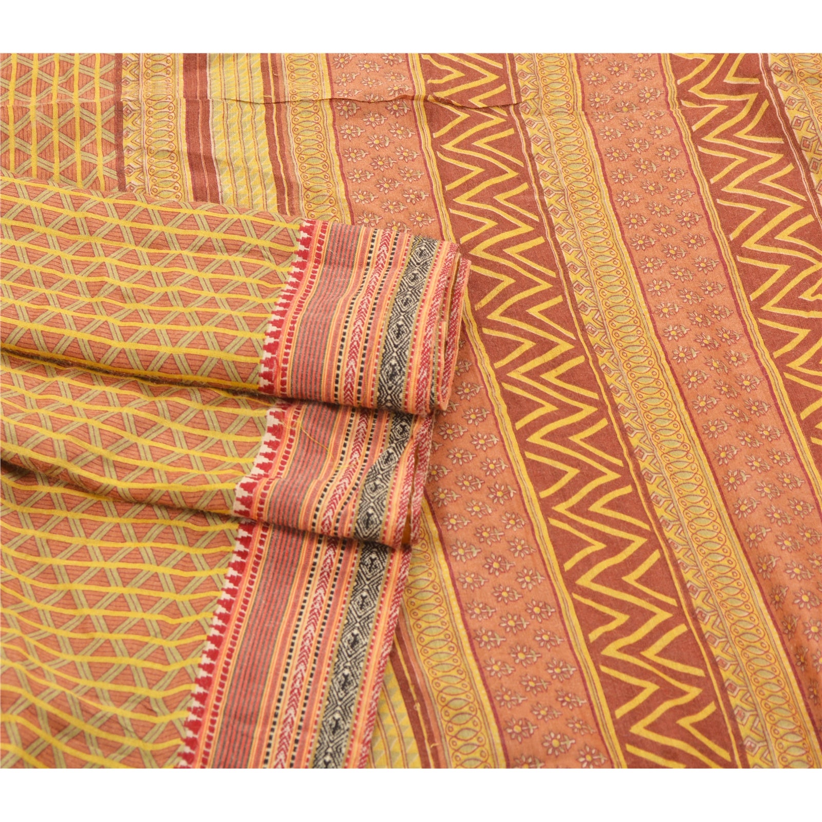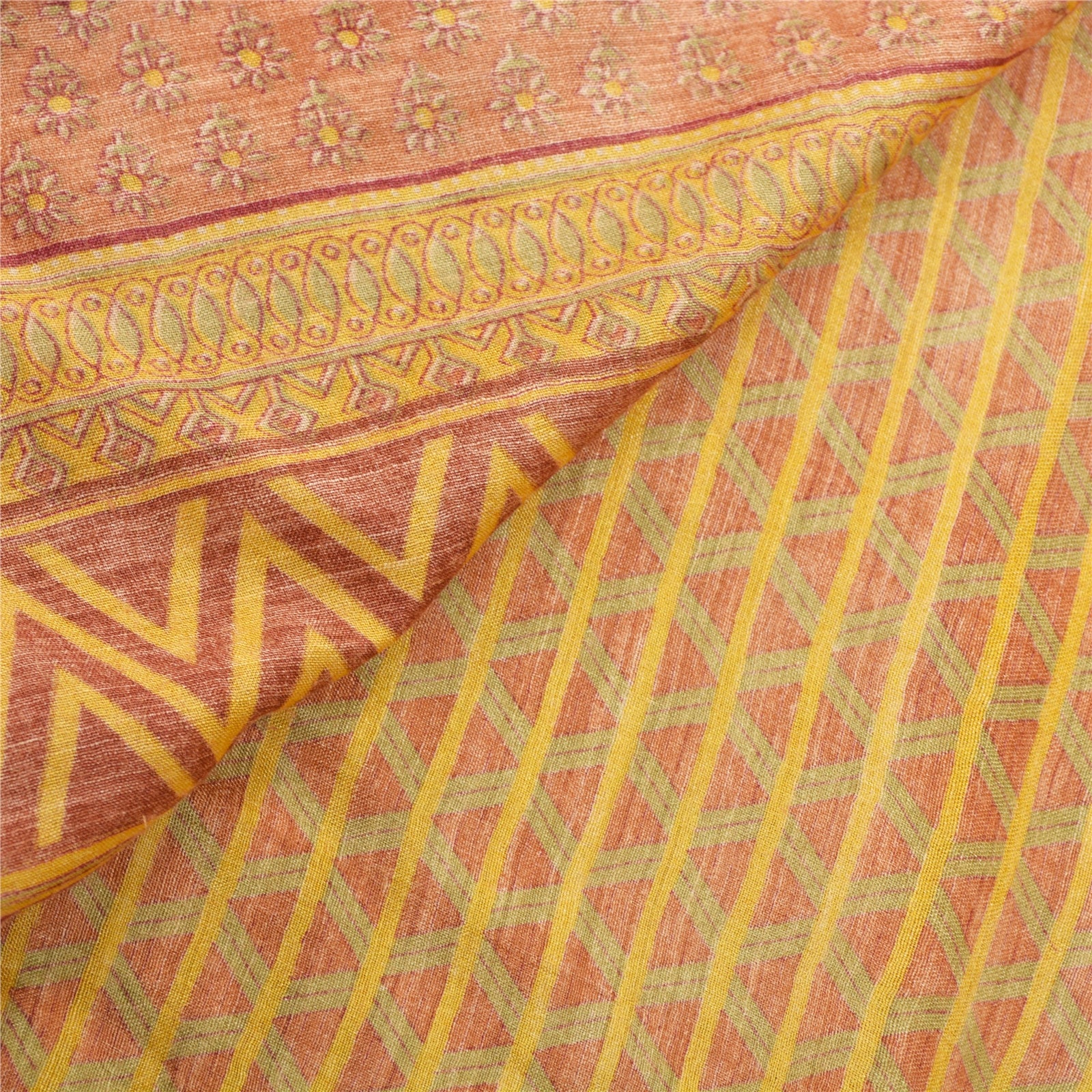Sanskriti Vintage Heavy Saree Printed 100% Pure Silk Woven Sustainable Fabric 5 Yard Sari