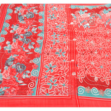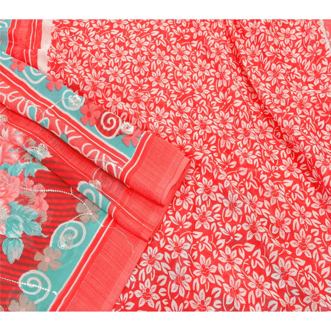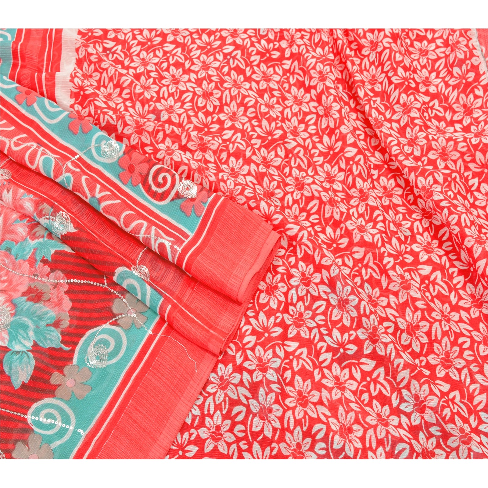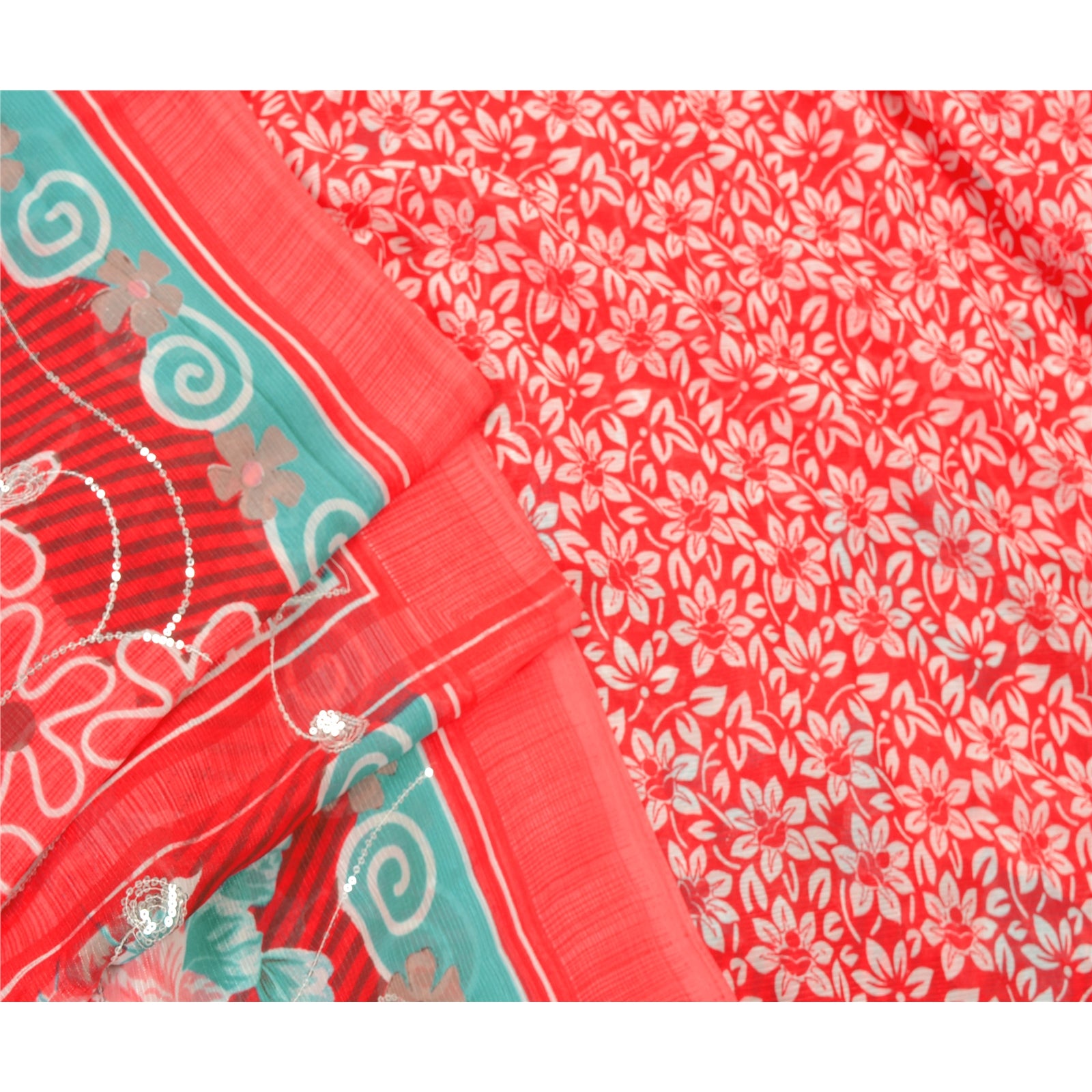 ? Beautiful red colored embroidered printed georgette sari ? Pallu & Border features floral design embellished with silver sequins work. ? There are floral motifs with similar work in center part of sari. What is special about this saree? Sparkling silver sequins work with printed floral design on red color base Sustainable Fabric is really enhancing the beauty of the saree. This unique vintage saree can be used for various crafting ideas even if you don't want to use it as a sari. Design a dress, use it as a throw, as window dressing, upholstery, sarongs, table linen and much more. Let your creative juices flow and use this decorated Sustainable Fabric in multiple fashion.