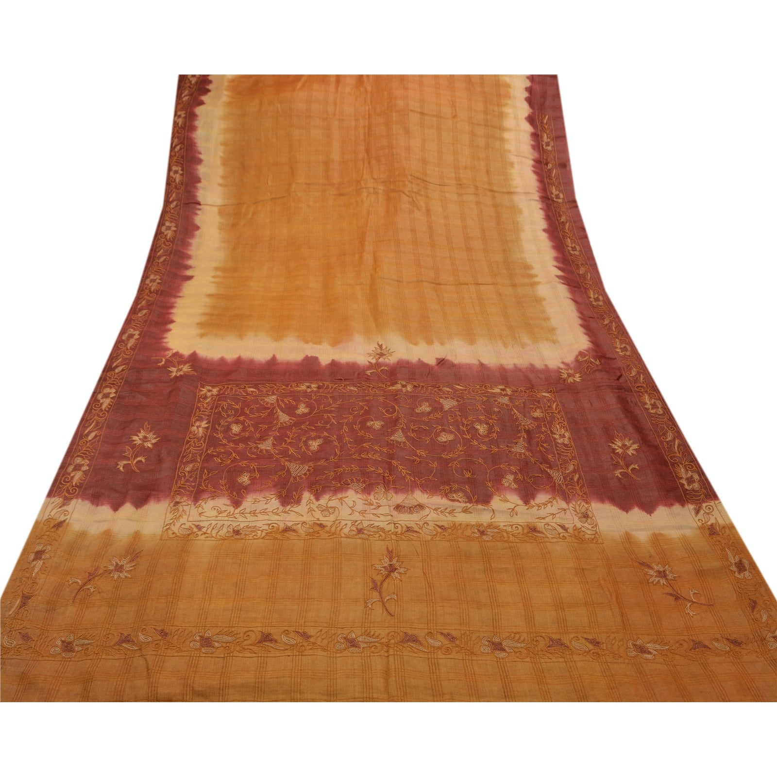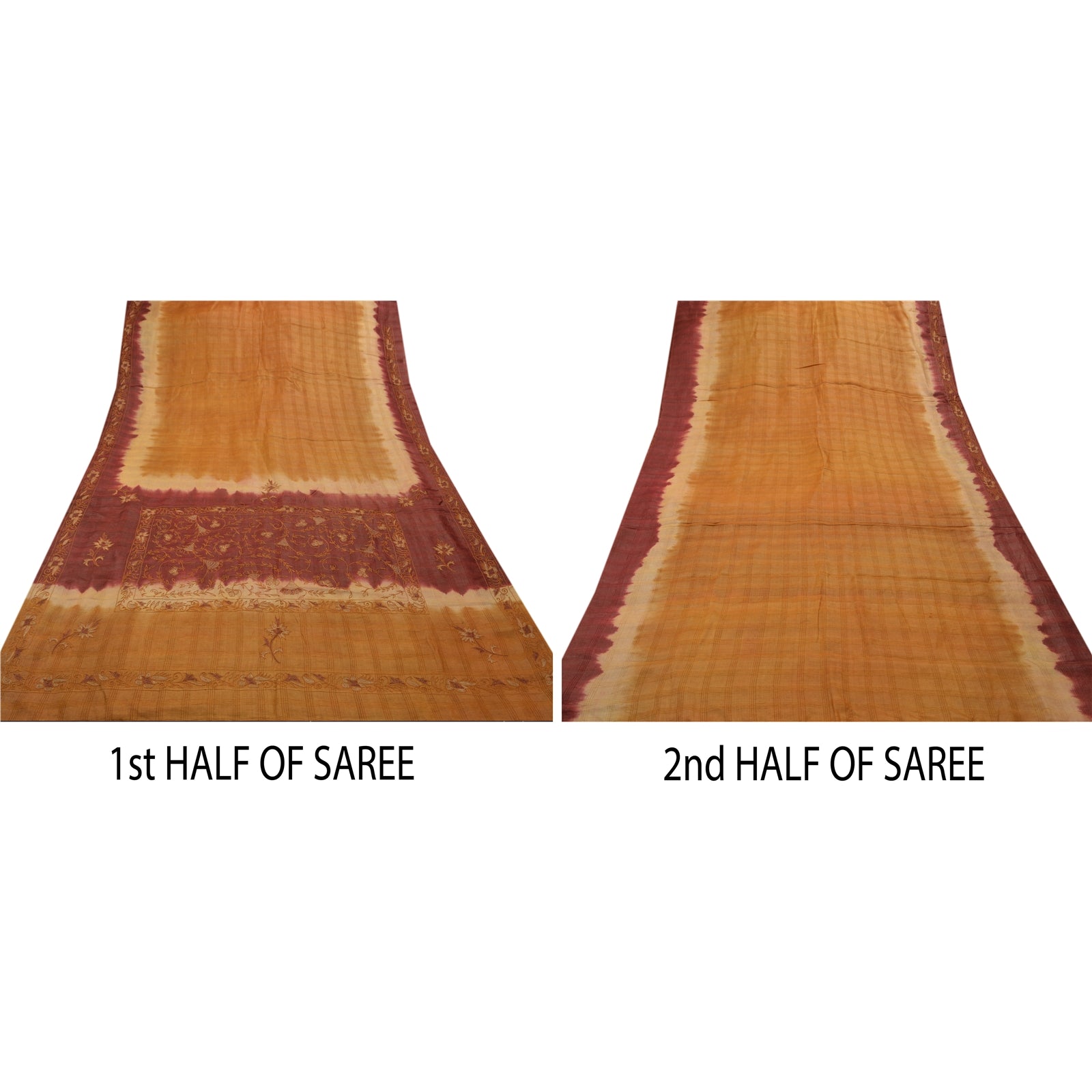 Sanskriti Vintage Indian Saree 100% Pure Silk Hand Embroidered Craft Sustainable Fabric Sari