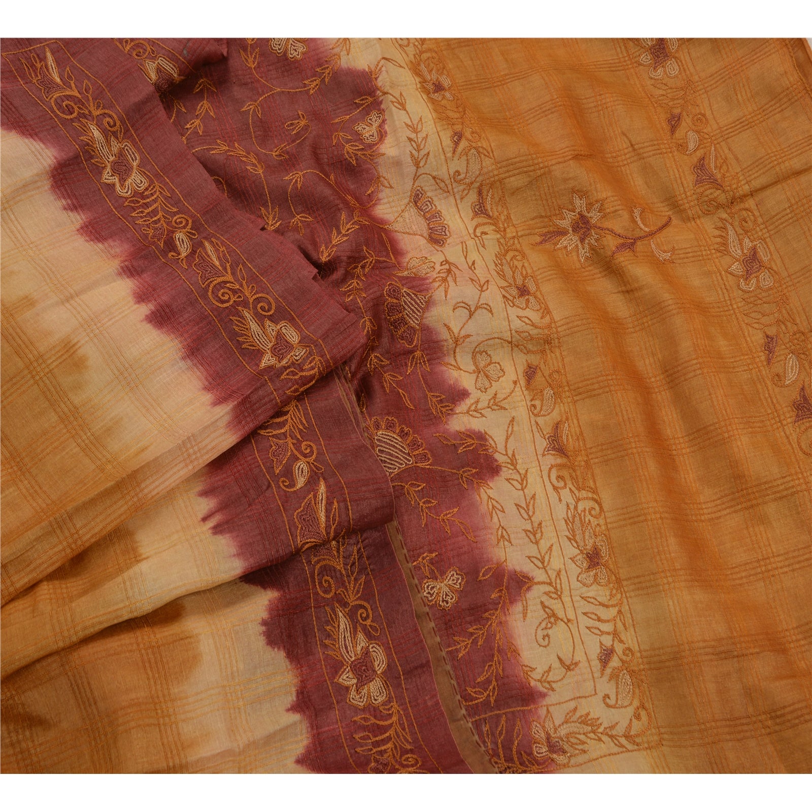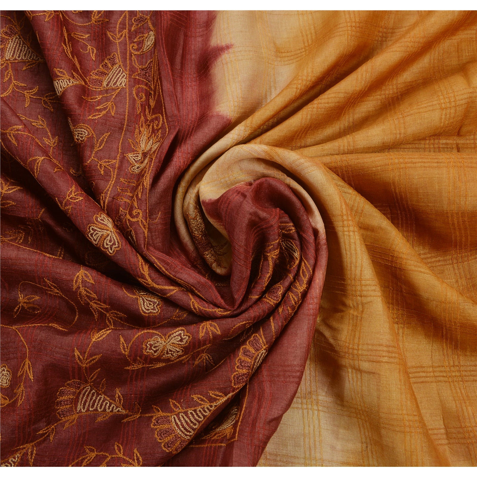 ? Beautiful dark red & brown colored hand embroidered pure silk sari ? Pallu & Border features floral & paisley design embellished with cream/brown/purple thread work. What is special about this saree? Nice color contrast color with elegant embroidery on pure silk base Sustainable Fabric is really enhancing the beauty of the saree. This unique vintage saree can be used for various crafting ideas even if you don't want to use it as a sari. Design a dress, use it as a throw, as window dressing, upholstery, sarongs, table linen and much more. Let your creative juices flow and use this decorated Sustainable Fabric in multiple fashion.