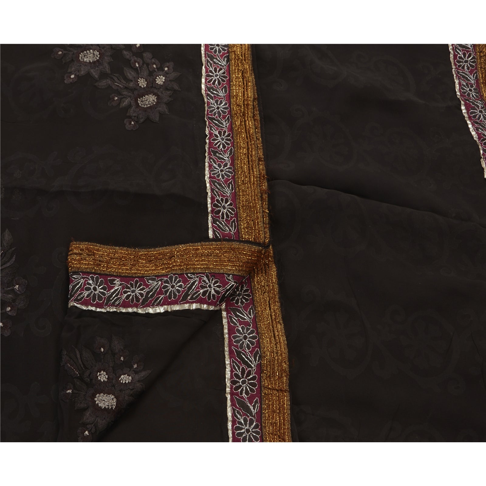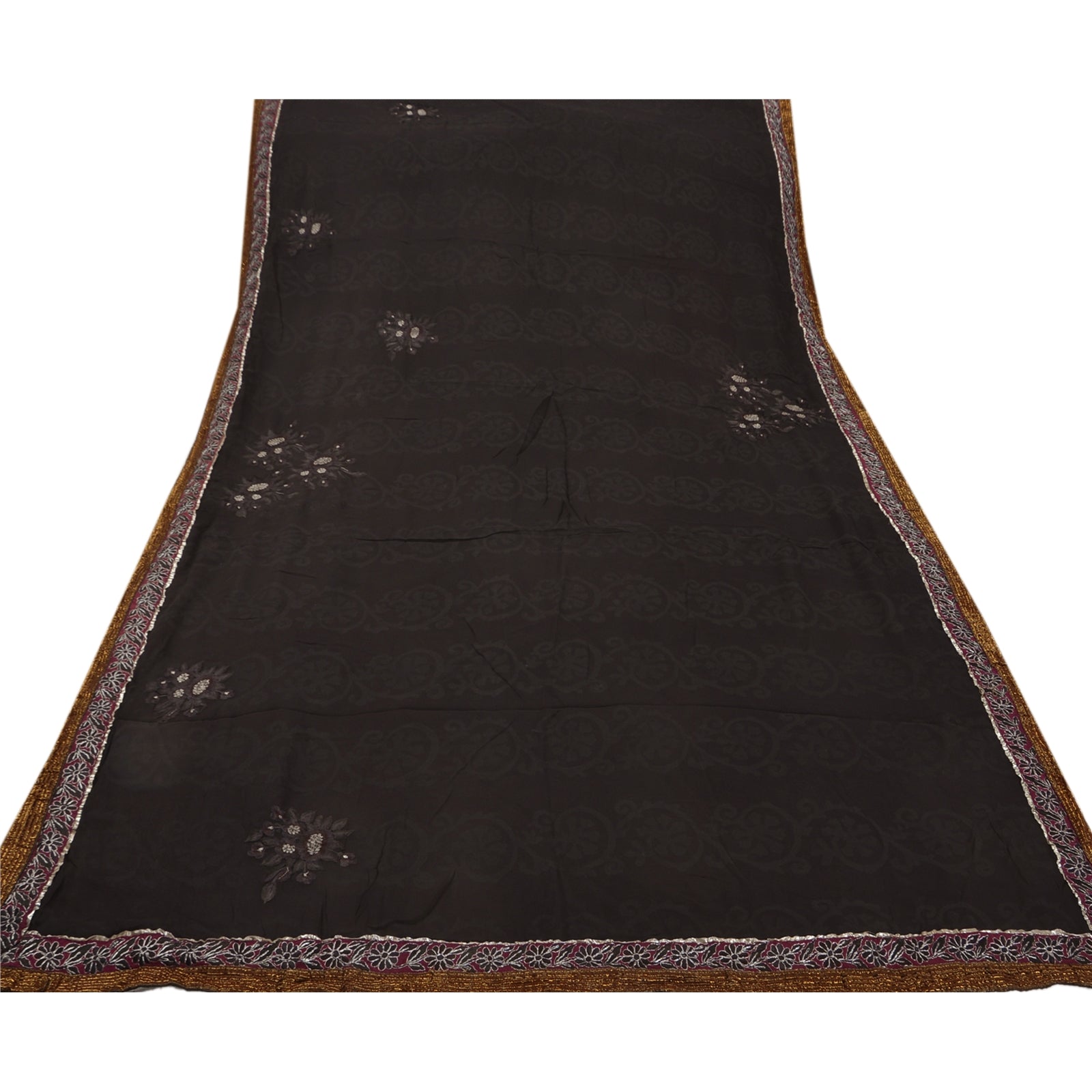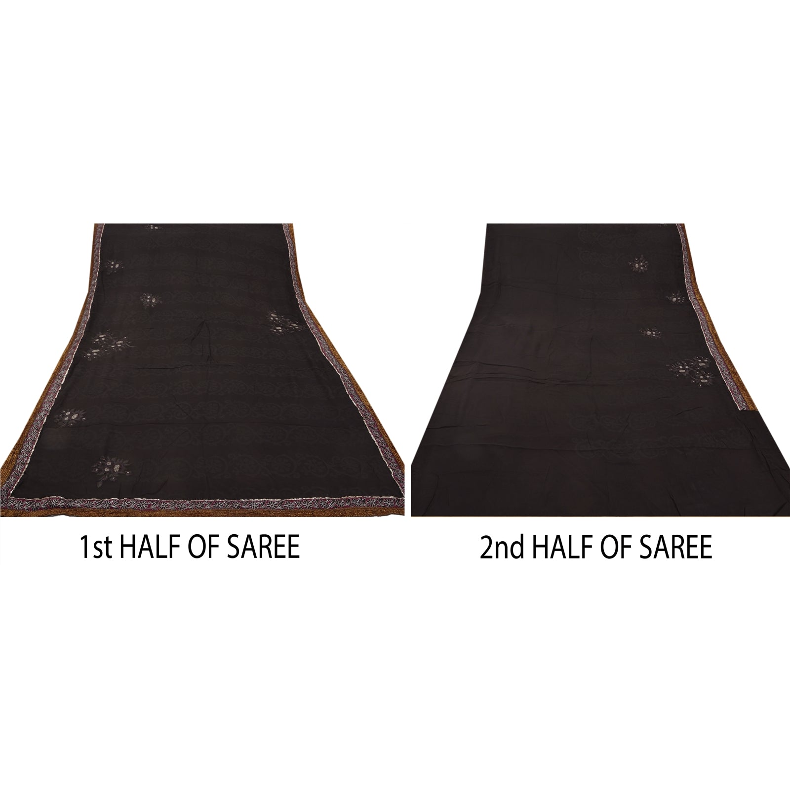 Sanskriti Vintage Black Indian Saree Blend Georgette Hand Beaded Sustainable Fabric Premium Sari