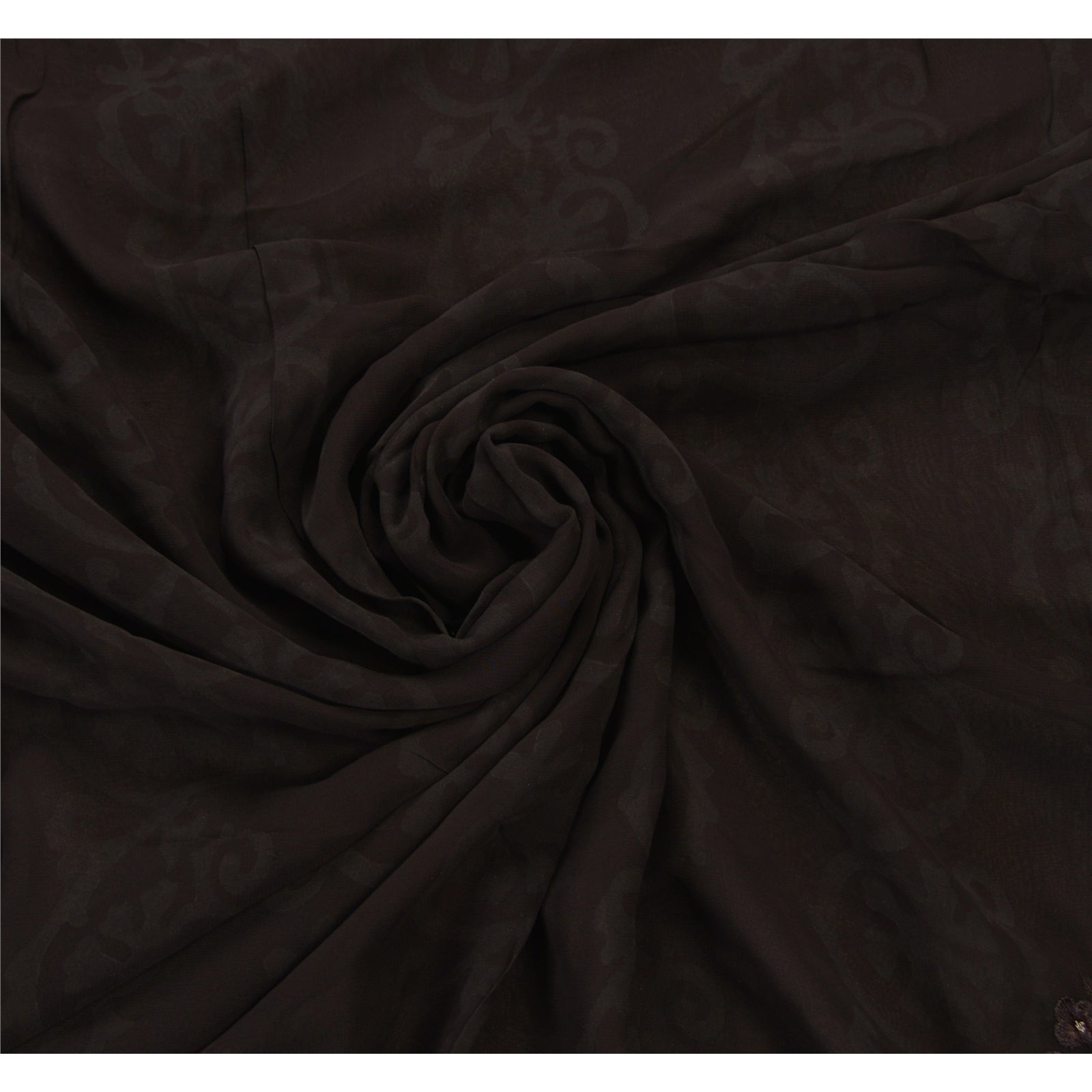 ? Beautiful black colored embroidered painted blend georgette sari ? All over sari features floral design embellished with black, silver thread work. ? There are woven brown & embroidery purple patch work on 3 sides of border. What is special about this saree? Alluring border with floral design on black color base Sustainable Fabric is really enhancing the beauty of the saree. This unique vintage saree can be used for various crafting ideas even if you don't want to use it as a sari. Design a dress, use it as a throw, as window dressing, upholstery, sarongs, table linen and much more. Let your creative juices flow and use this decorated Sustainable Fabric in multiple fashion.