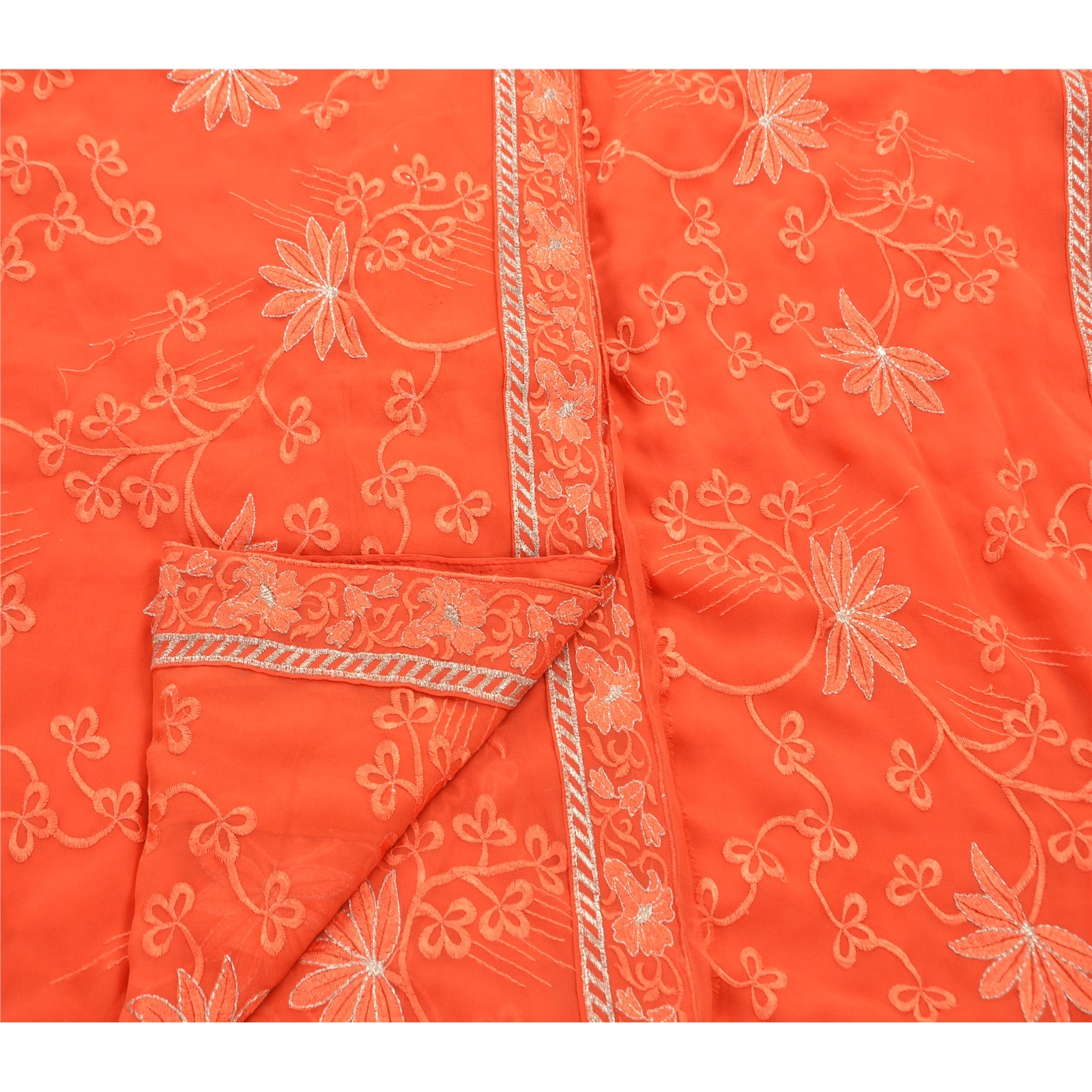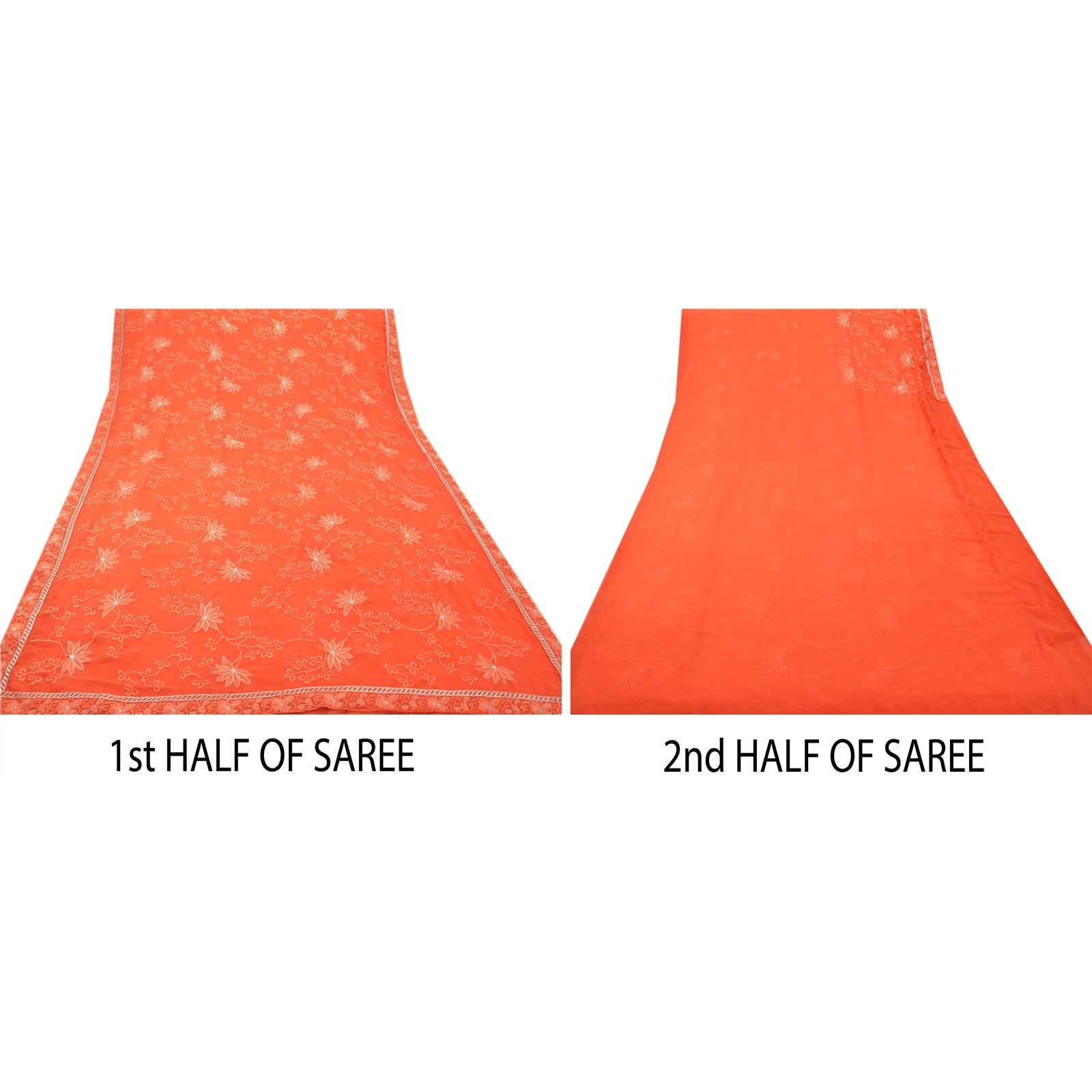 ? Beautiful peach colored embroidered georgette sari ? Border features floral design embellished with silver & peach thread work. Also you can see peach Sustainable Fabric patch work gives a unique look to this saree. ? There are floral motifs with similar work in center part of sari. What is special about this saree? Nice peach & silver embroidered thread work with floral design on peach color base Sustainable Fabric is really enhancing the beauty of the saree. This unique vintage saree can be used for various crafting ideas even if you don't want to use it as a sari. Design a dress, use it as a throw, as window dressing, upholstery, sarongs, table linen and much more. Let your creative juices flow and use this decorated Sustainable Fabric in multiple fashion.