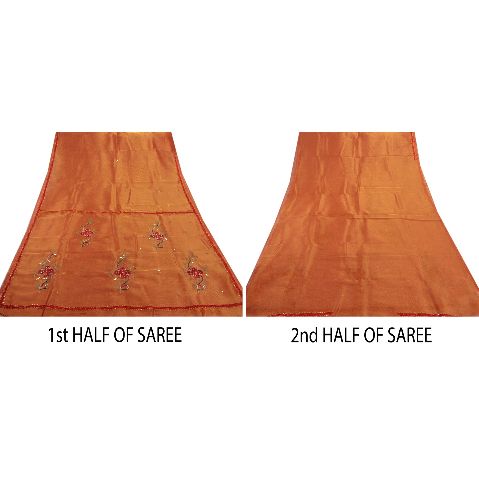 Sanskriti Vintage Indian Saree Tissue Hand Beaded Craft Sustainable Fabric Pearl Beads Sari