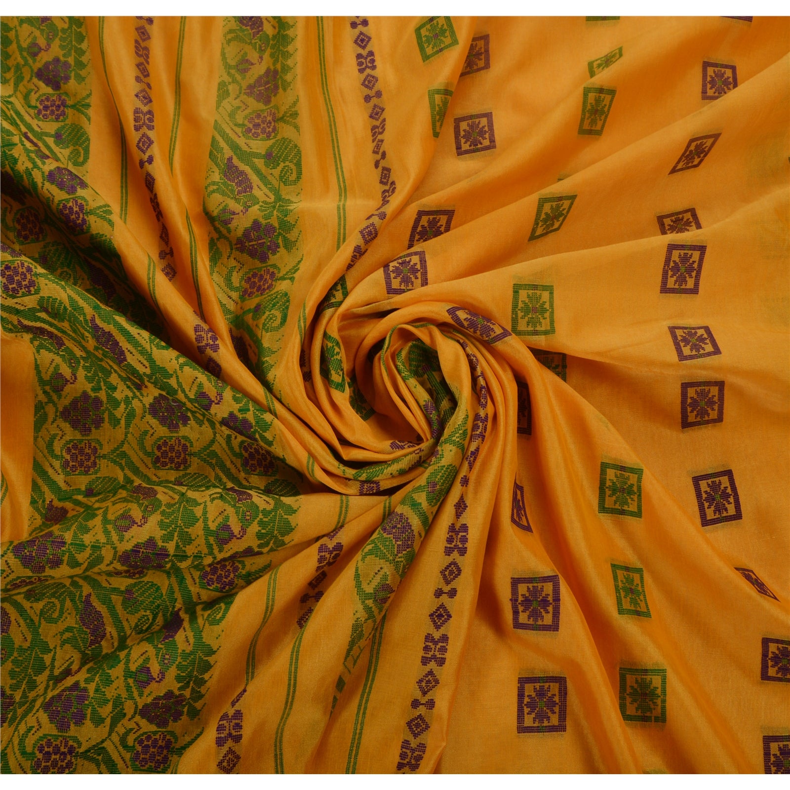 Sanskriti Vintage Indian Yellow Saree Art Silk Woven Craft Sustainable Fabric Sari