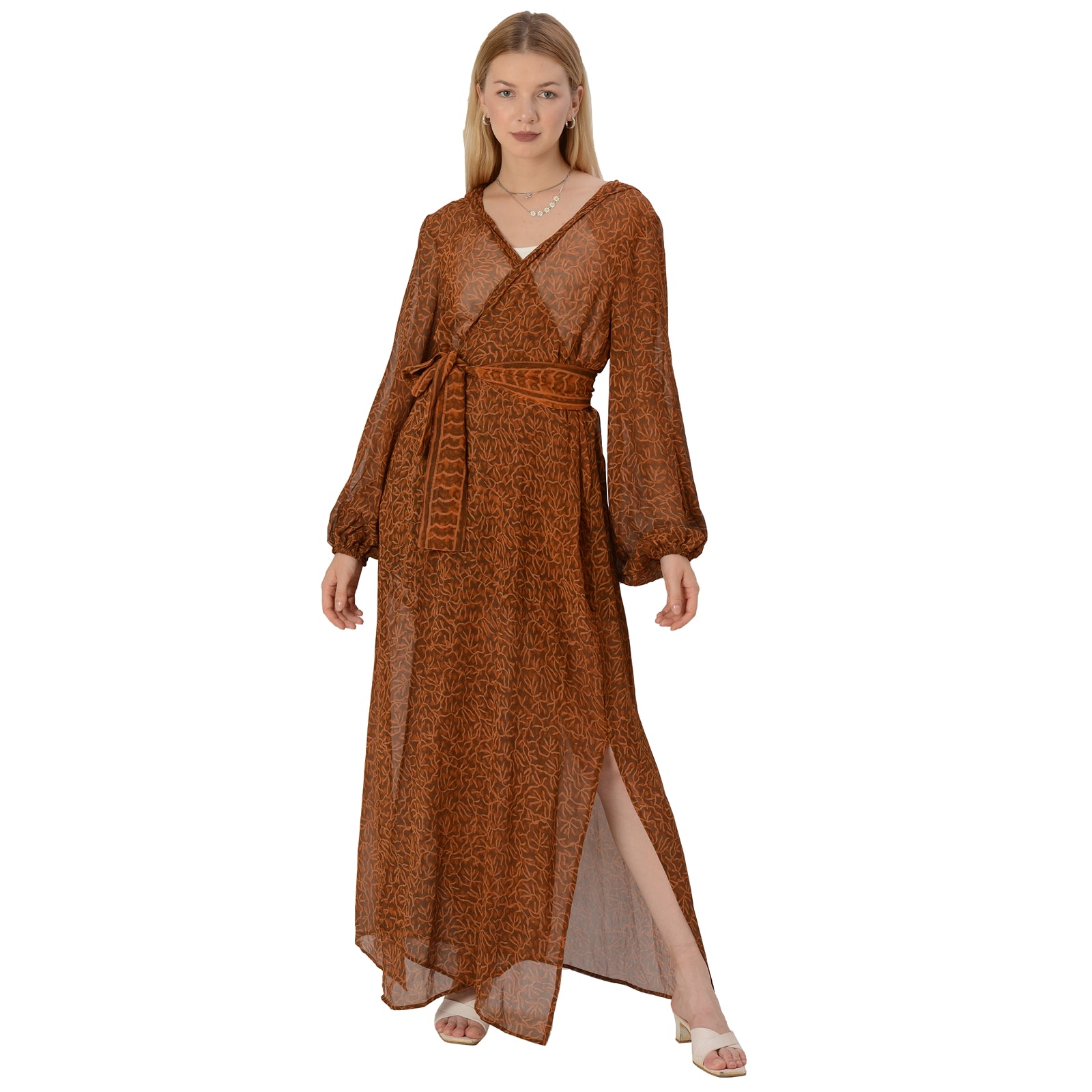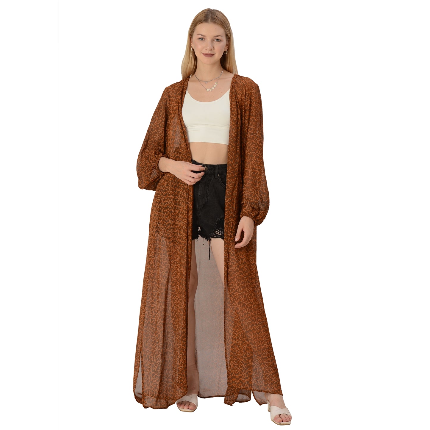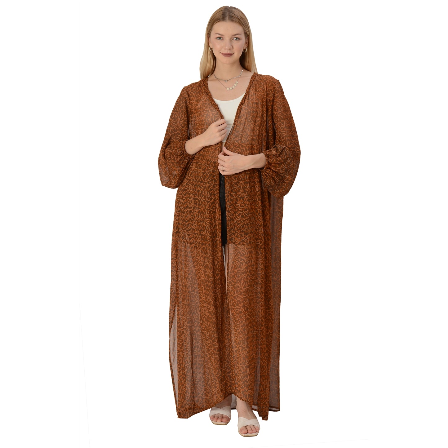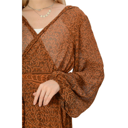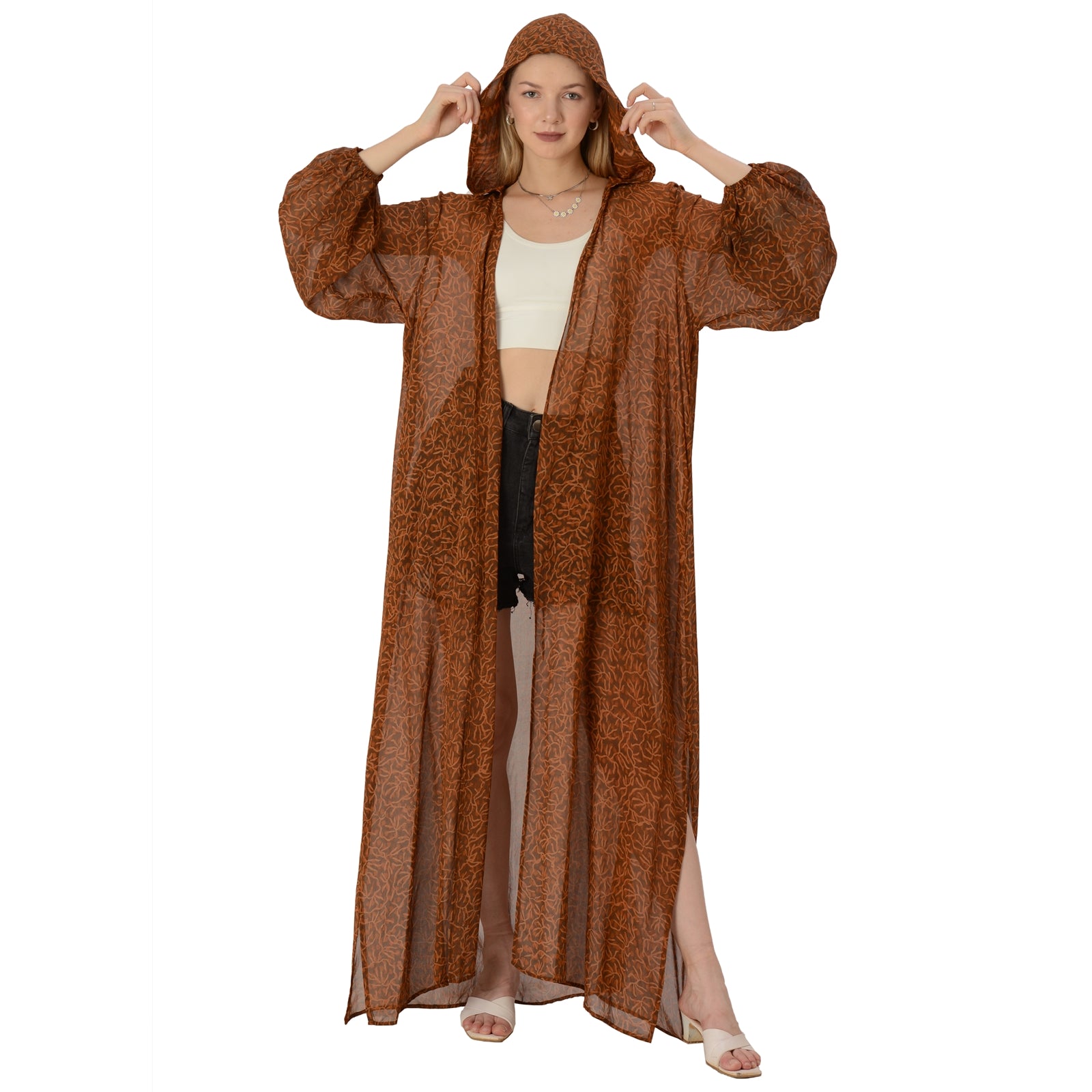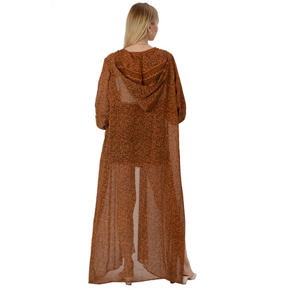 Introducing our Upcycled Hooded Slit Shrug, a versatile marvel that seamlessly shifts between a captivating shrug and an elegant wrap dress. Adorned with a warm orange and brown floral print, its maxi length and side slits ensure graceful movement, while the hood adds a casual touch. This freesize garment comes with a belt for waist definition, allowing it to effortlessly transform into a stylish wrap dress, making sustainable fashion effortlessly chic and adaptable to any occasion.