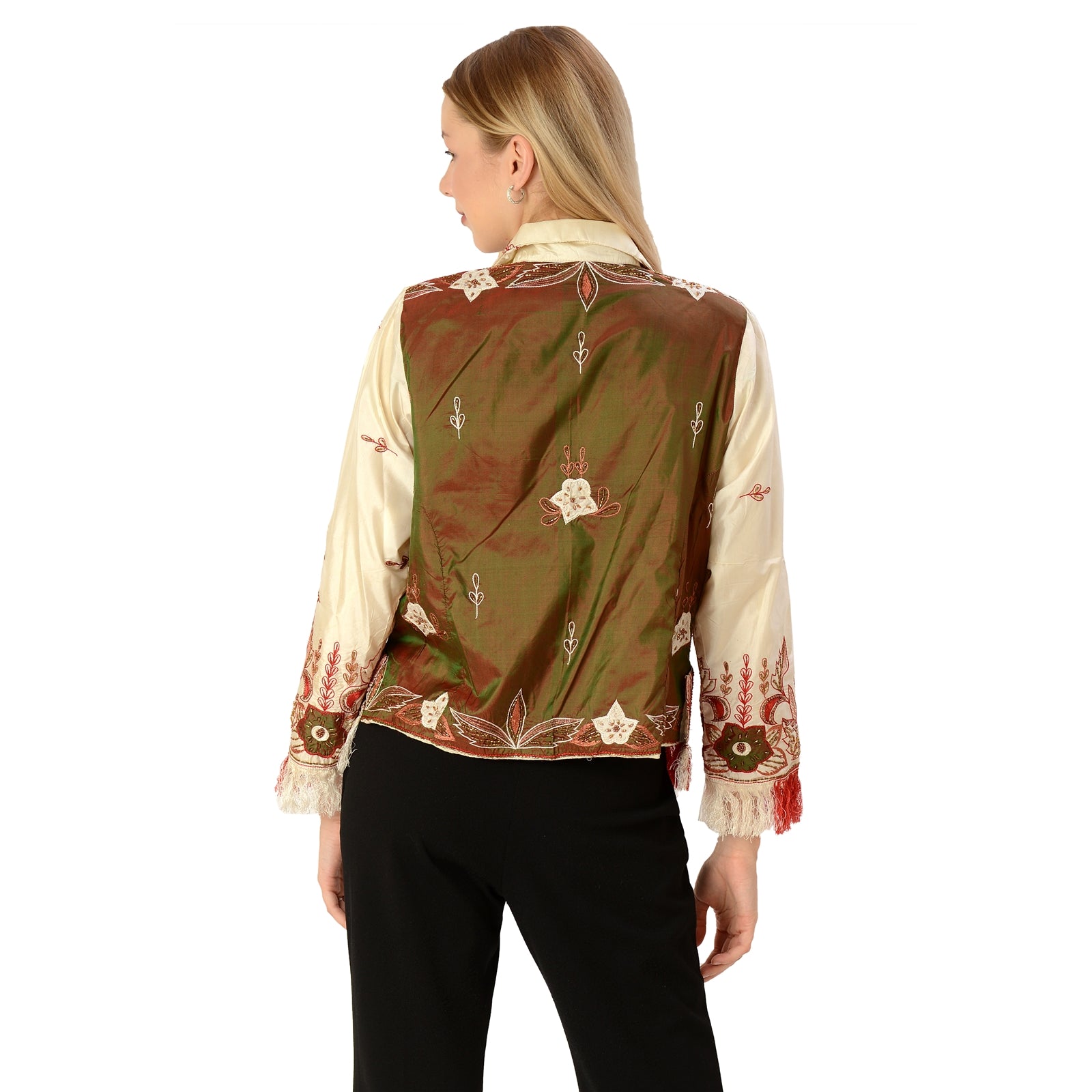 Sanskriti Vintage Edition Sanskriti India Short Blazer Pure Silk Upcycled Jacket Free Size